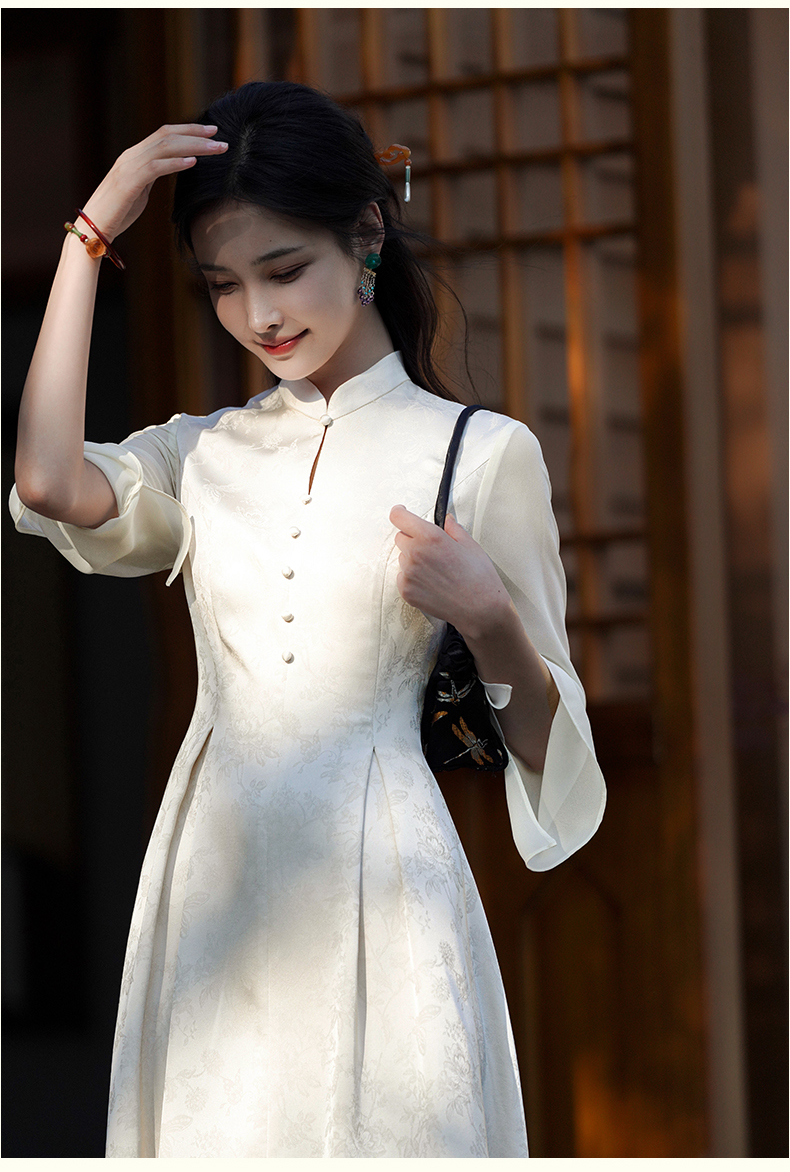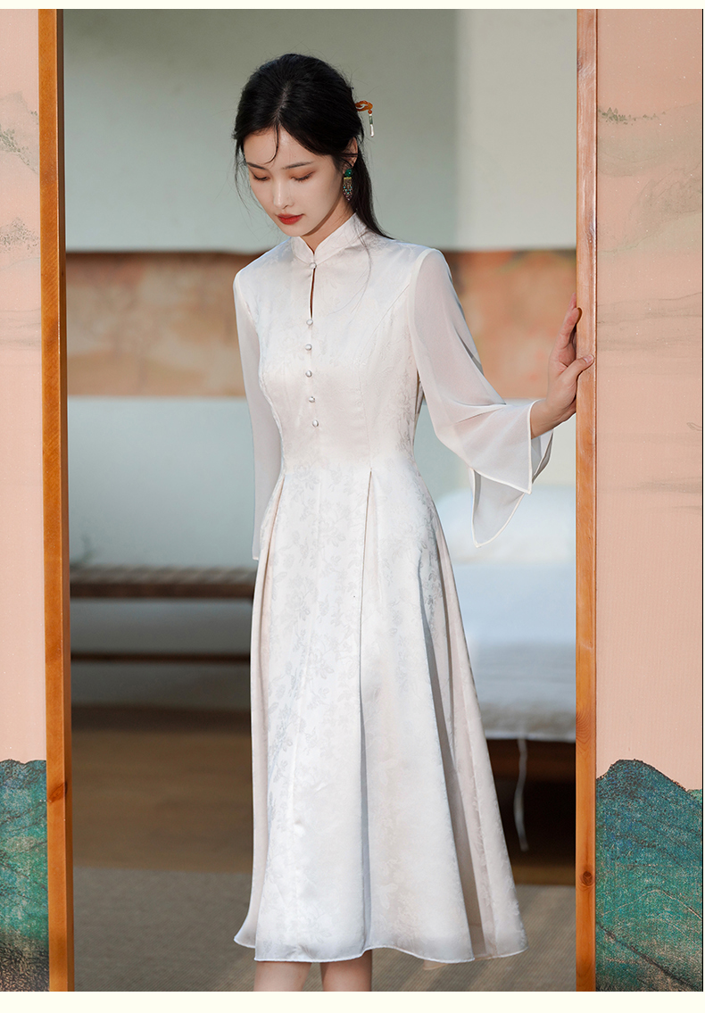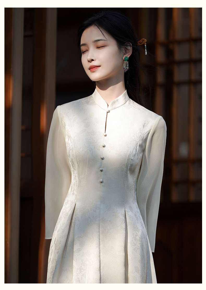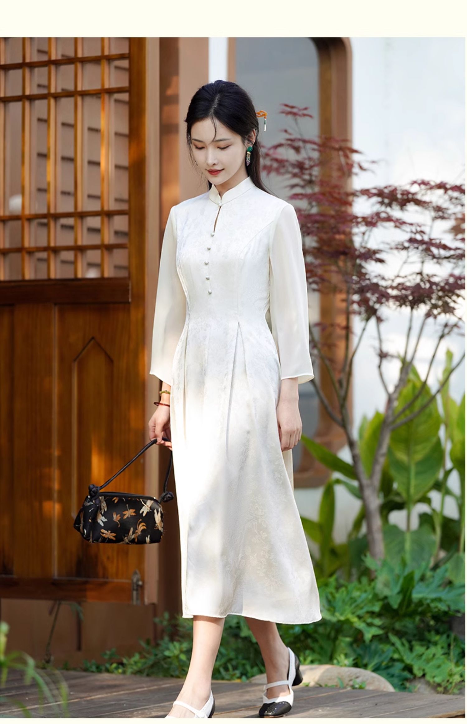 上海逸红颜岚音2025年秋季新款高级感新中式轻国风长袖旗袍连衣裙