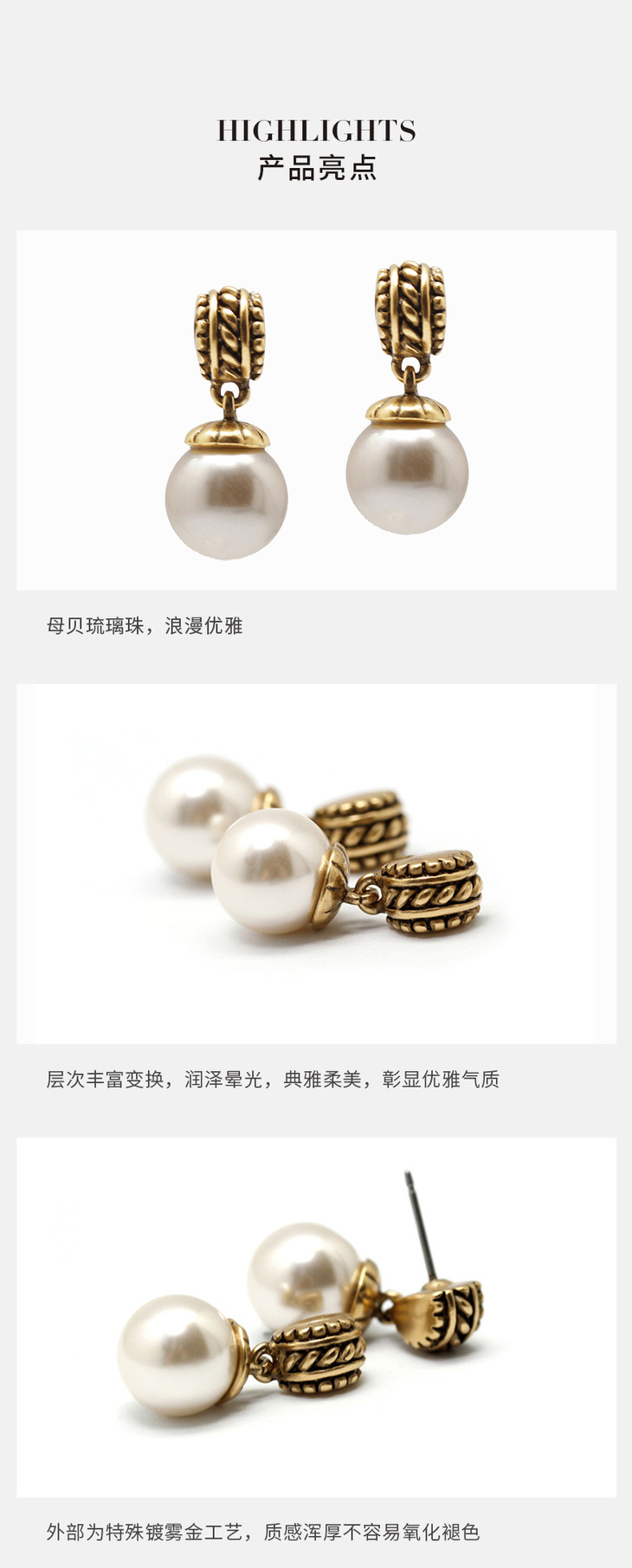 2楼翡拉拉复古珍珠耳钉 款号12AU117107 吊牌价429 现价386