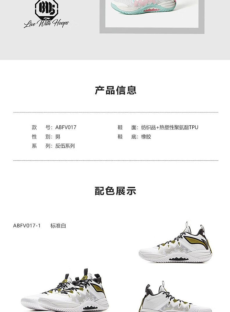 李宁反伍BADFIVE暴风2025男子轻量高回弹篮球外场鞋ABFV017