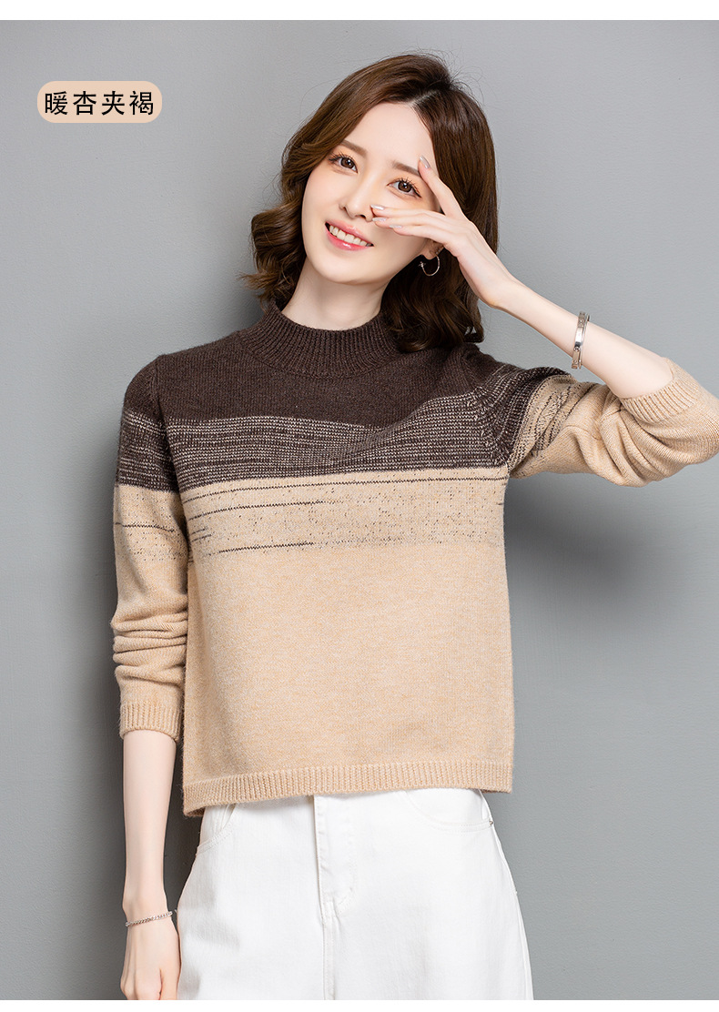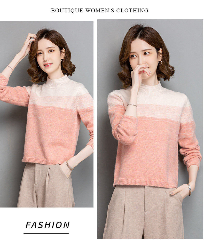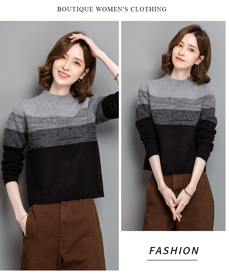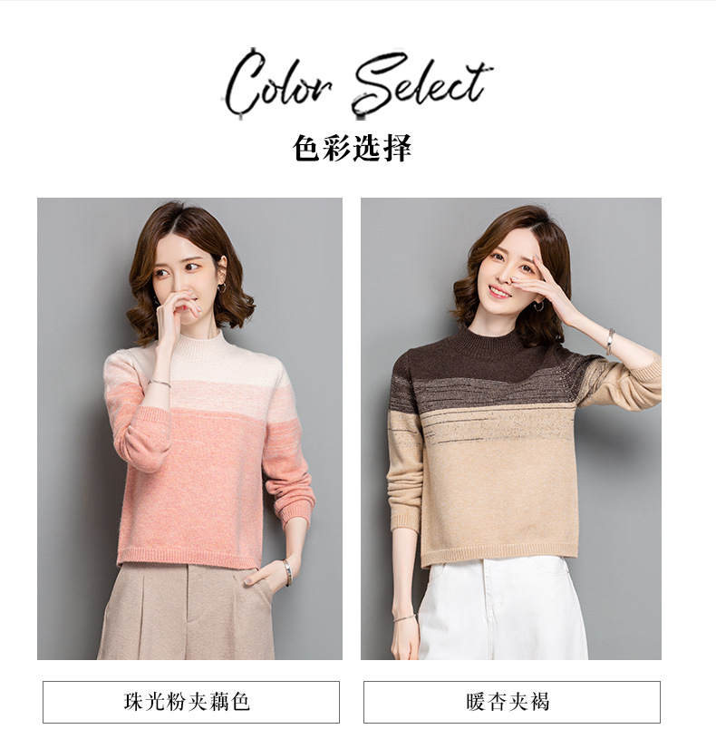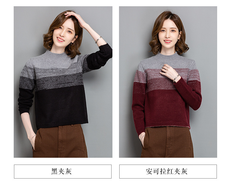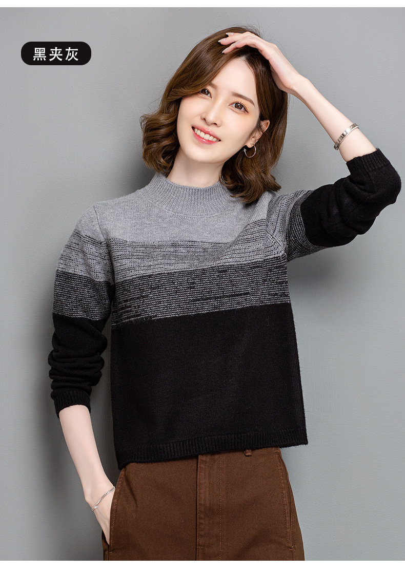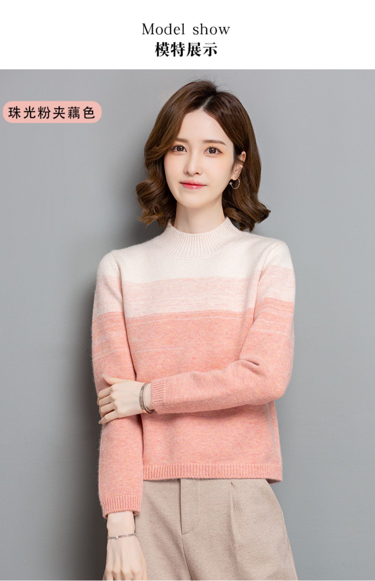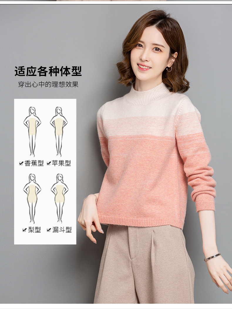 CC-tbrk-c155短款半高领渐变毛衣女秋冬2024新款内搭宽松时尚拼色针织打底上衣