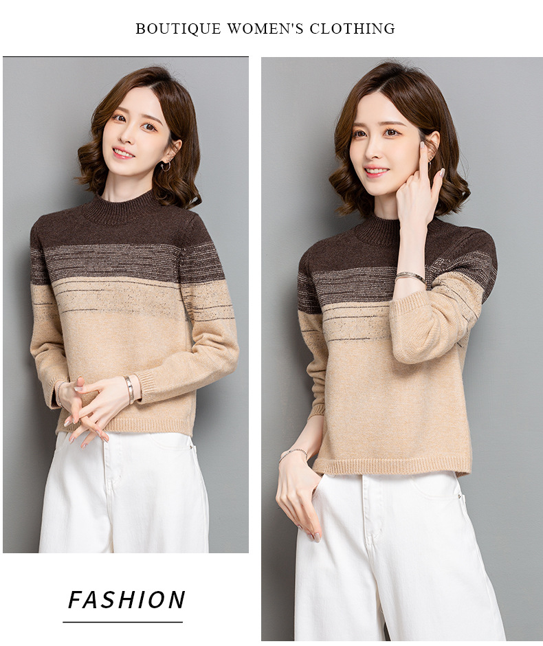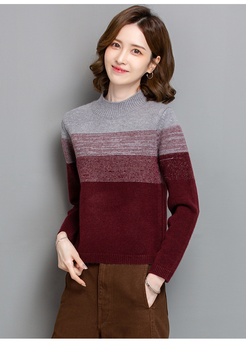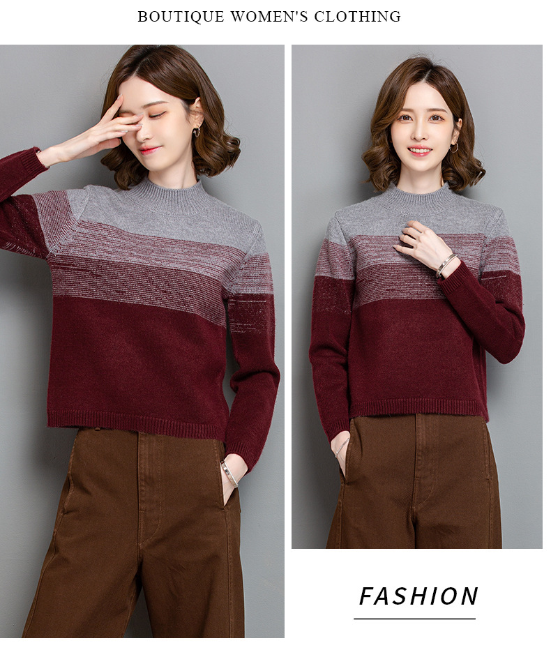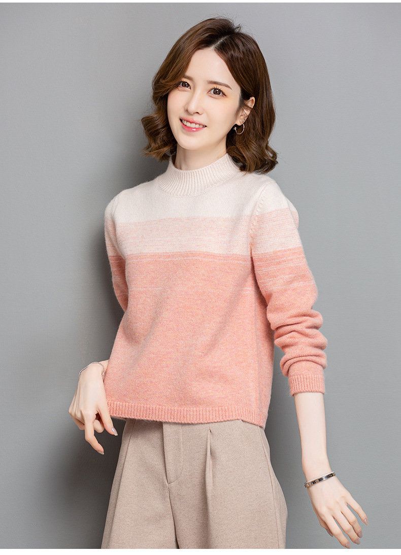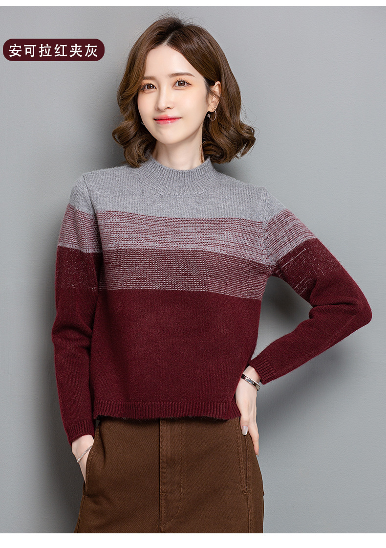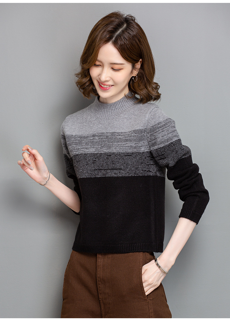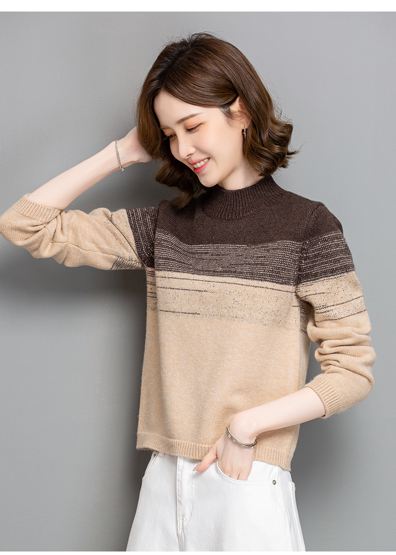 CC-tbrk-c155短款半高领渐变毛衣女秋冬2024新款内搭宽松时尚拼色针织打底上衣