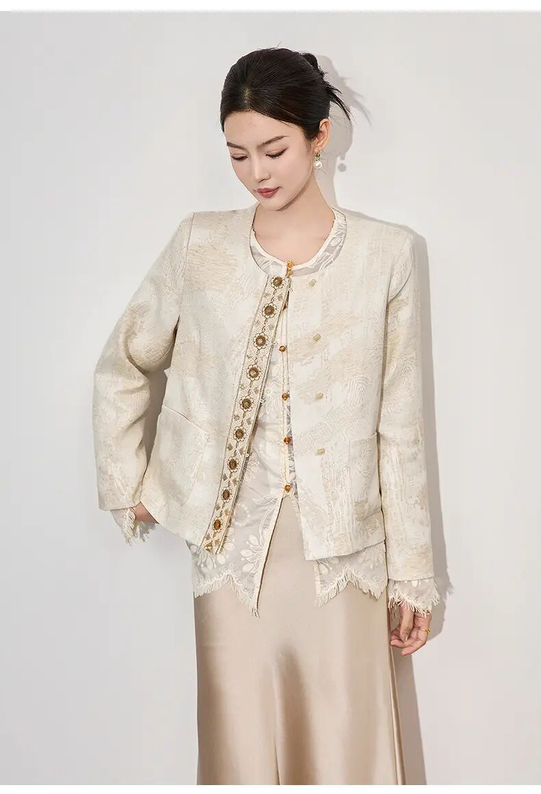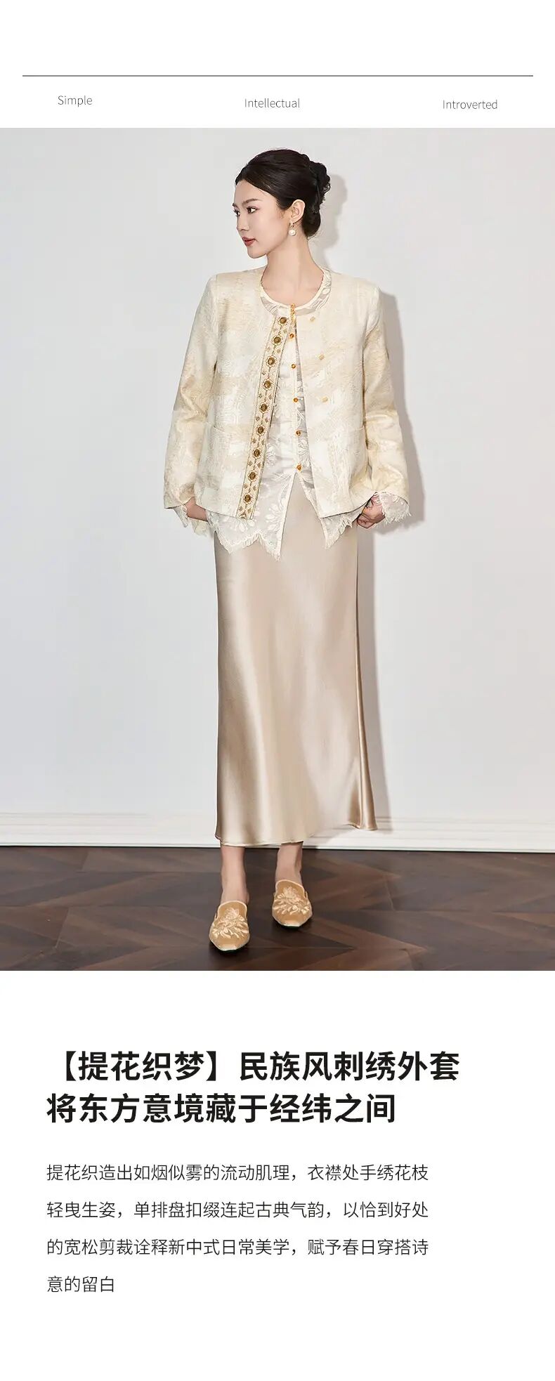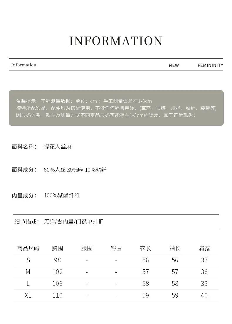 【高货wl】全新升级【铂金会员349/天猫469/差价120】(11814) 洛诗琳25新款民族风图案提花人丝麻高级感外套女精致上衣
