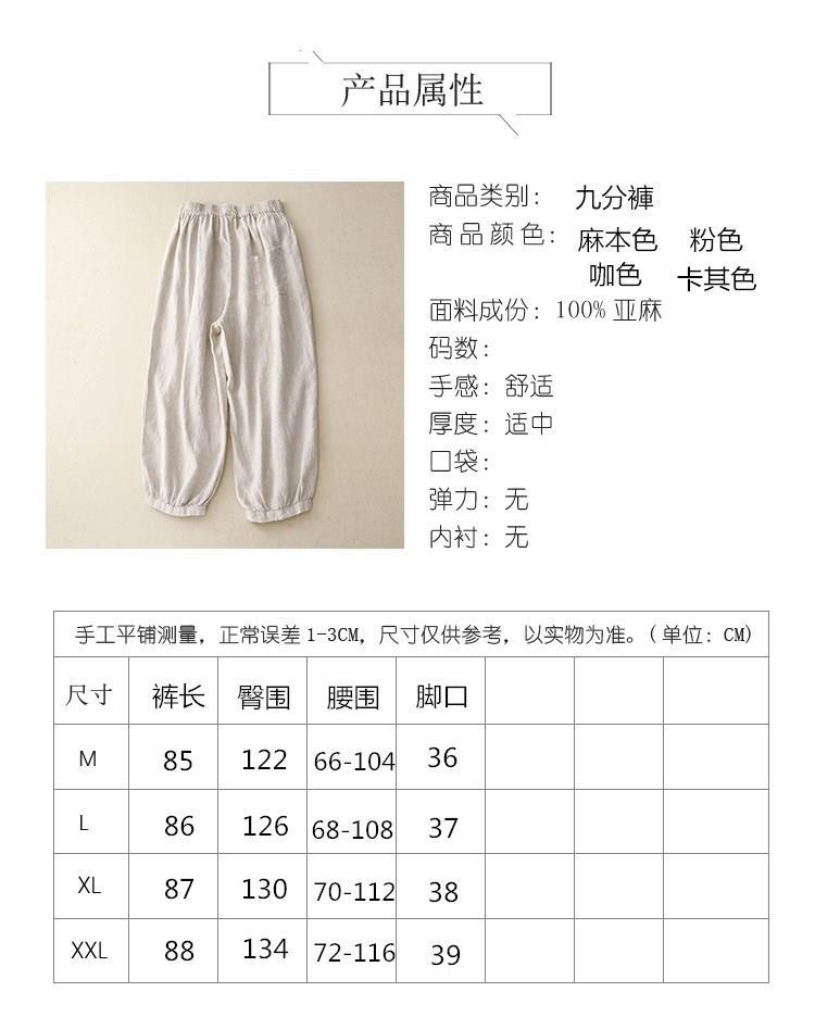 SMZ8488 大码妈妈夏天裤子薄款休闲裤女夏季2023新款棉麻九分灯笼哈伦裤女