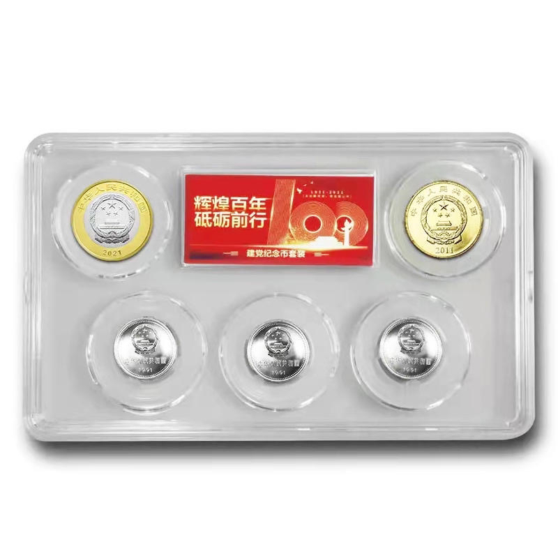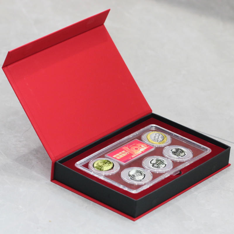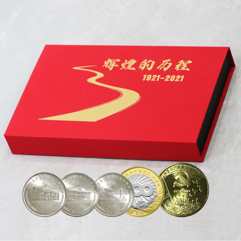 系列普通纪念币套装,包含了三组系列普通纪念币,分别为70纪念币一套三枚、90纪念币一枚、百年纪念币一枚,合计一套共5枚。