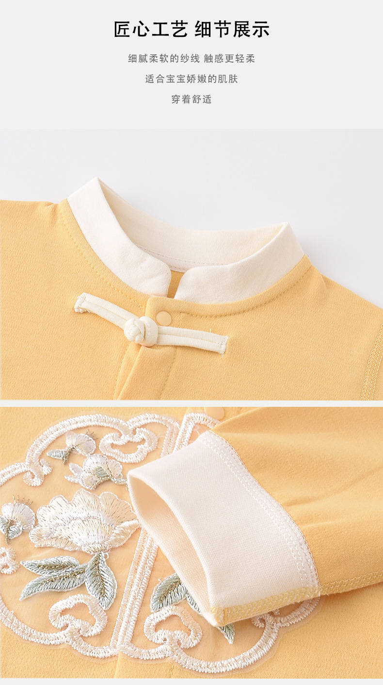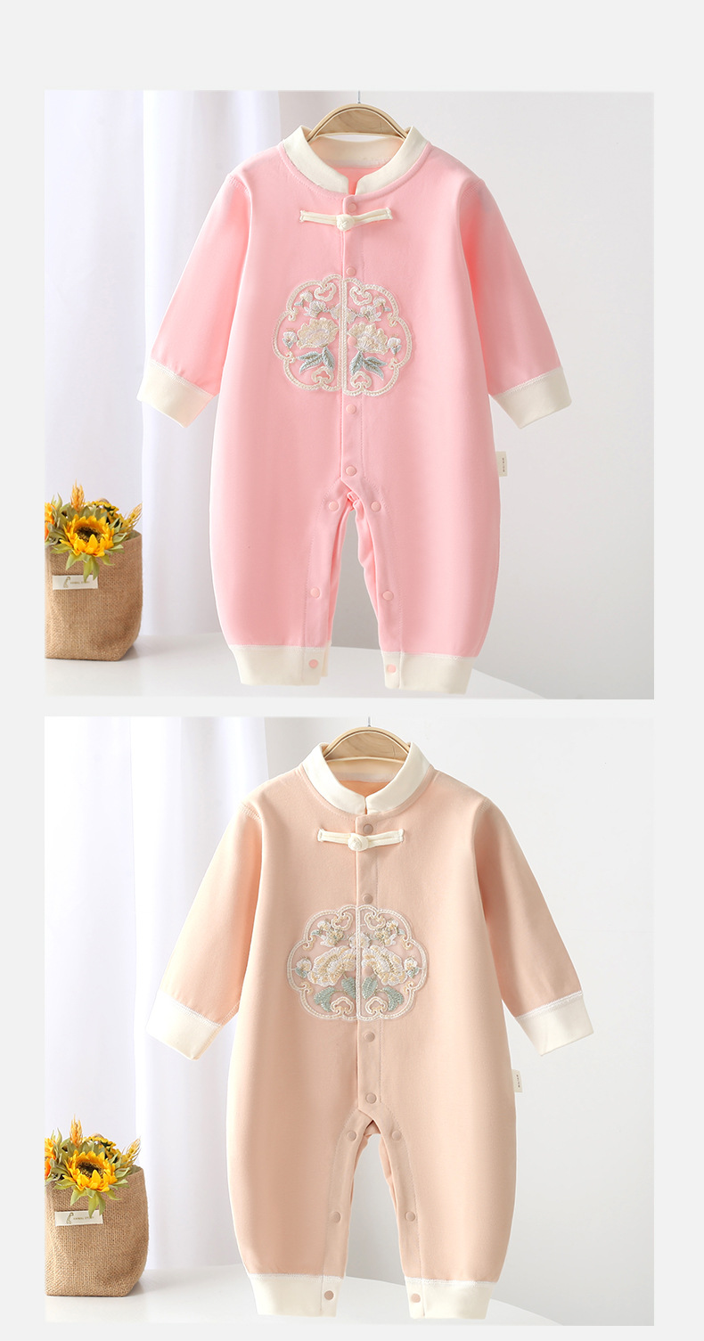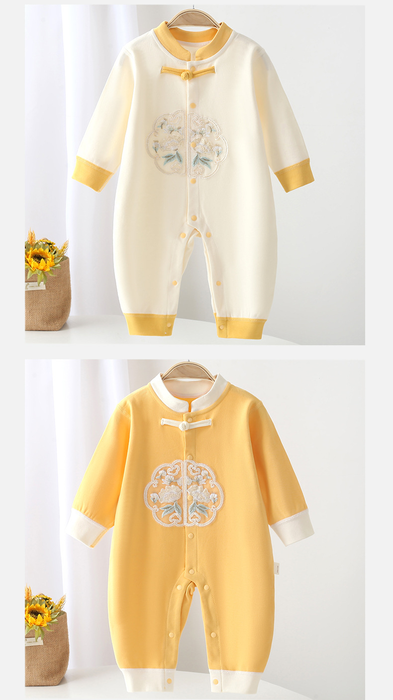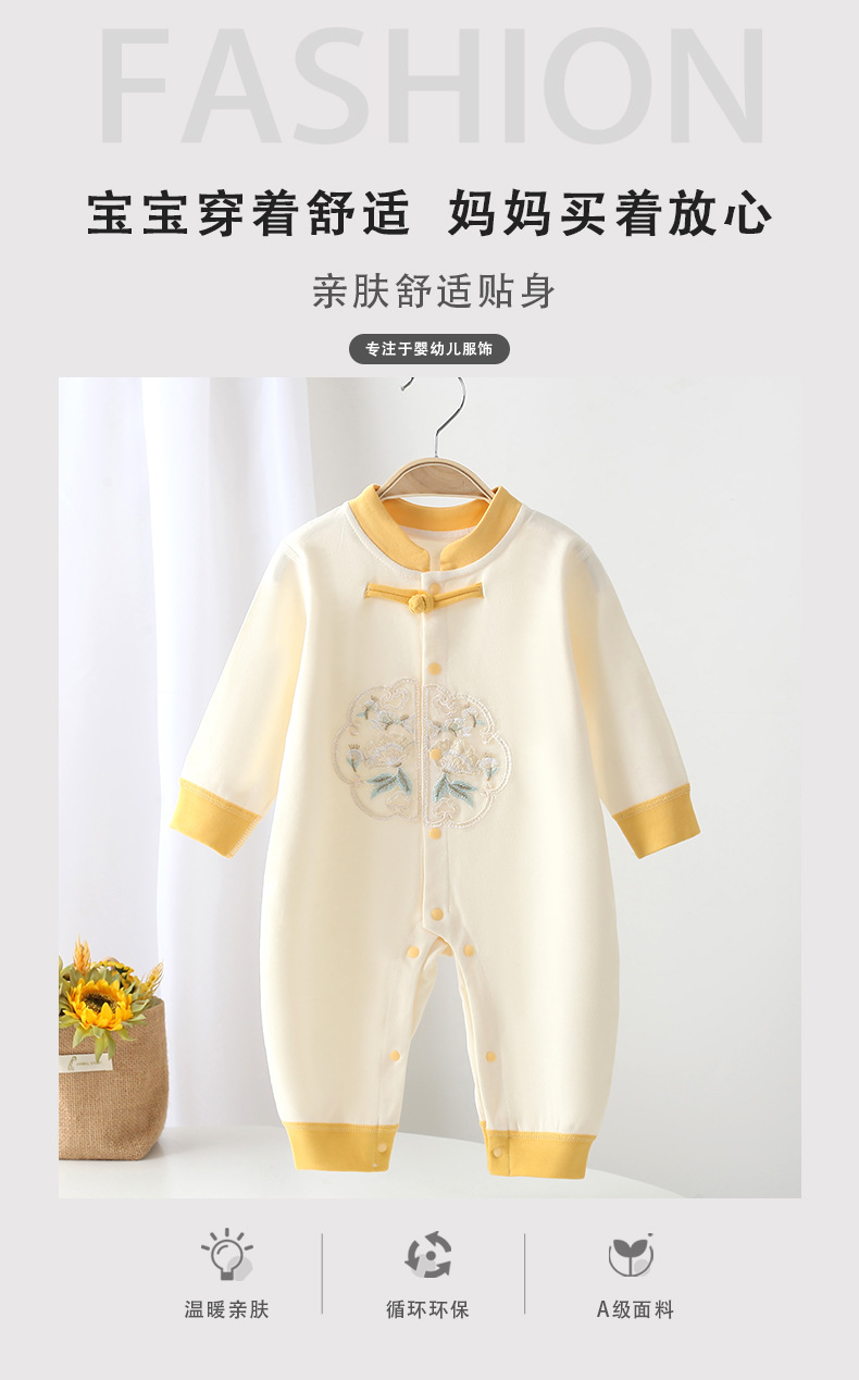 【宝宝穿着舒适,妈妈买着放心,亲肤舒适贴身】春秋季新款新中式婴幼儿连体衣 新生儿无骨哈衣 宝宝中国风长袖爬服四季款-QQ