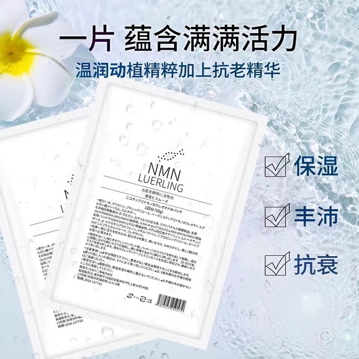 👑LUERLING NMN 水光针美白面膜5片 👍具有:抗皱、紧致功效 ✅有效:抵御初老、调节肌理、滋润补水、紧致嫩肤、修护敏感 👐不仅保湿,还添加“抗老”精华,让你敷出年轻肌肤 💯仿生纤维膜布,完美贴合脸部轮廓,更亲肤 💦连续5天坚持使用,得到意想不到的效果!