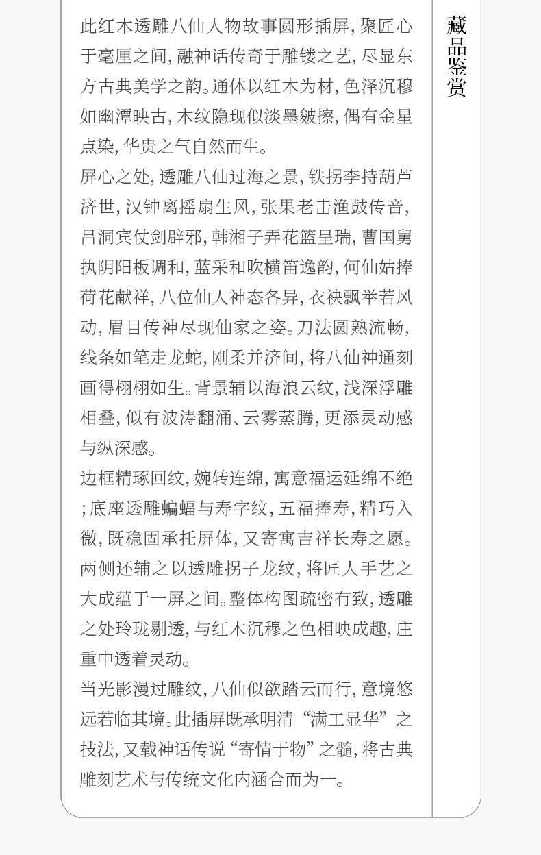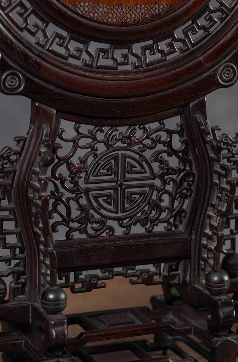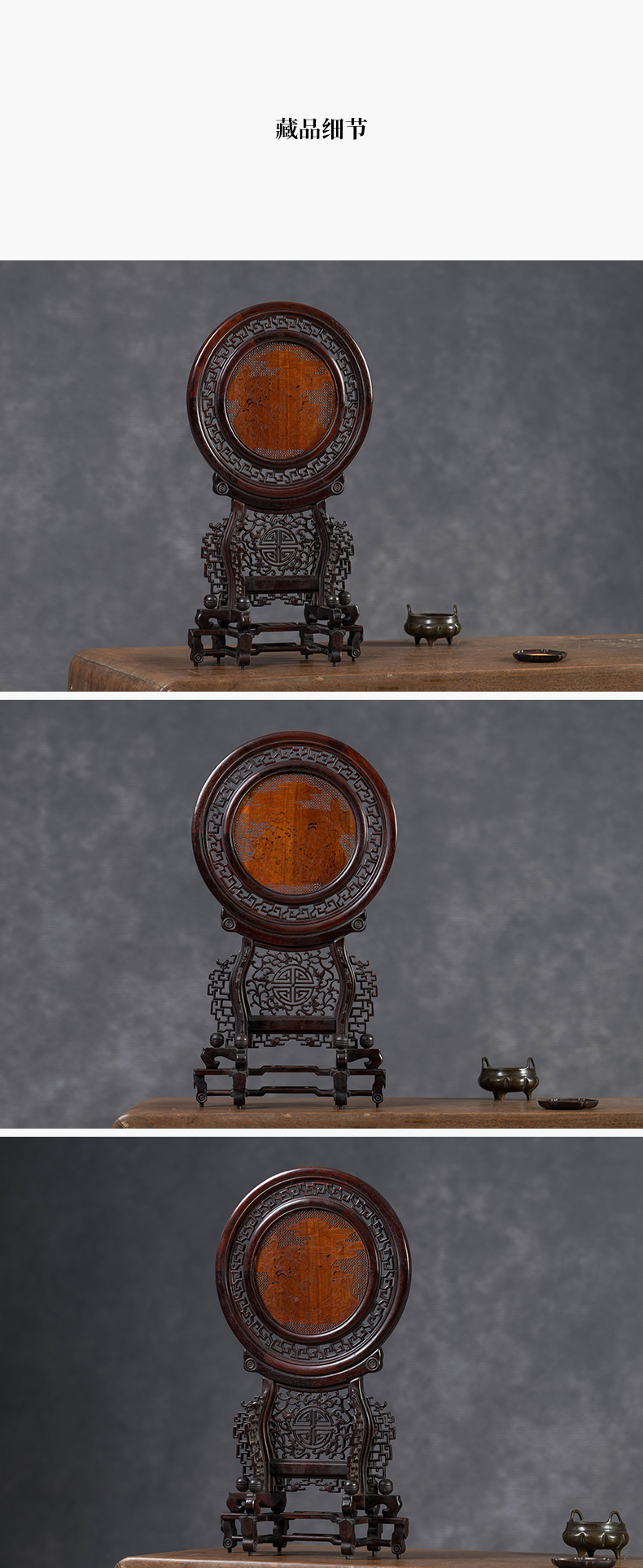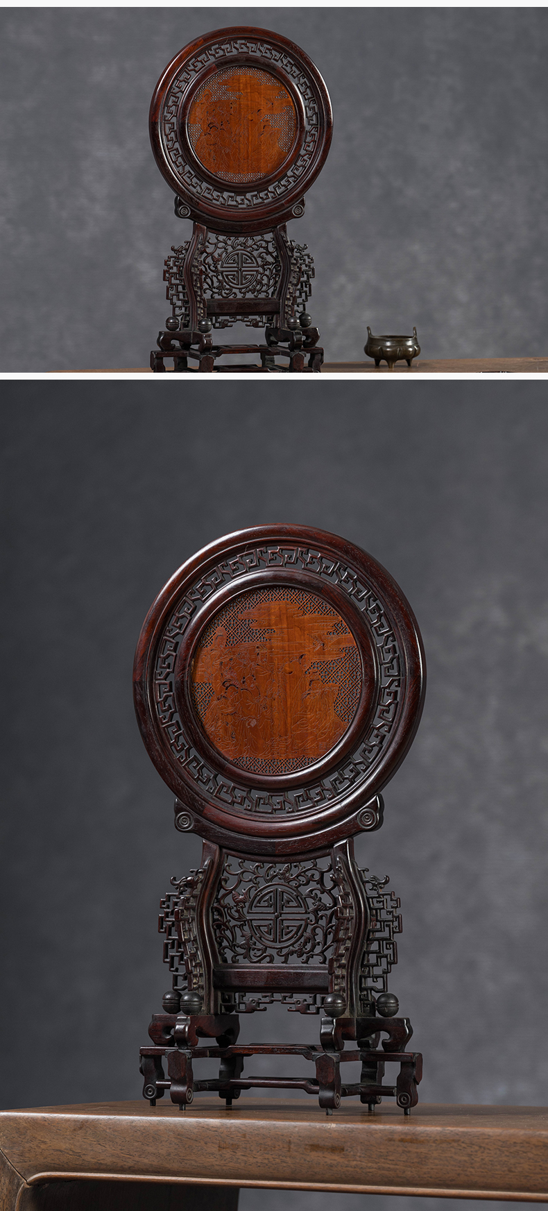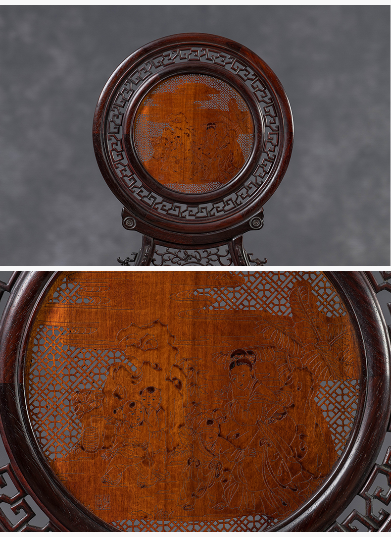 二十世纪 红木透雕八仙人物故事圆形插屏