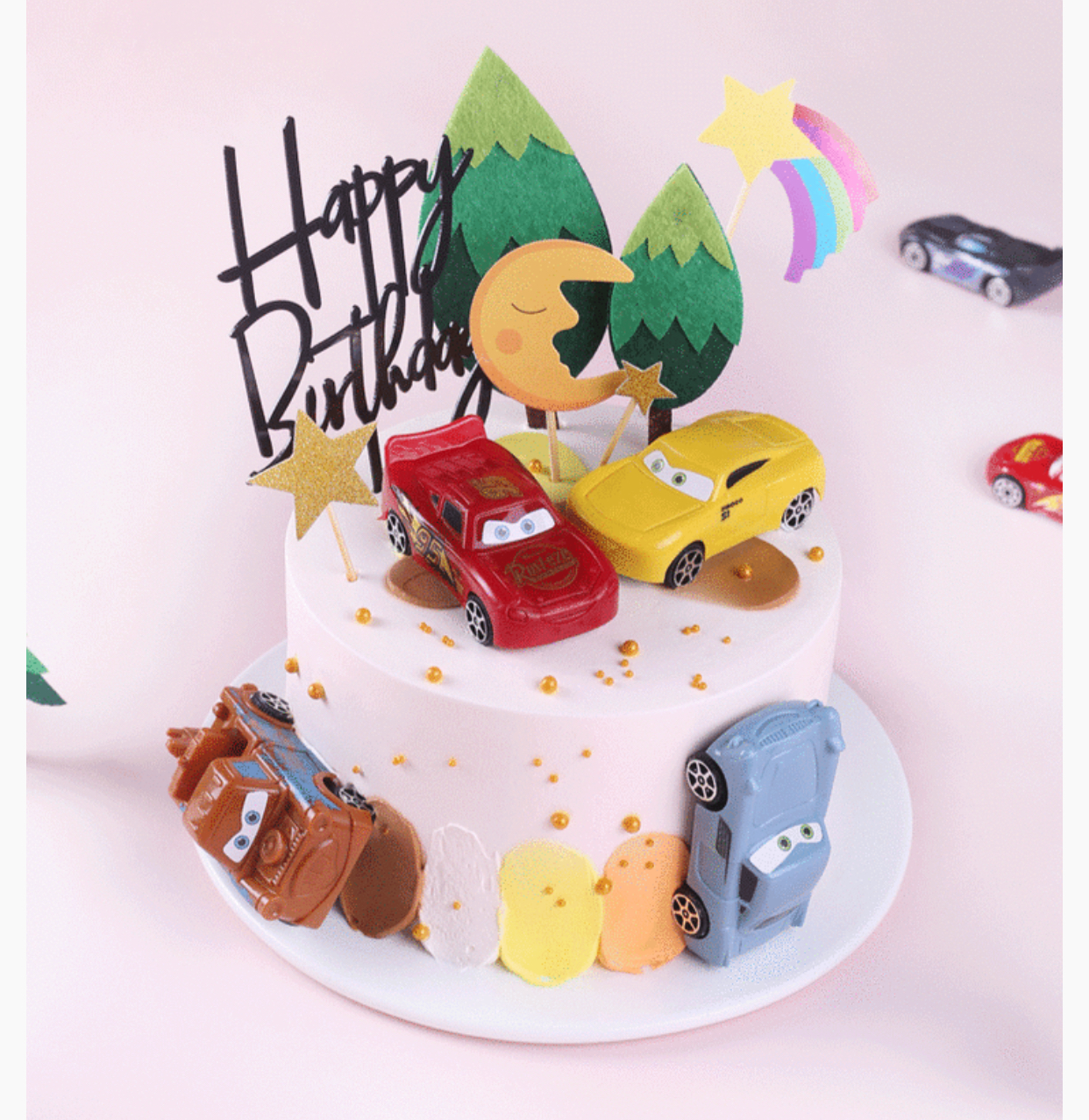 赛车总动员儿童生日蛋糕(四个麦昆)双层