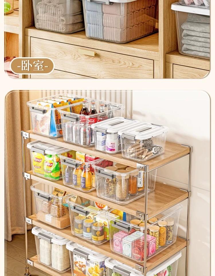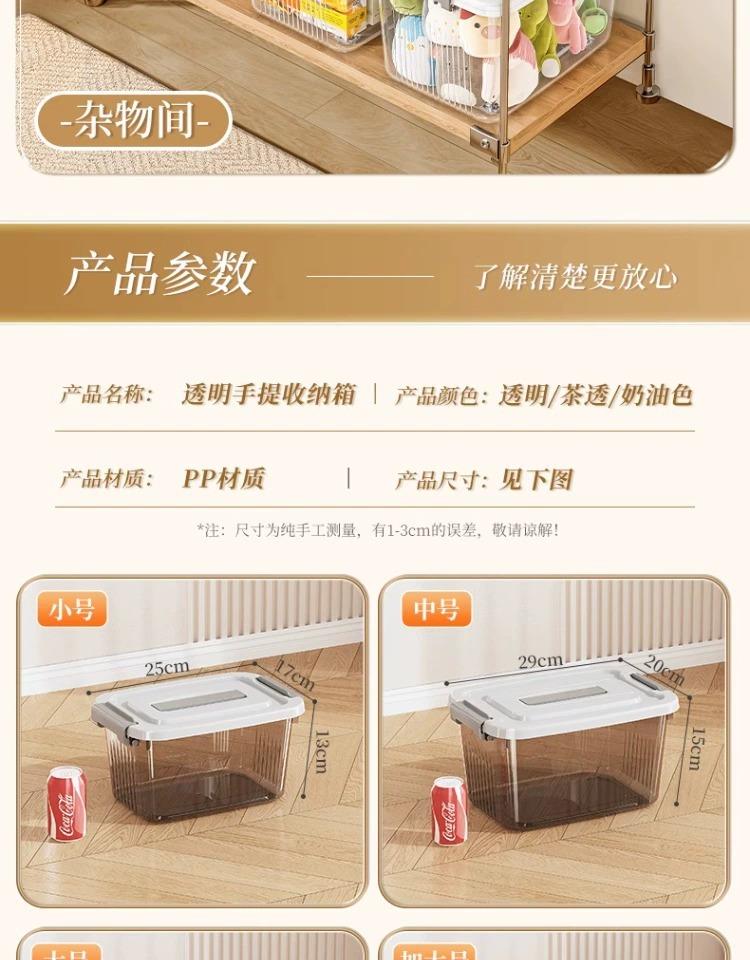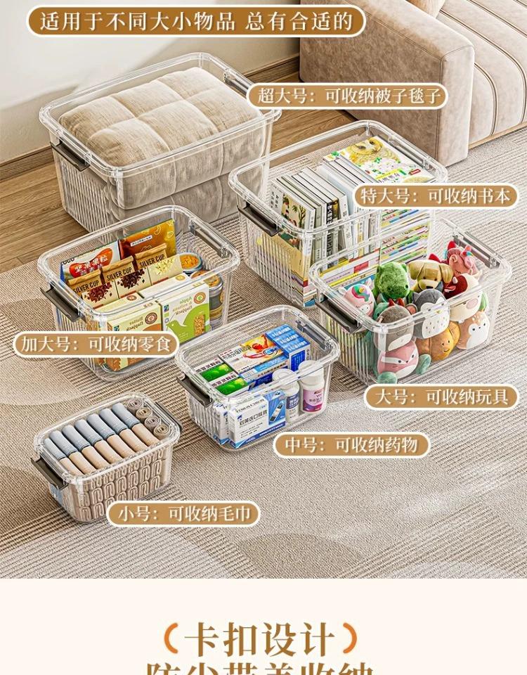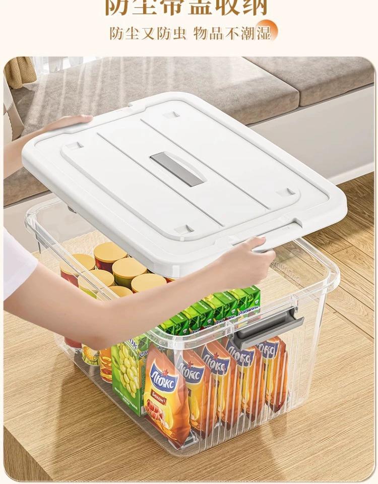 【百纳储物箱】手提透明收纳箱零食玩具加厚塑料整理箱搬家用带盖衣服收纳储物箱