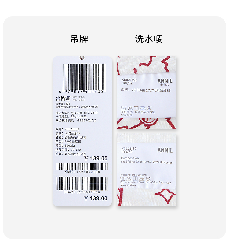 【实体店同款】男童圆领短袖针织衫夏季新款安奈儿童装XB621169