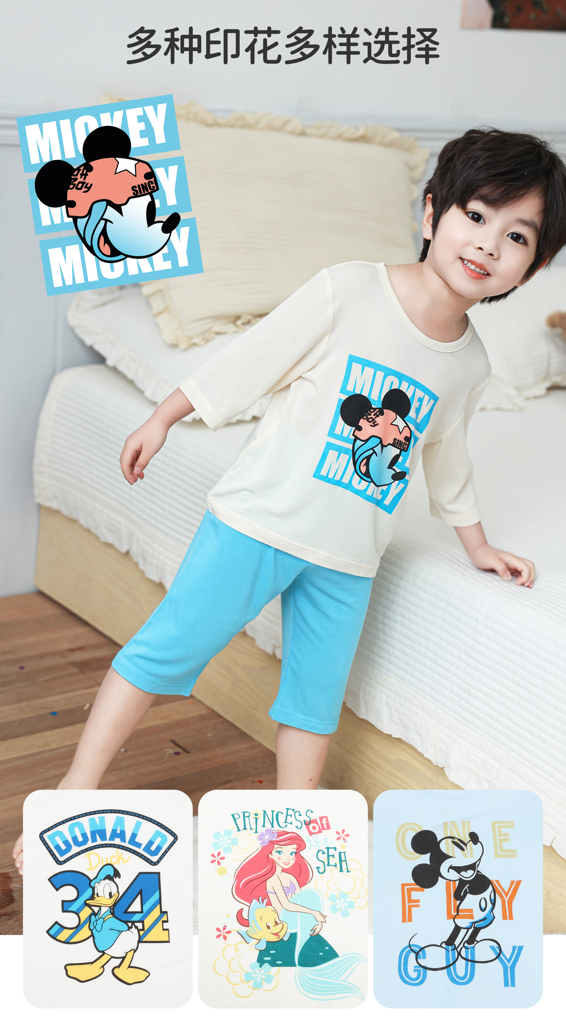 【品名】三枪迪士尼儿童短袖 背心莫代尔套装 短袖短裤套装 短袖