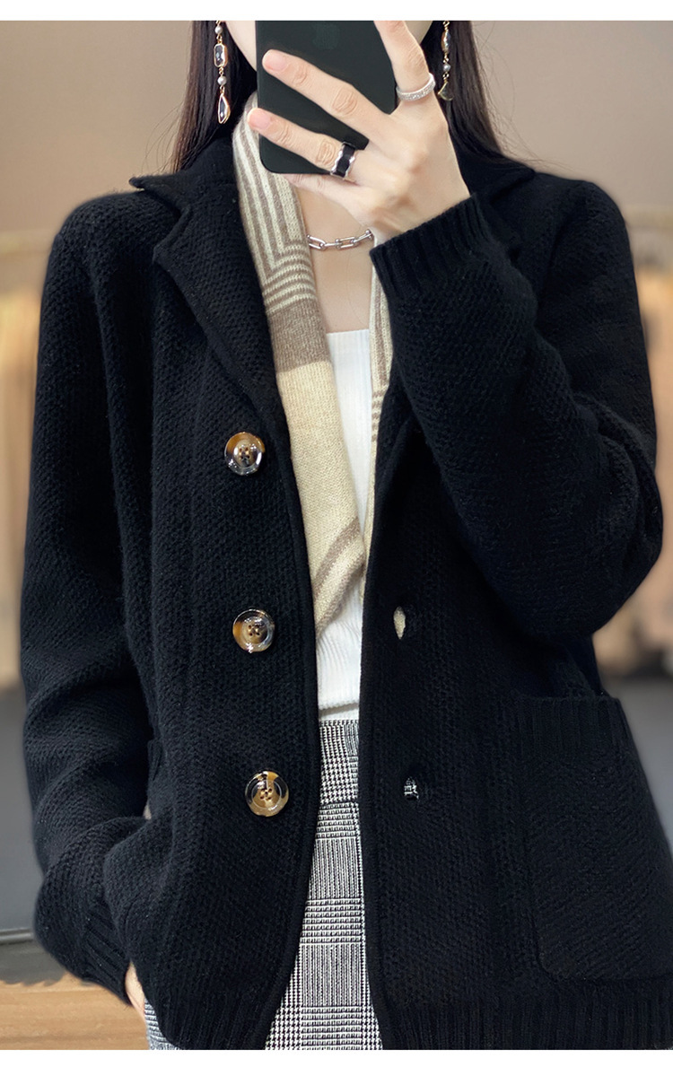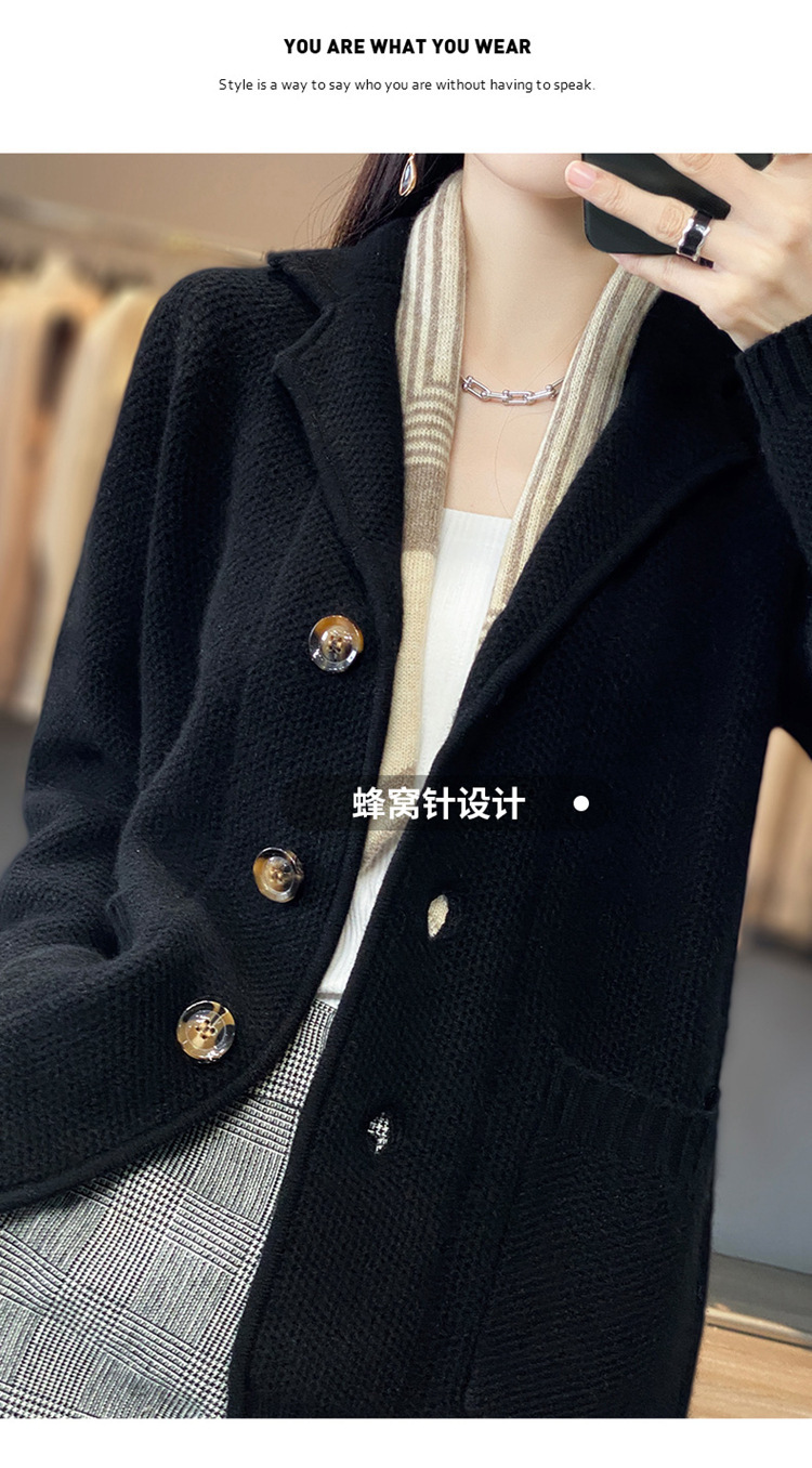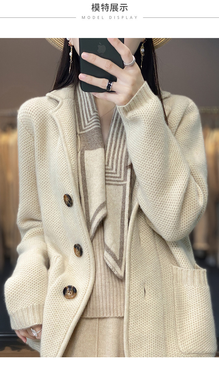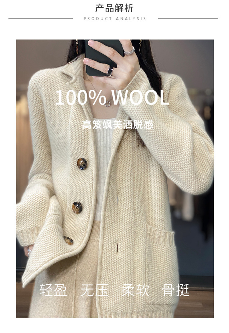 福利款~丁摩 加厚西装领外套单排扣全羊毛针织开衫NS2033