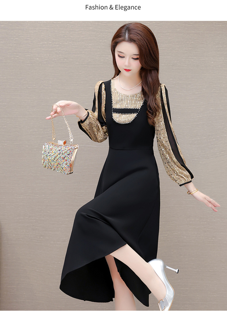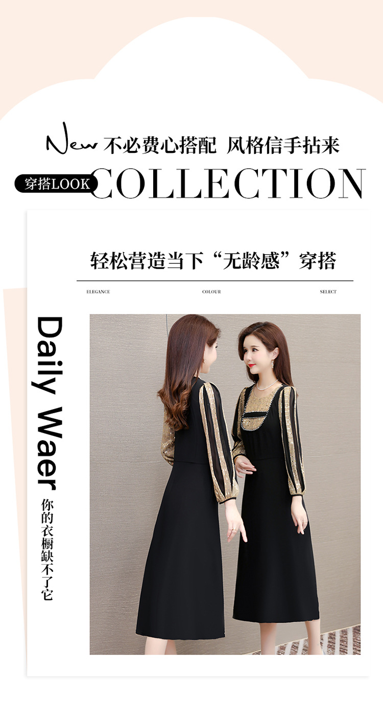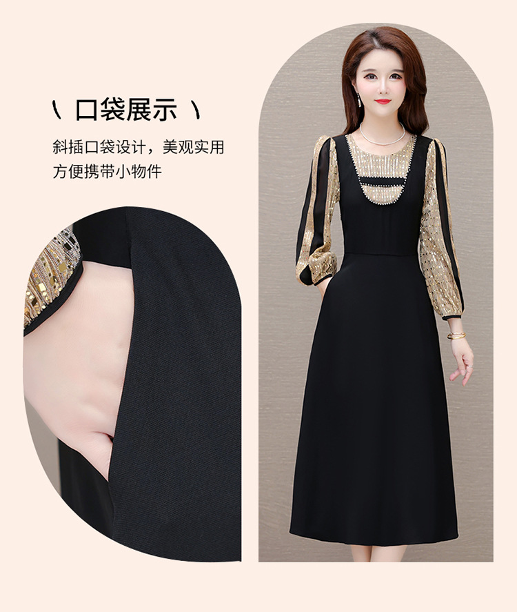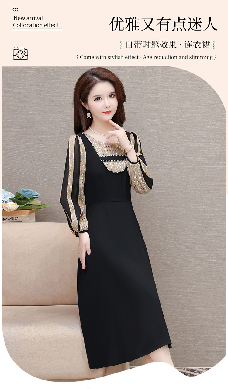 灯笼袖拼结,时尚拼色连衣裙QYM-HL-24NF029-Y