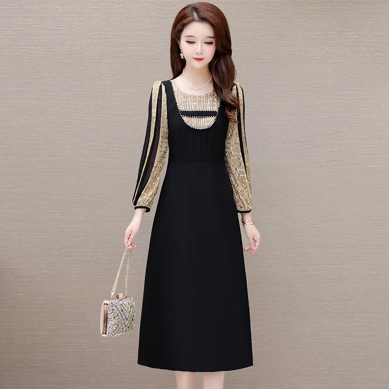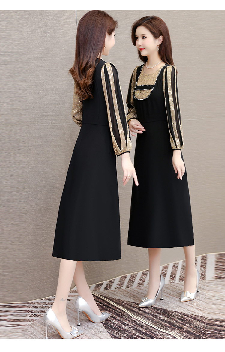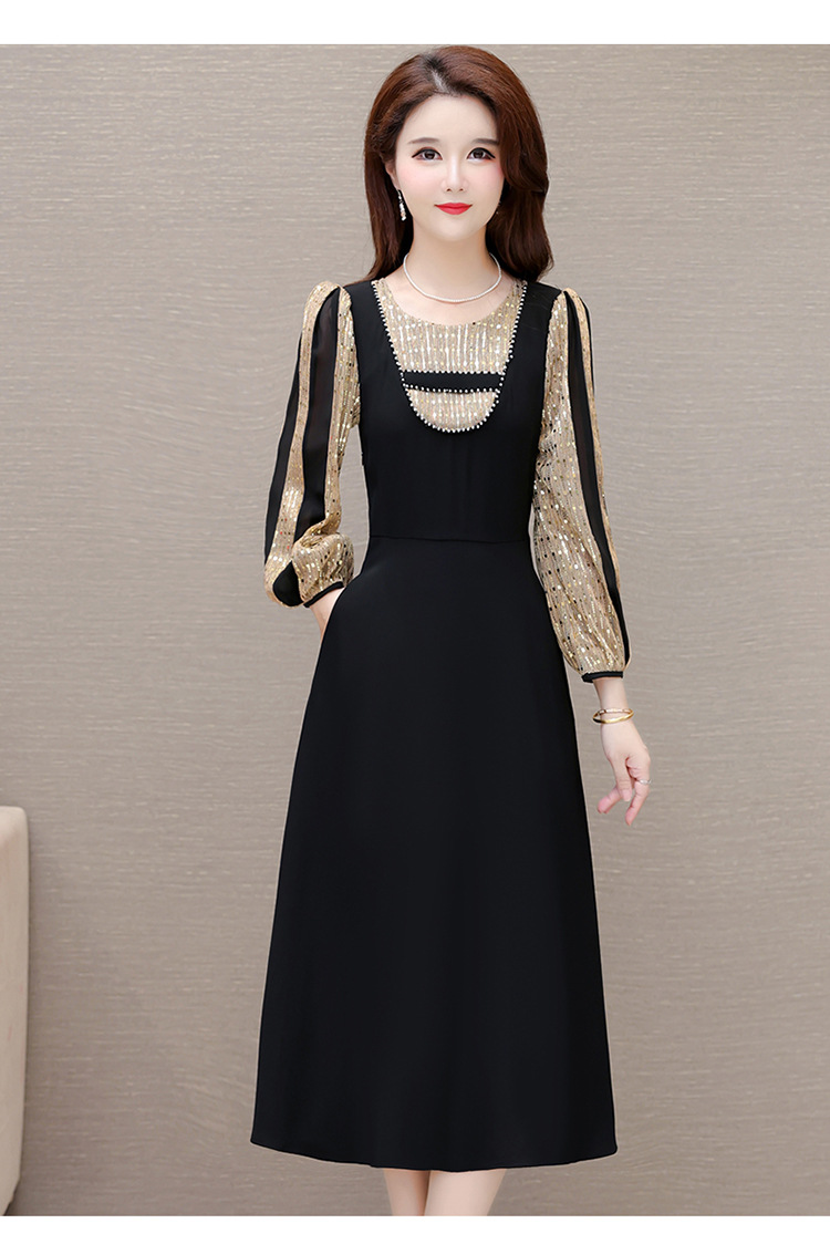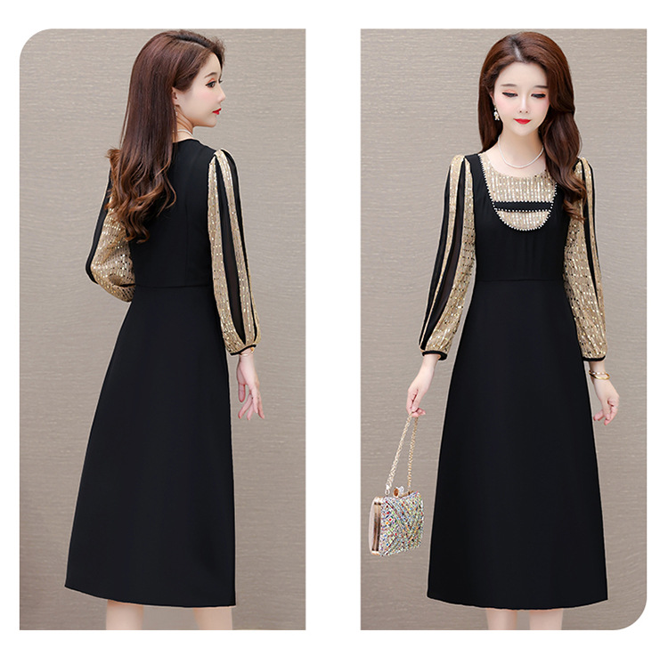 灯笼袖拼结,时尚拼色连衣裙QYM-HL-24NF029-Y
