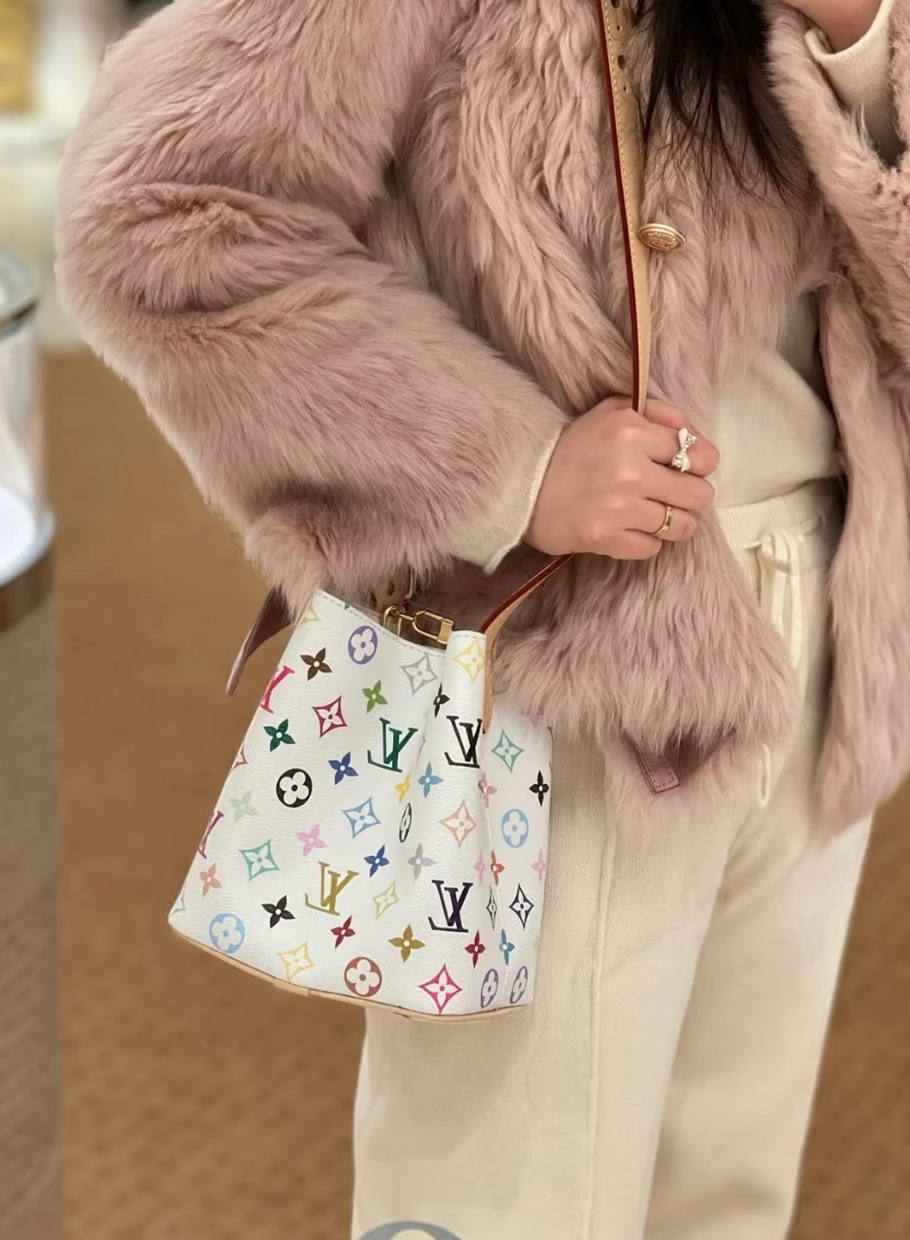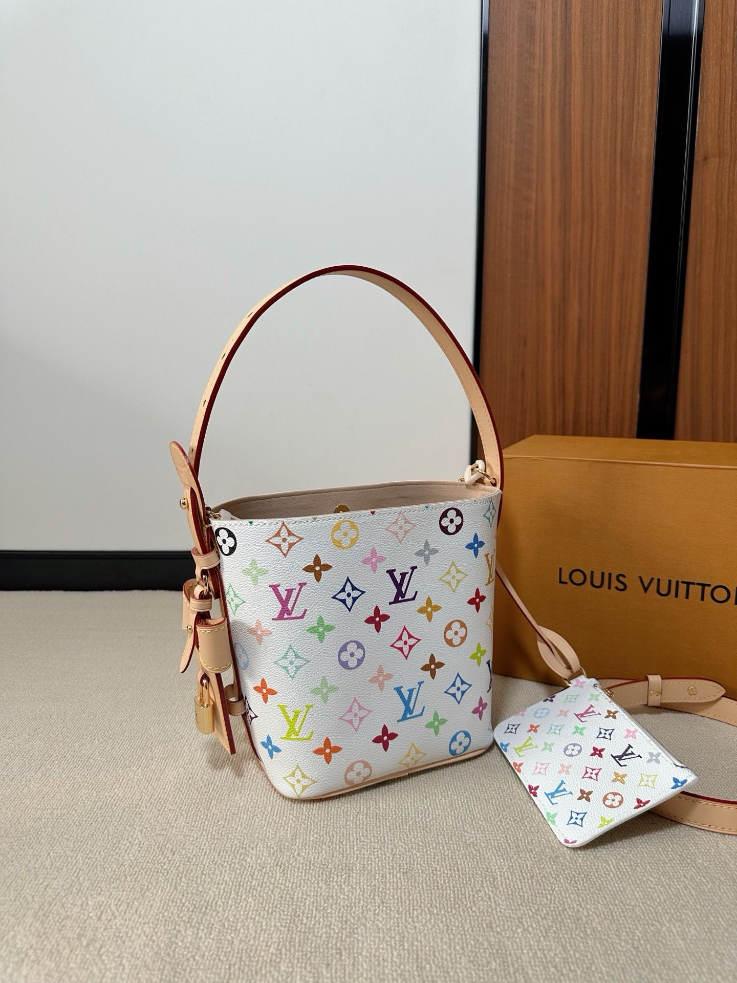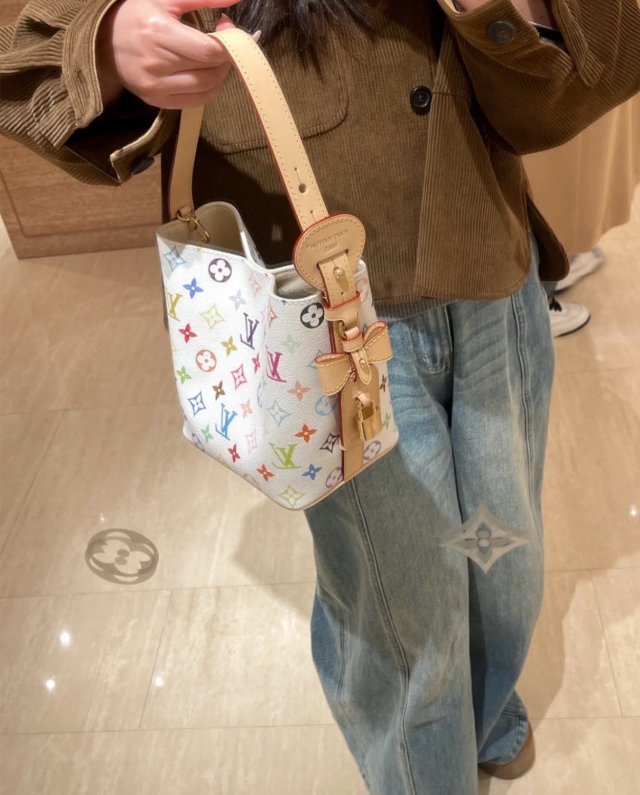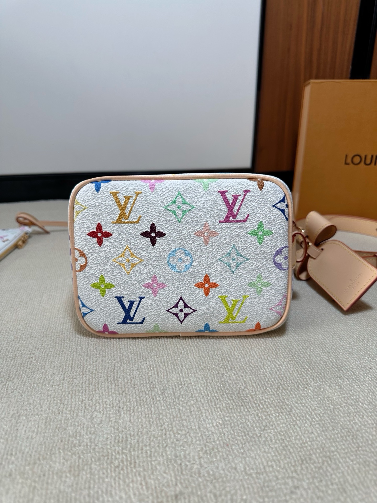 驴家25新款 村上隆联名 all in bb白三彩老花水桶包!官方2W 加价都一包难求!!