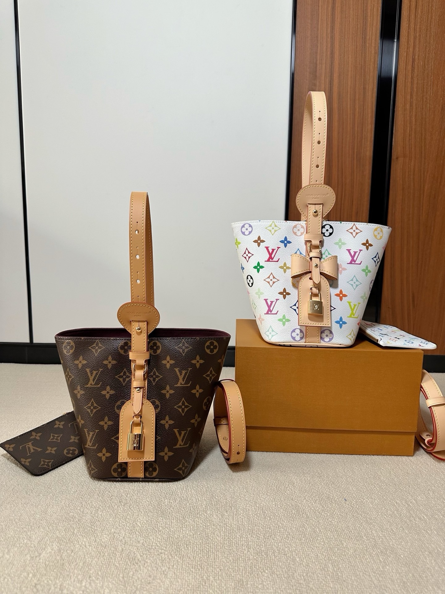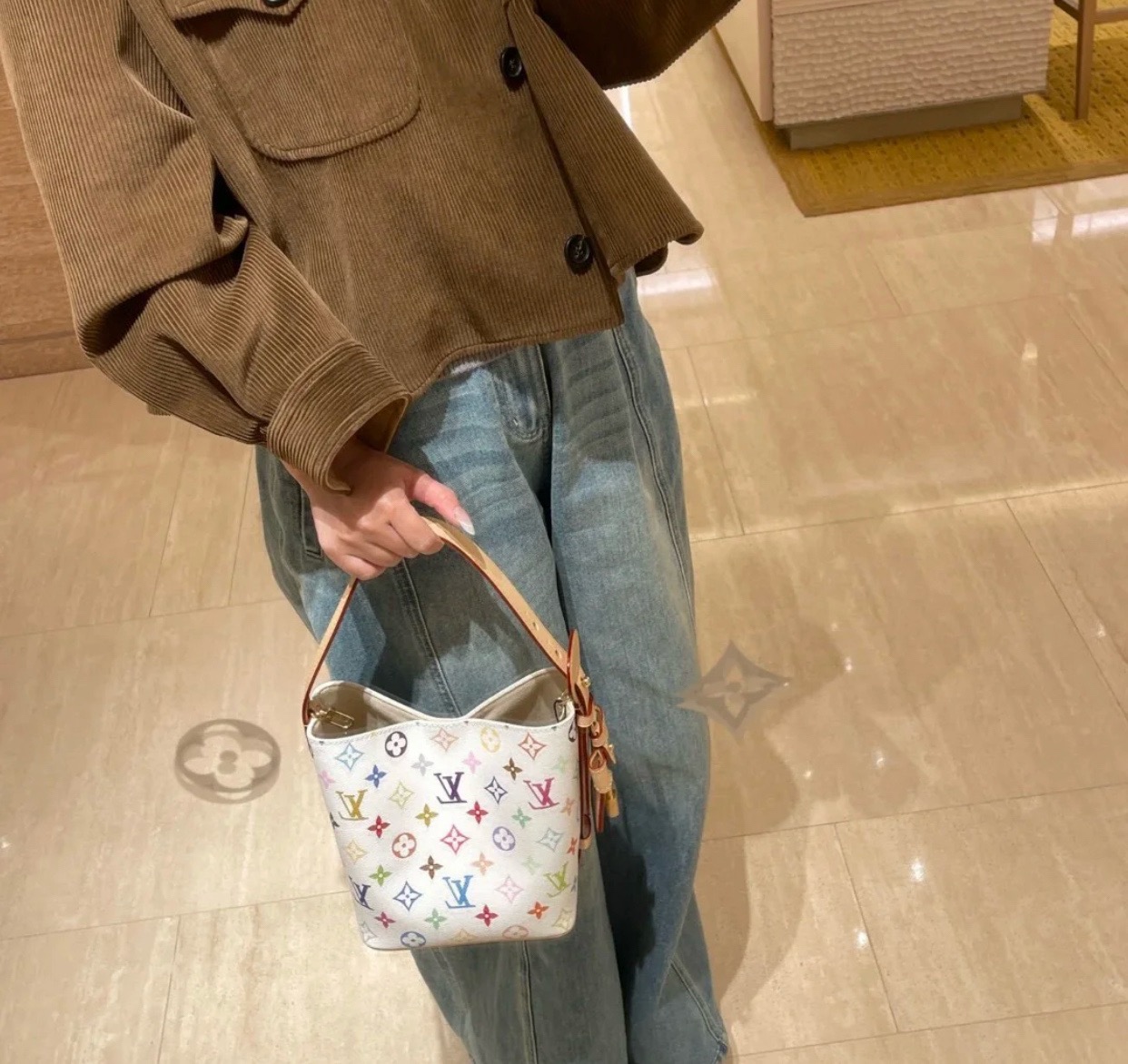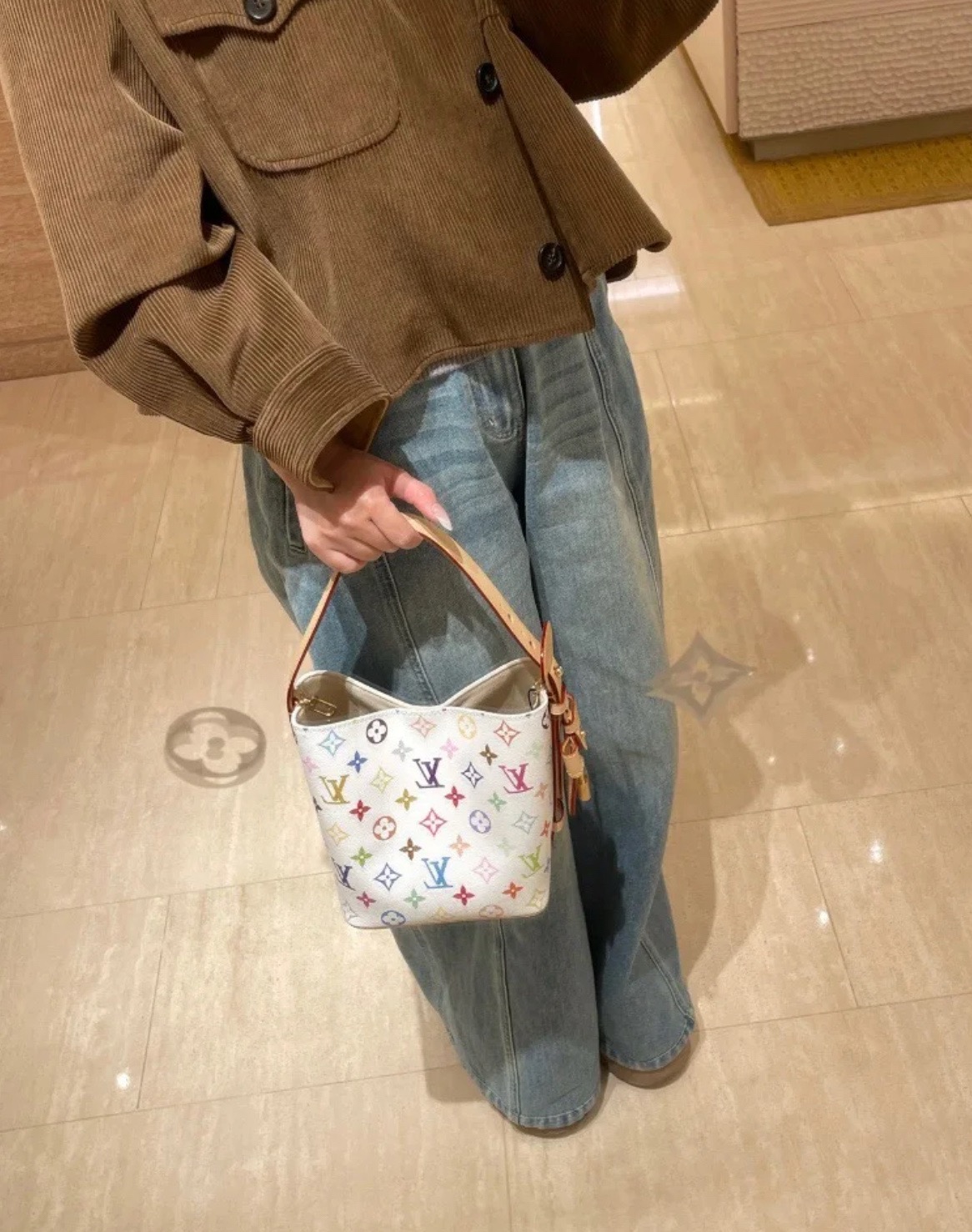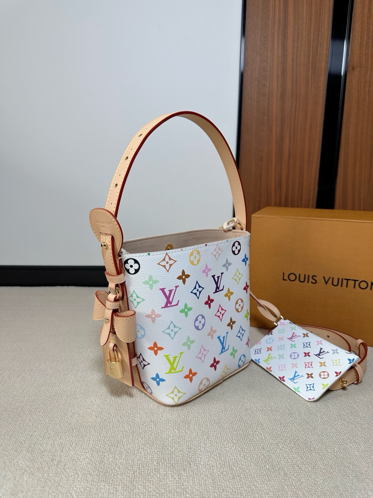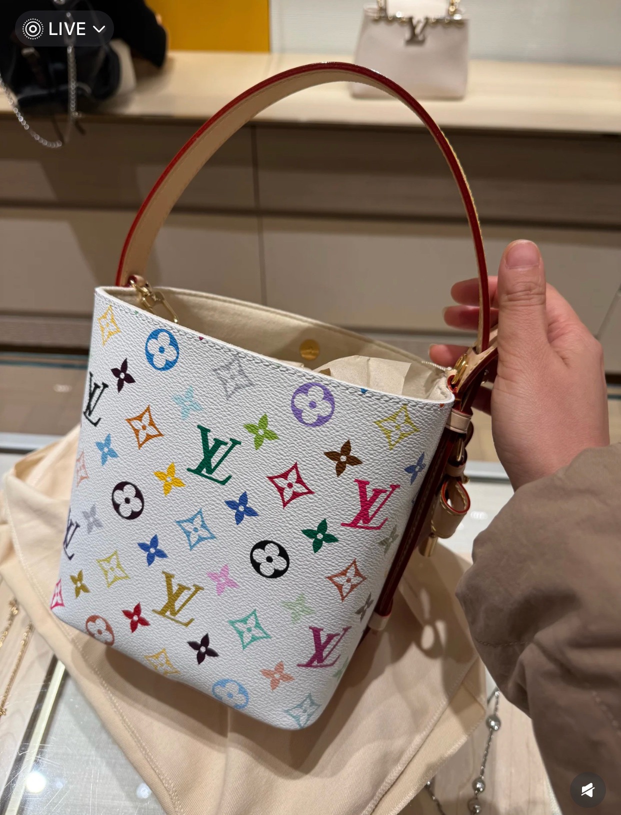 驴家25新款 村上隆联名 all in bb白三彩老花水桶包!官方2W 加价都一包难求!!