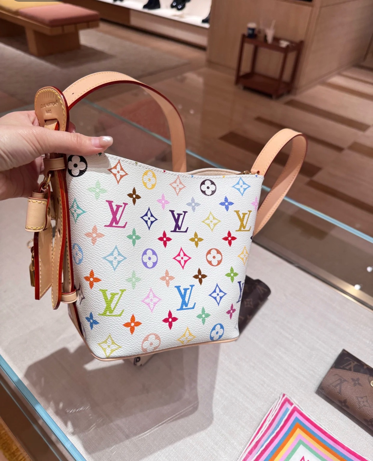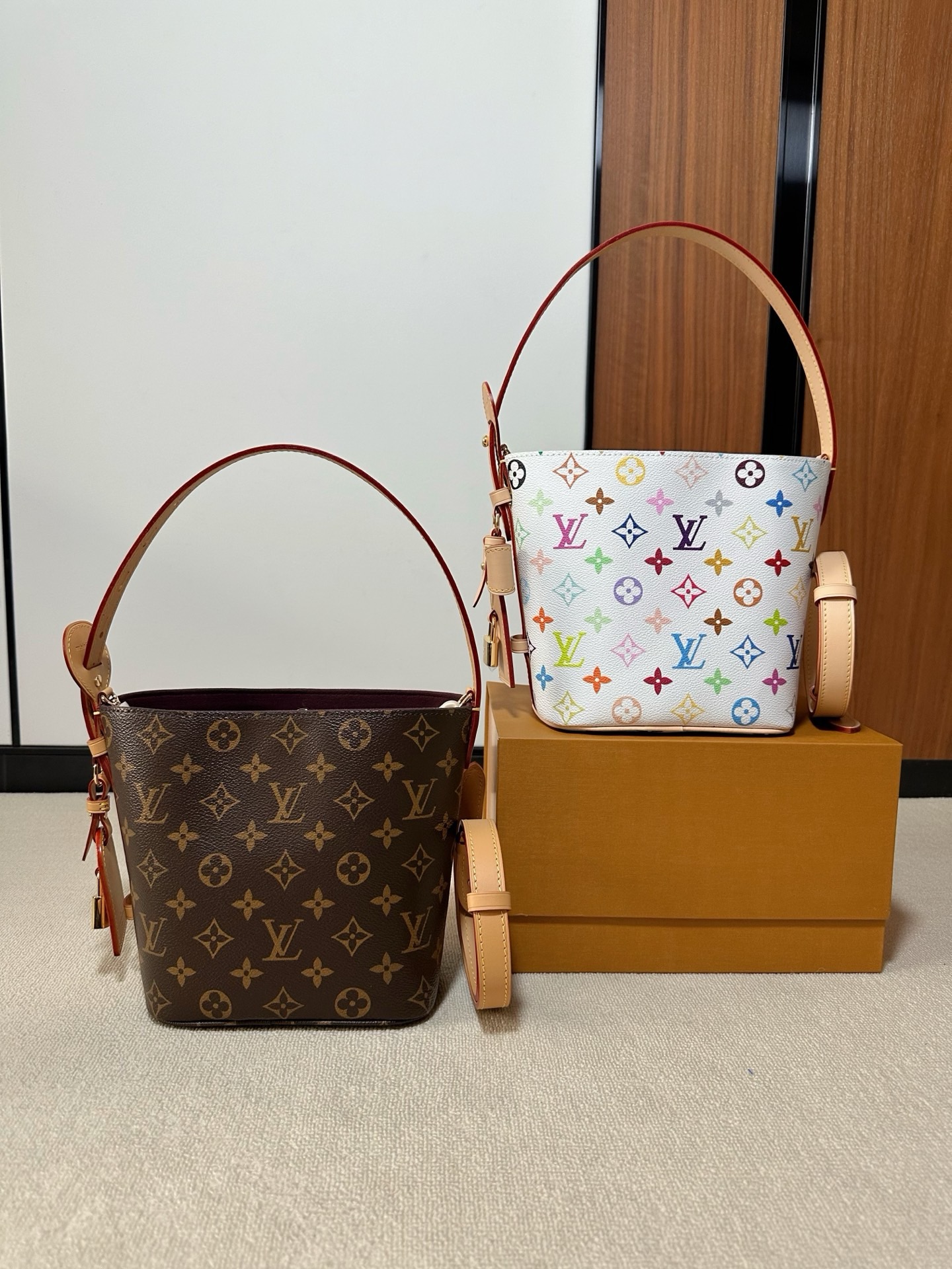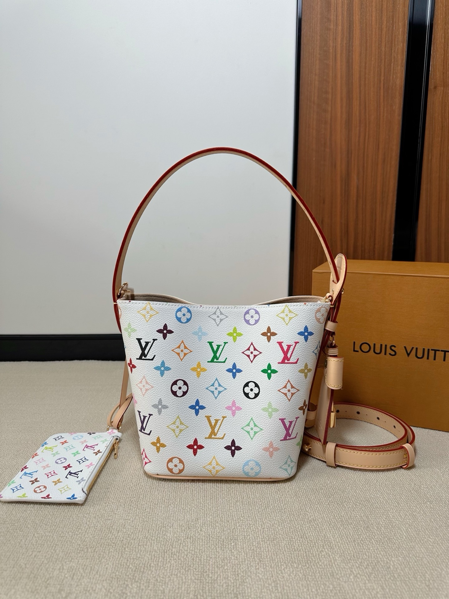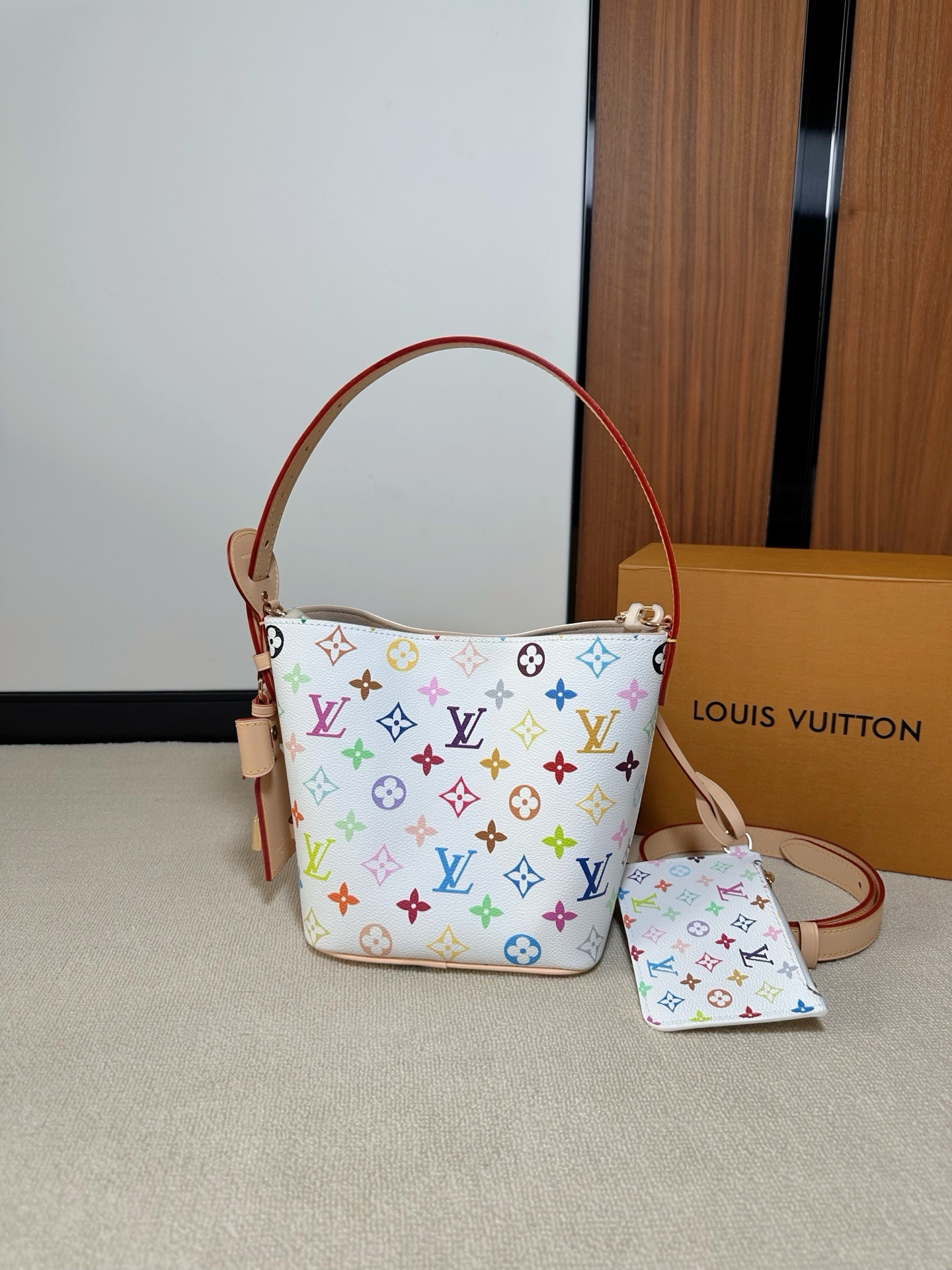 驴家25新款 村上隆联名 all in bb白三彩老花水桶包!官方2W 加价都一包难求!!