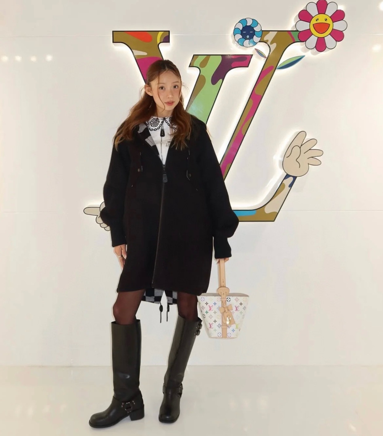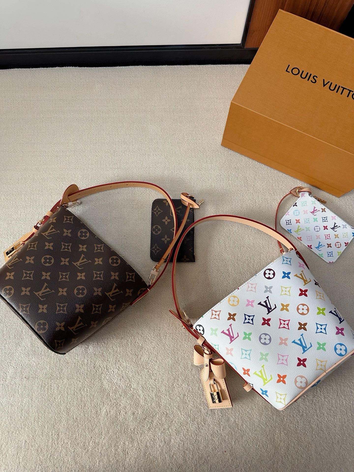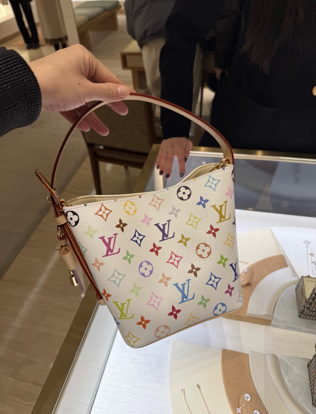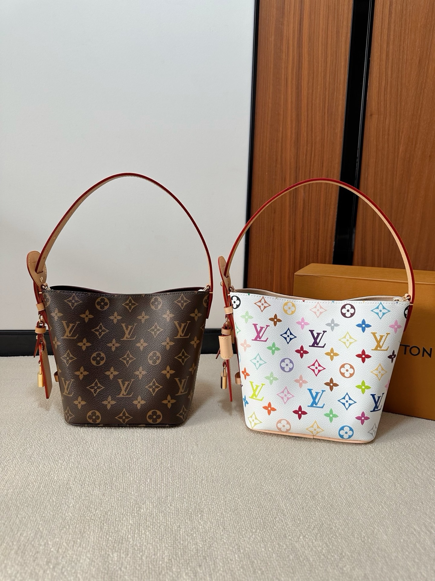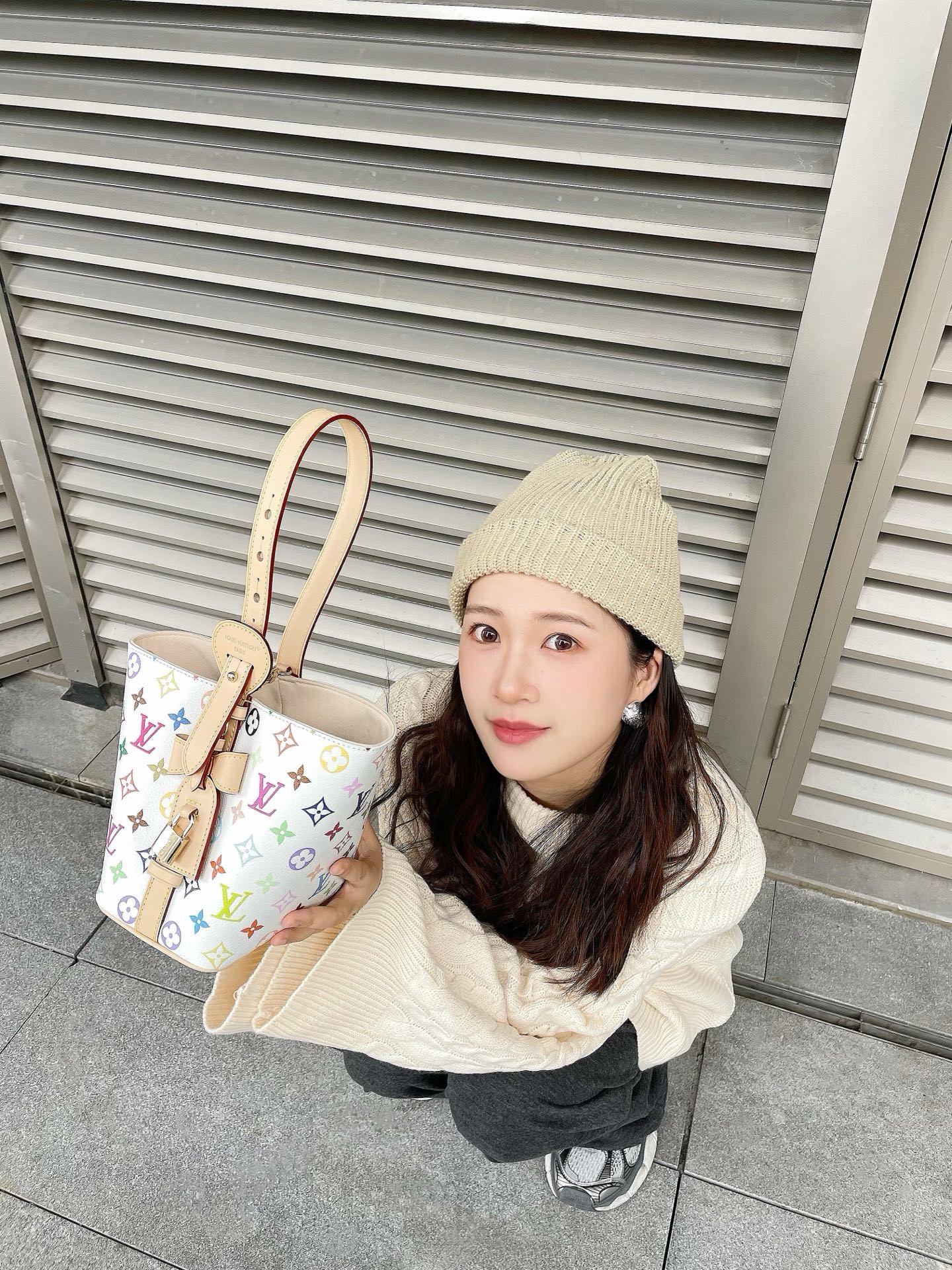 驴家25新款 村上隆联名 all in bb白三彩老花水桶包!官方2W 加价都一包难求!!