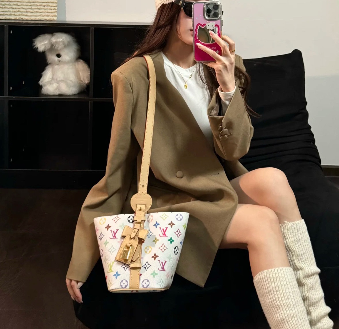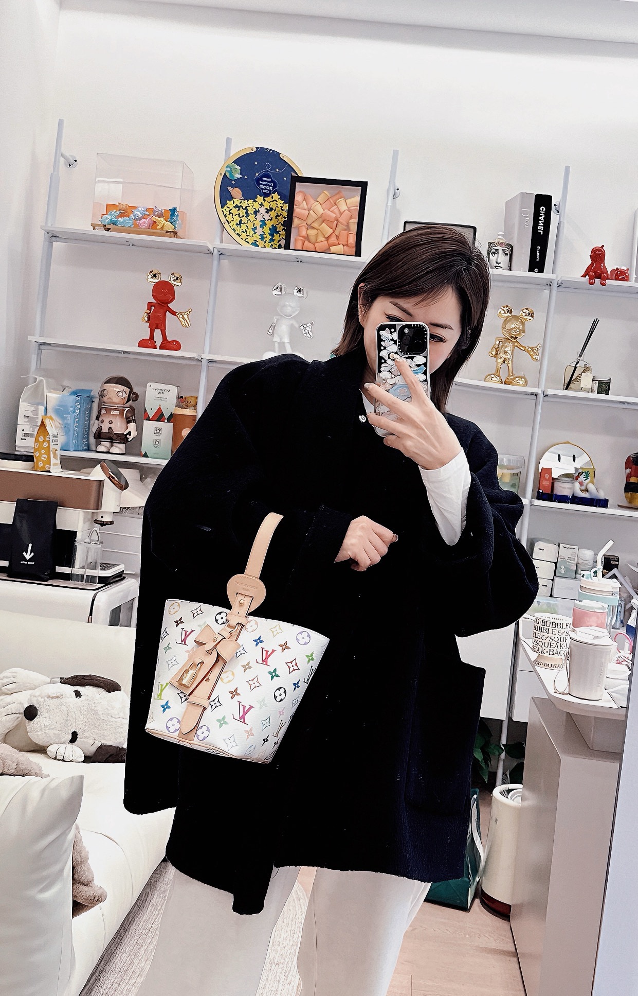 村上隆联名款all in bb白三彩,别看包小小,但它自身的功能真的非常吸引人!首先包包自身本来就有4种的形态随你变换,蝴蝶结 你想放在哪儿都能给你设计明白