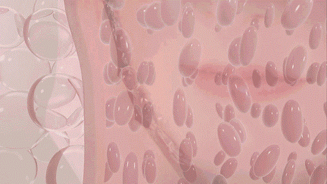 涂抹在手上,慢慢就被肌肤吸收了,这些气泡小分子就像漫威电影里的蚁人一样,携带着提亮成分“钻”进肌肤。
