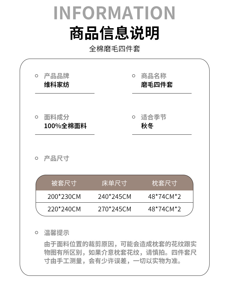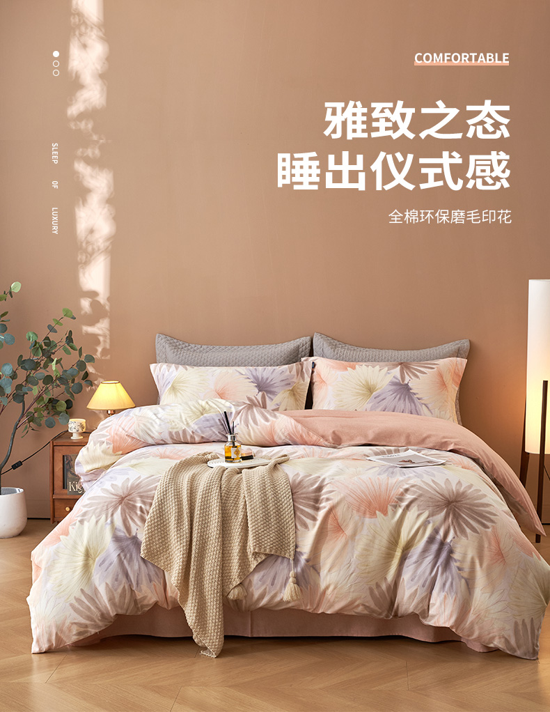 【维科家纺】轻奢全棉磨毛床上四件套高级感纯棉双层纱高档床品被套床单四件套