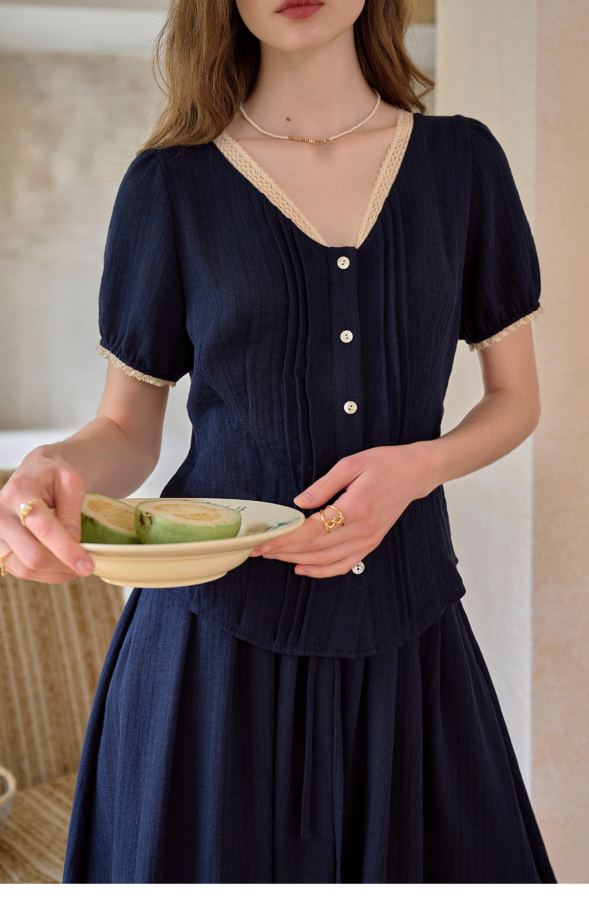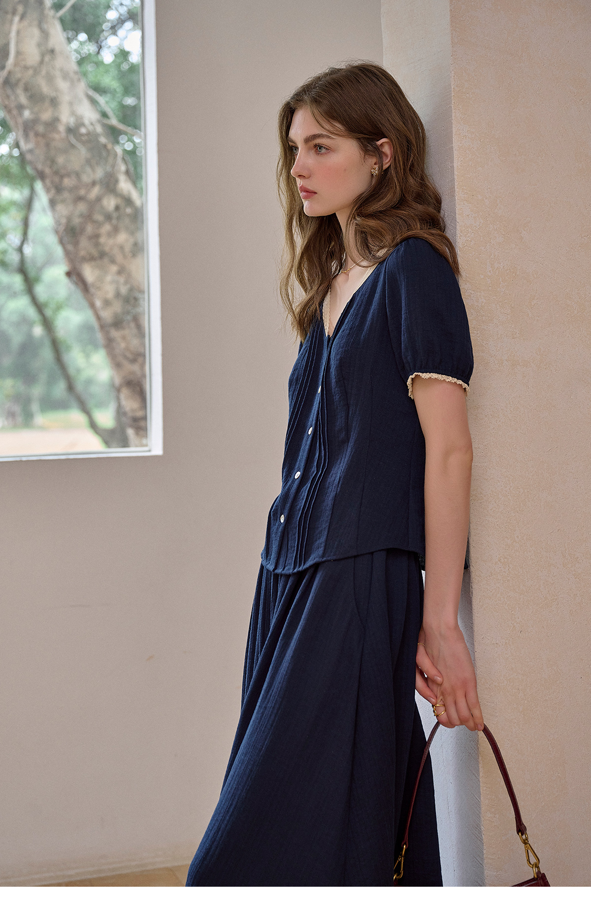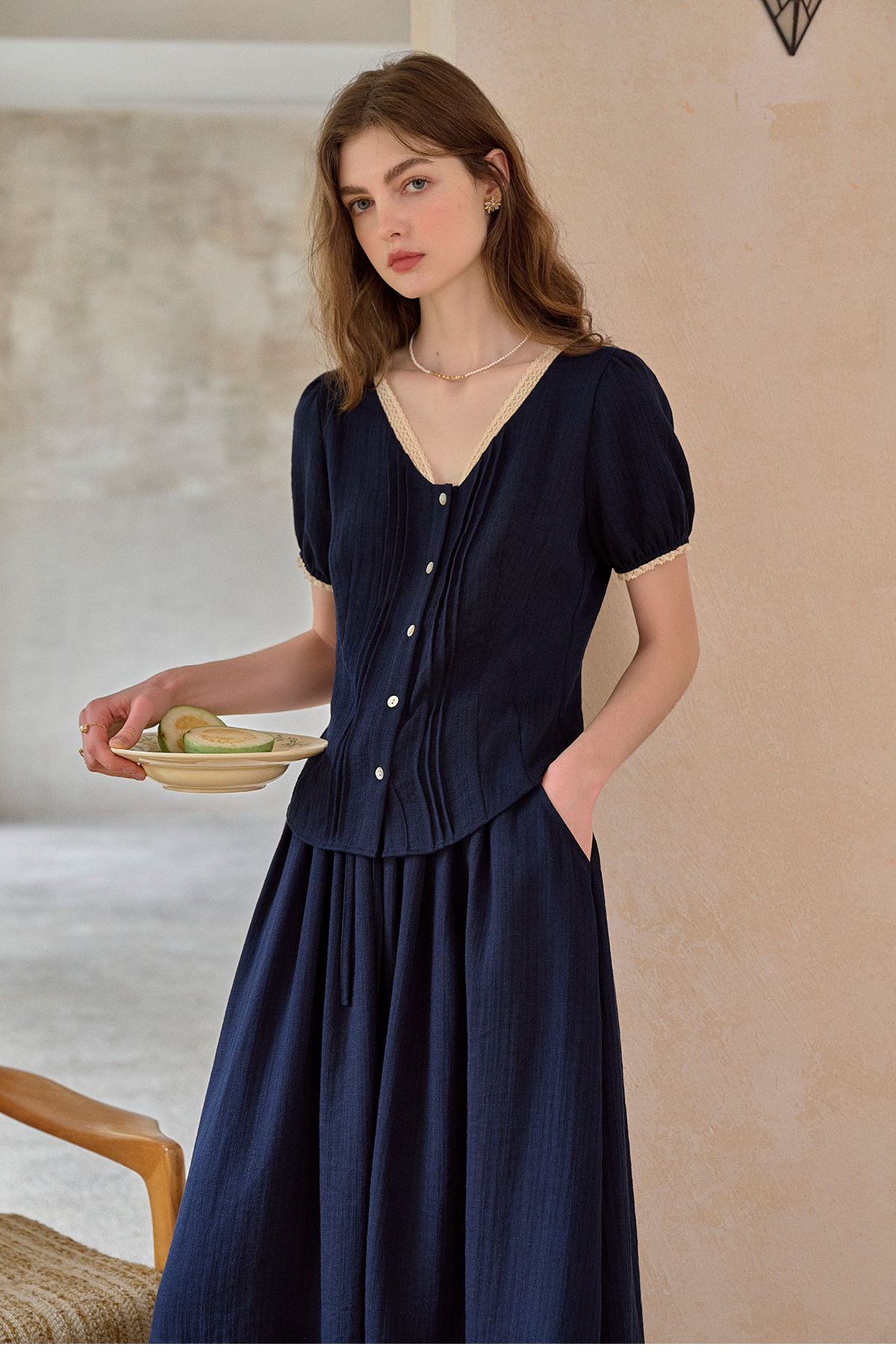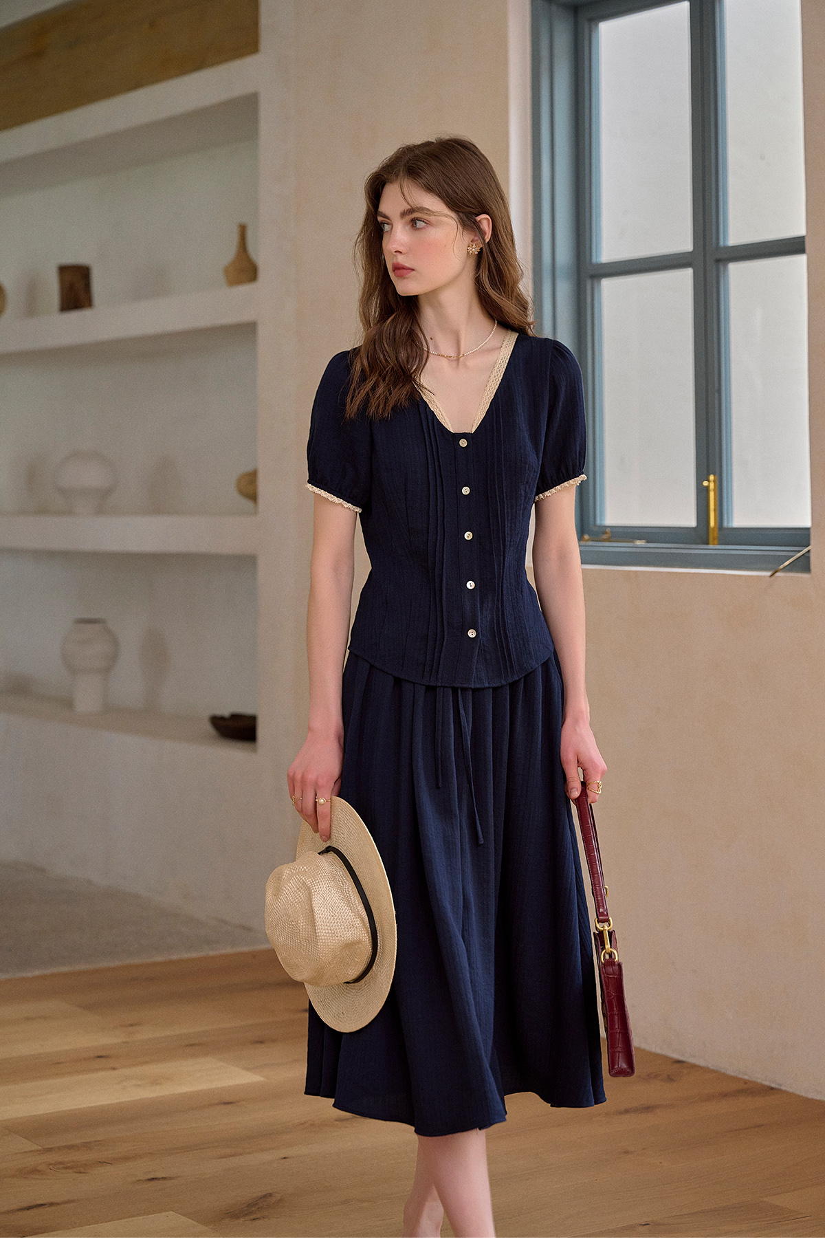 SimpleRetro亚麻混纺复古学院感文艺套装女