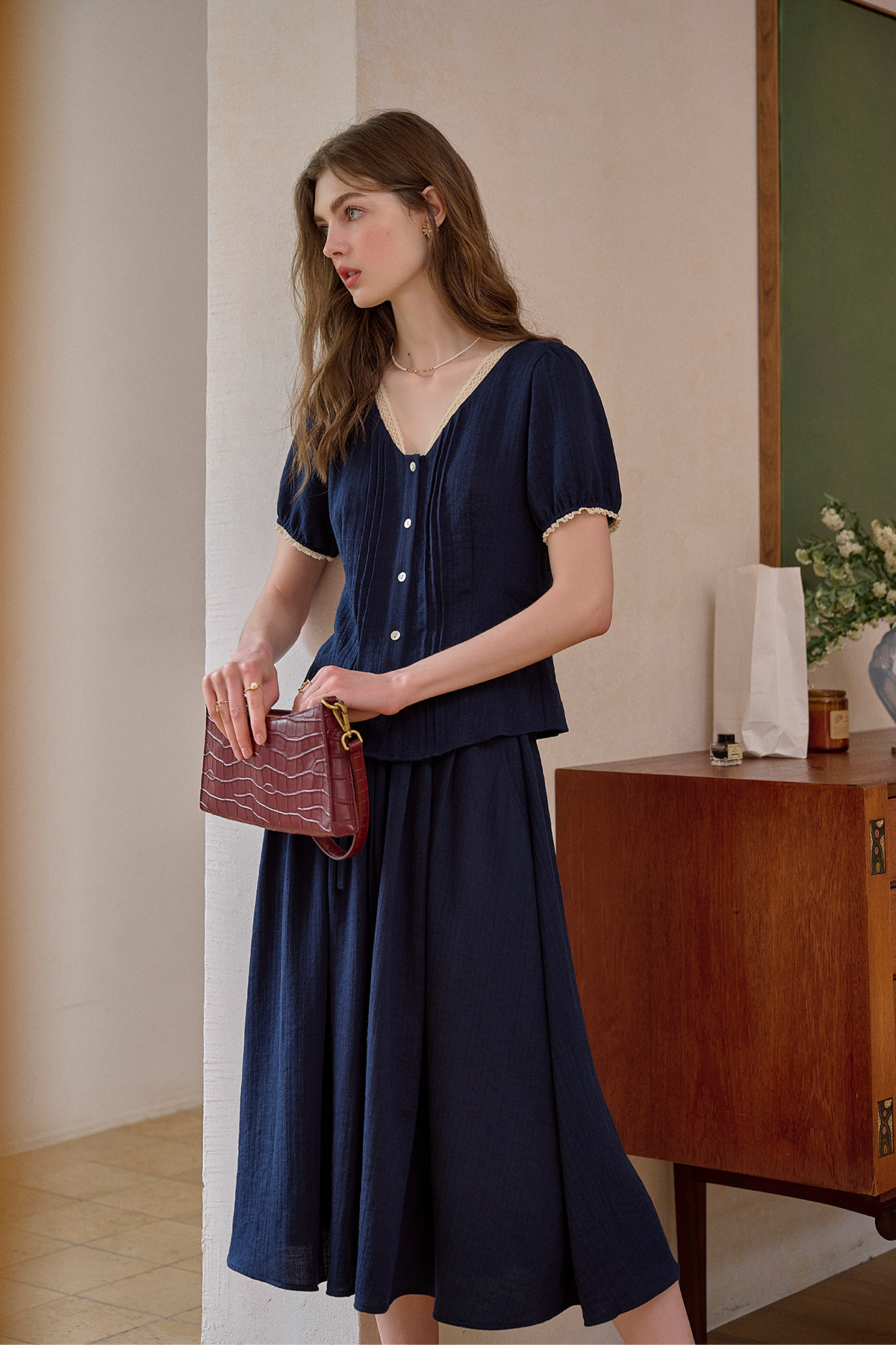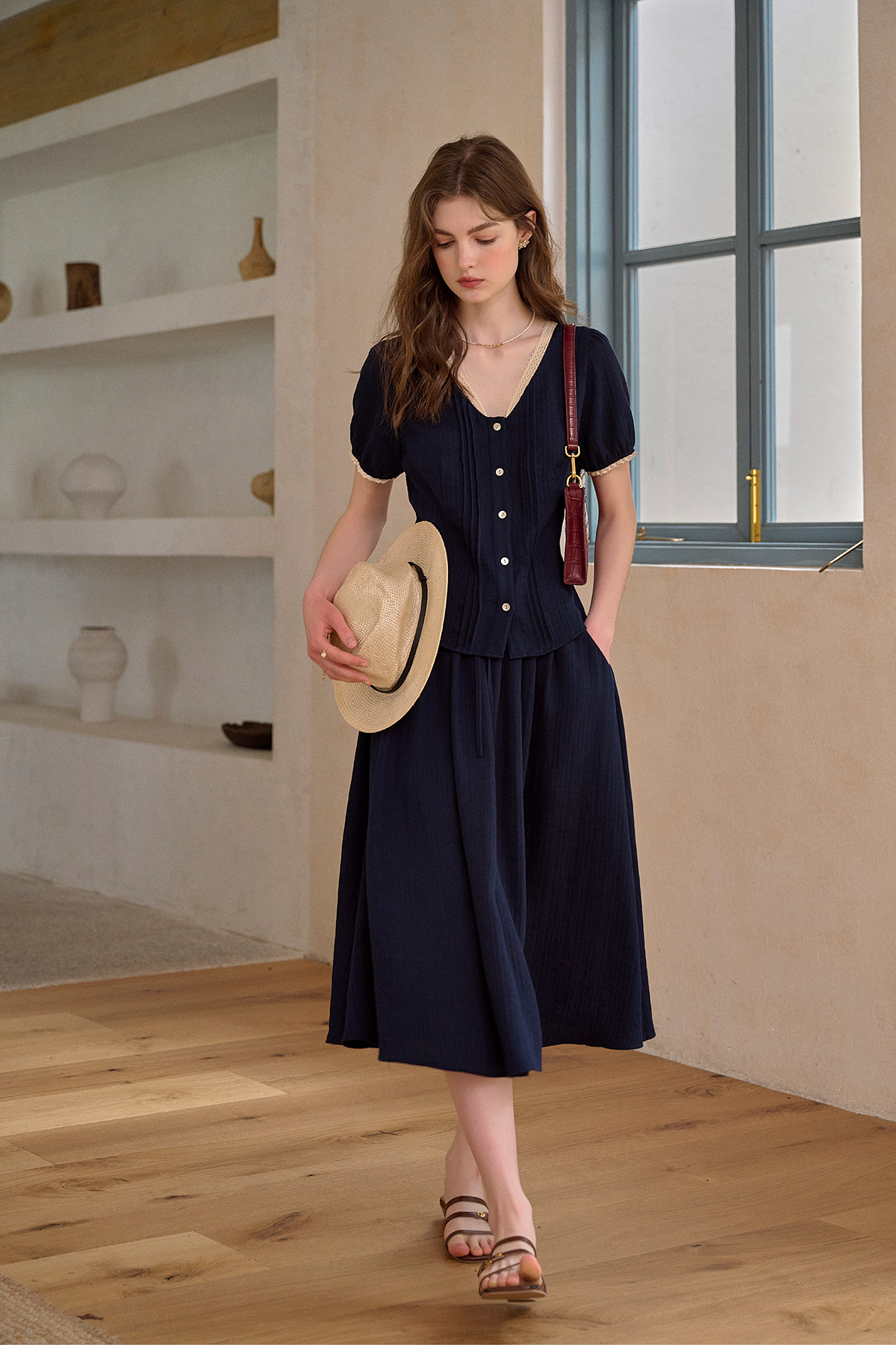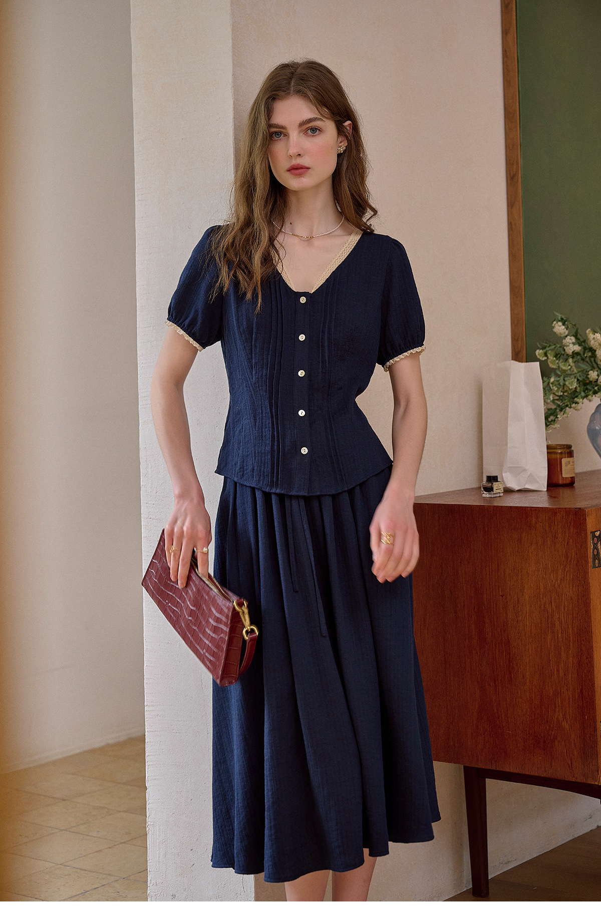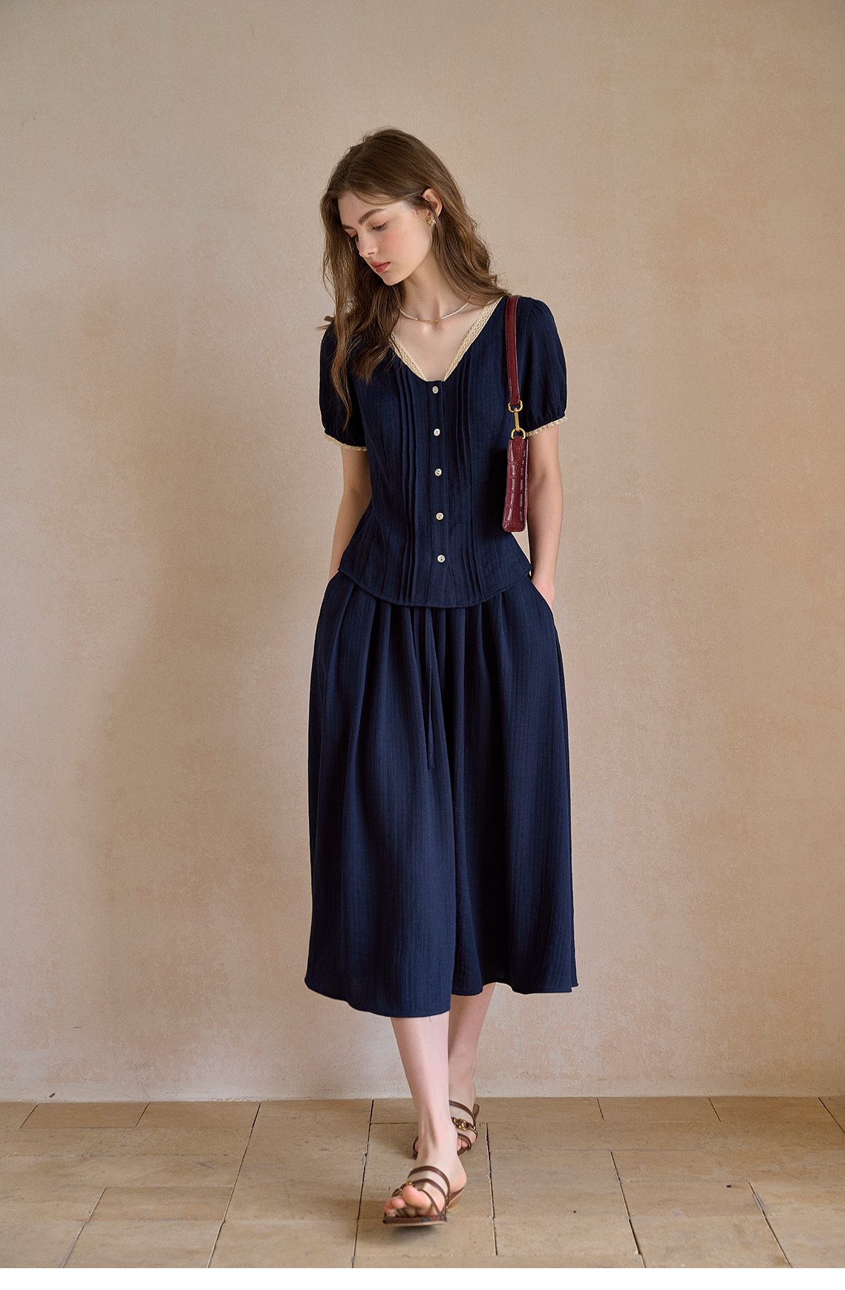 SimpleRetro亚麻混纺复古学院感文艺套装女