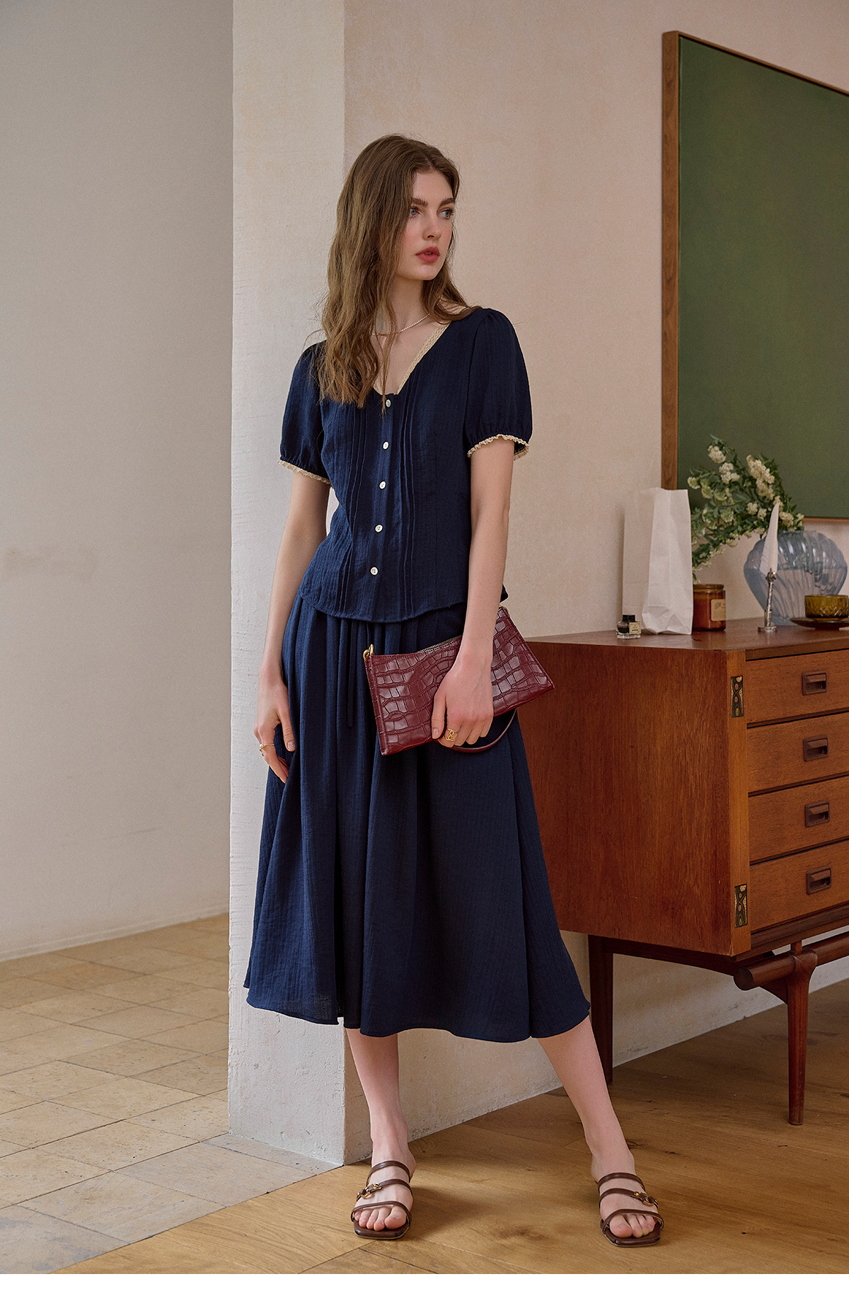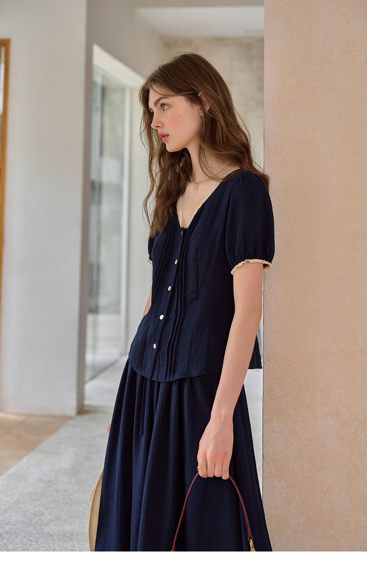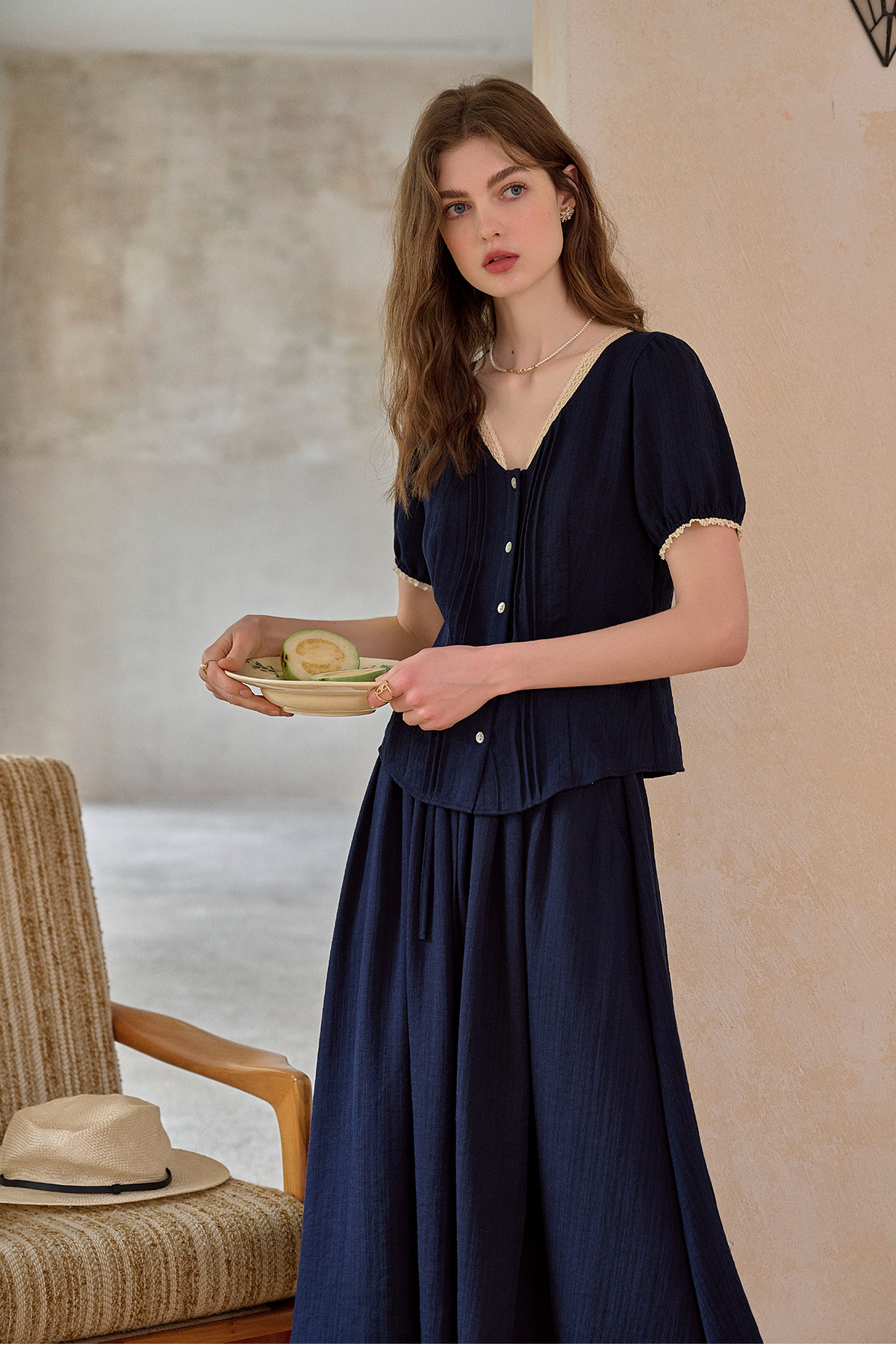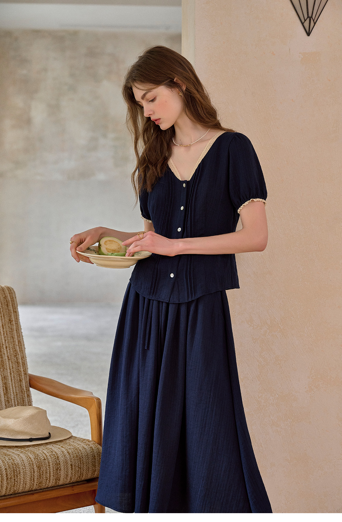 SimpleRetro亚麻混纺复古学院感文艺套装女