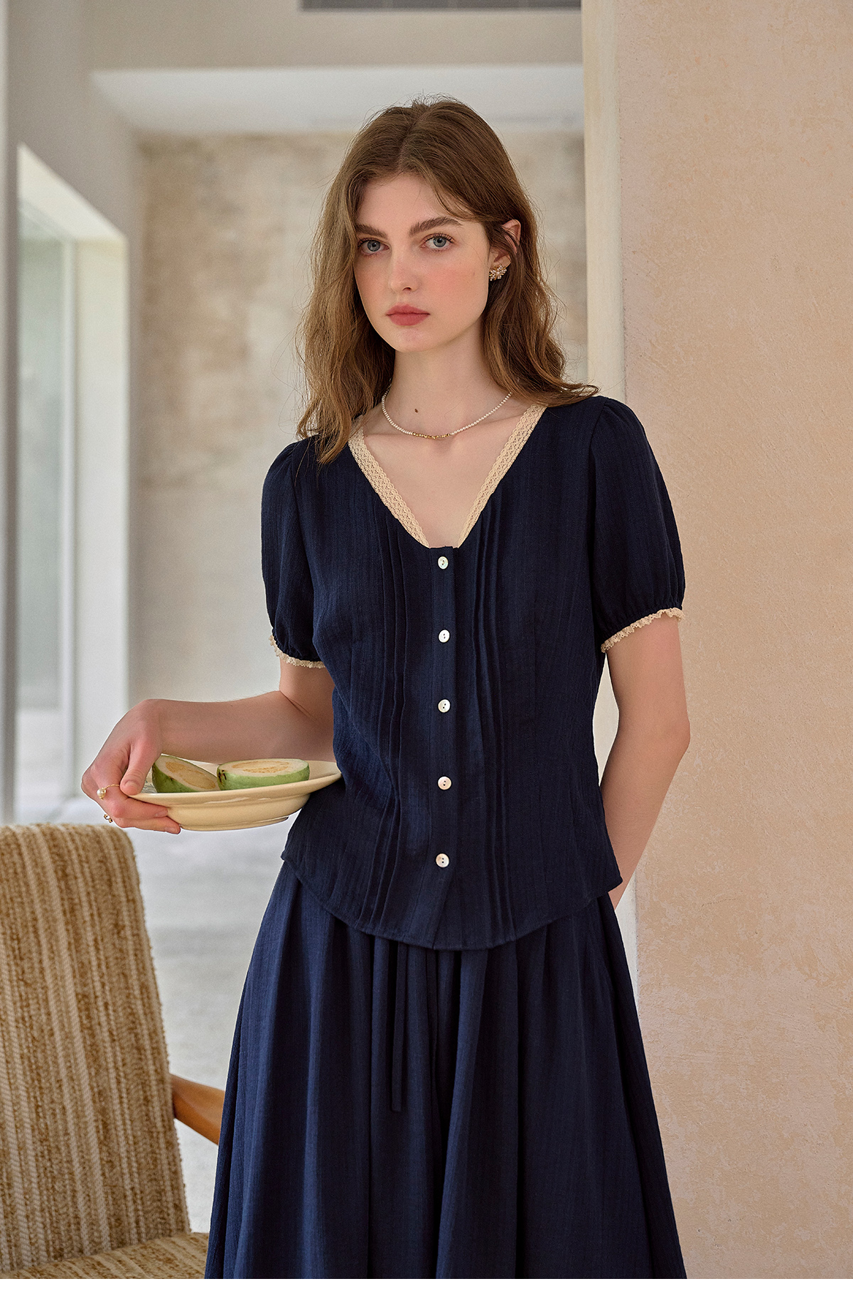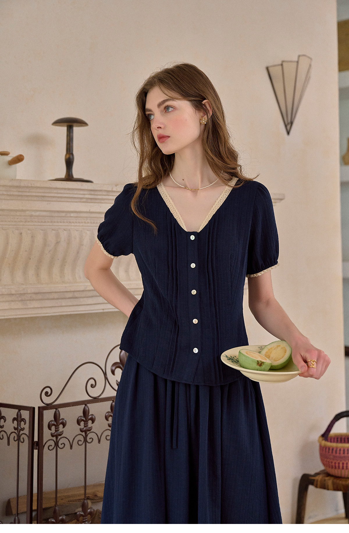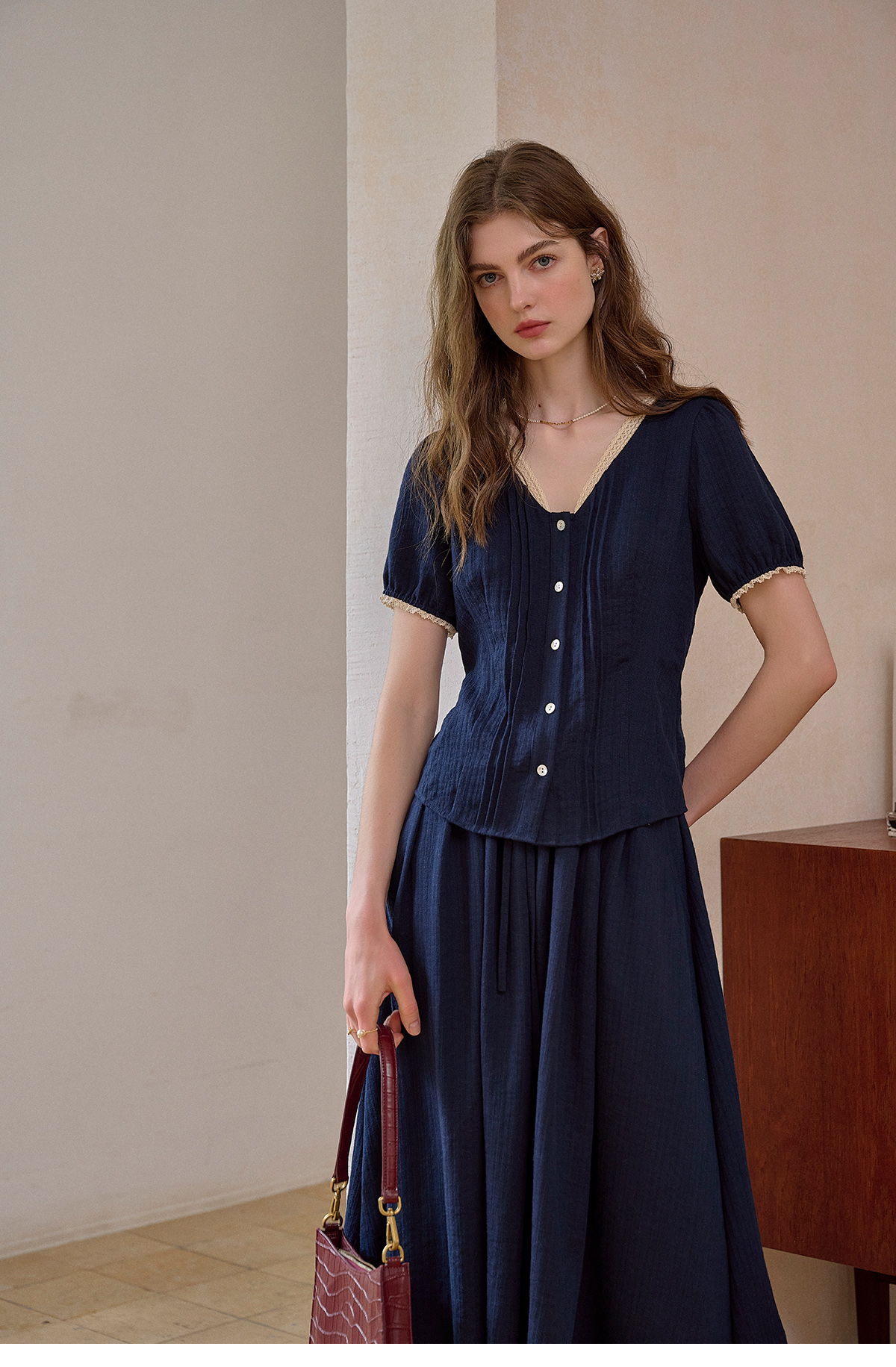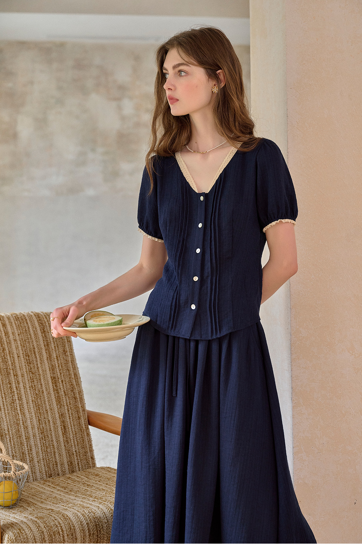 SimpleRetro亚麻混纺复古学院感文艺套装女