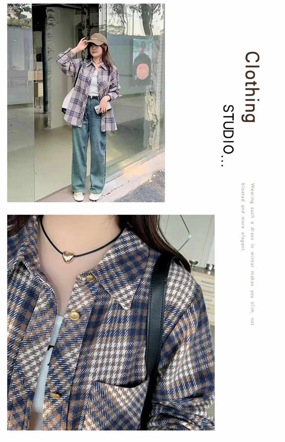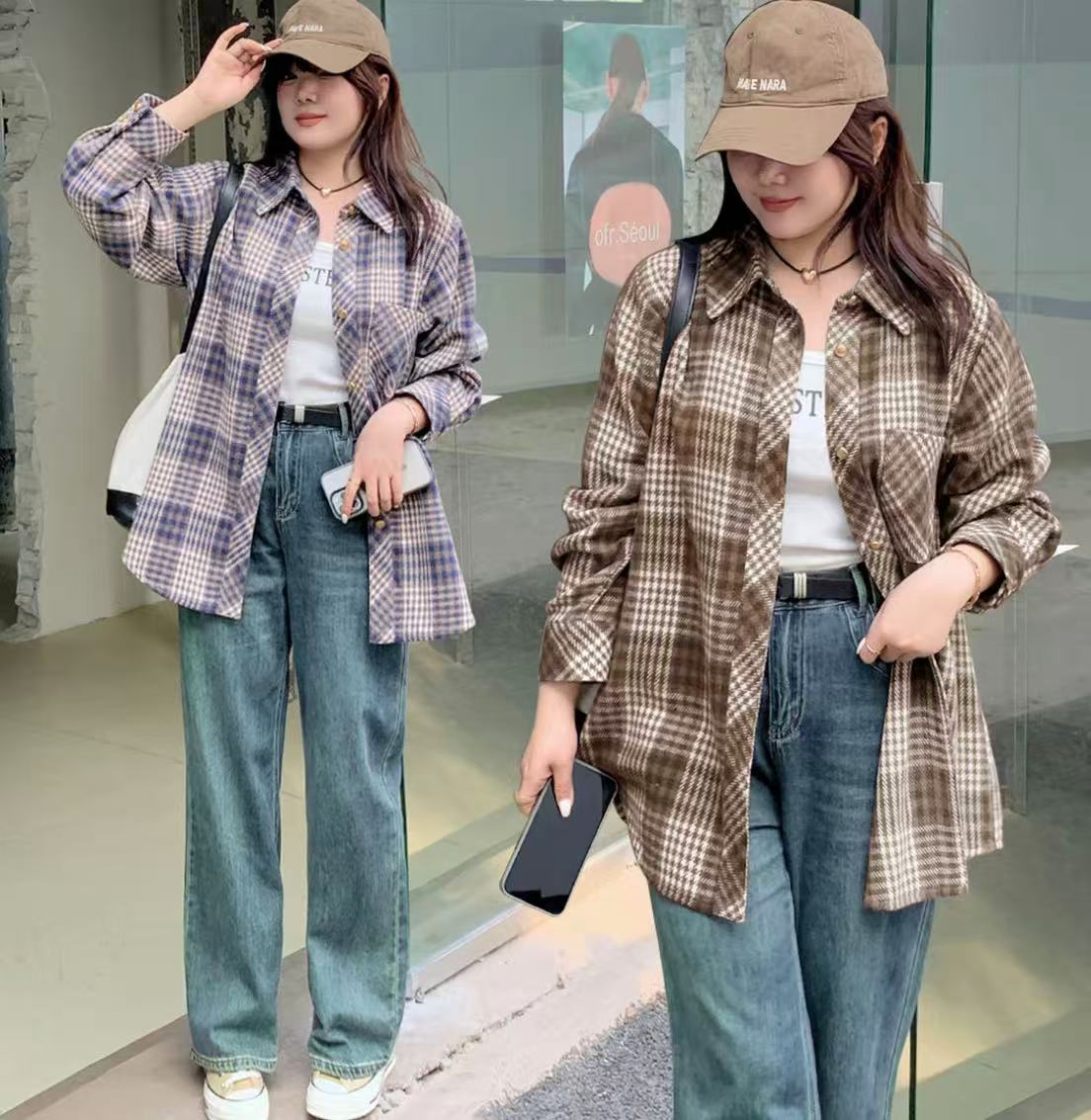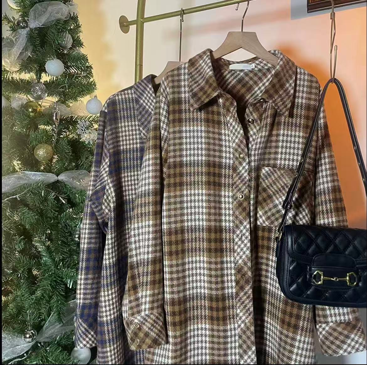 【诗铭洛可】W1118格子宽口袋衬衫显瘦色织格A6-2/A7-2/A8-2