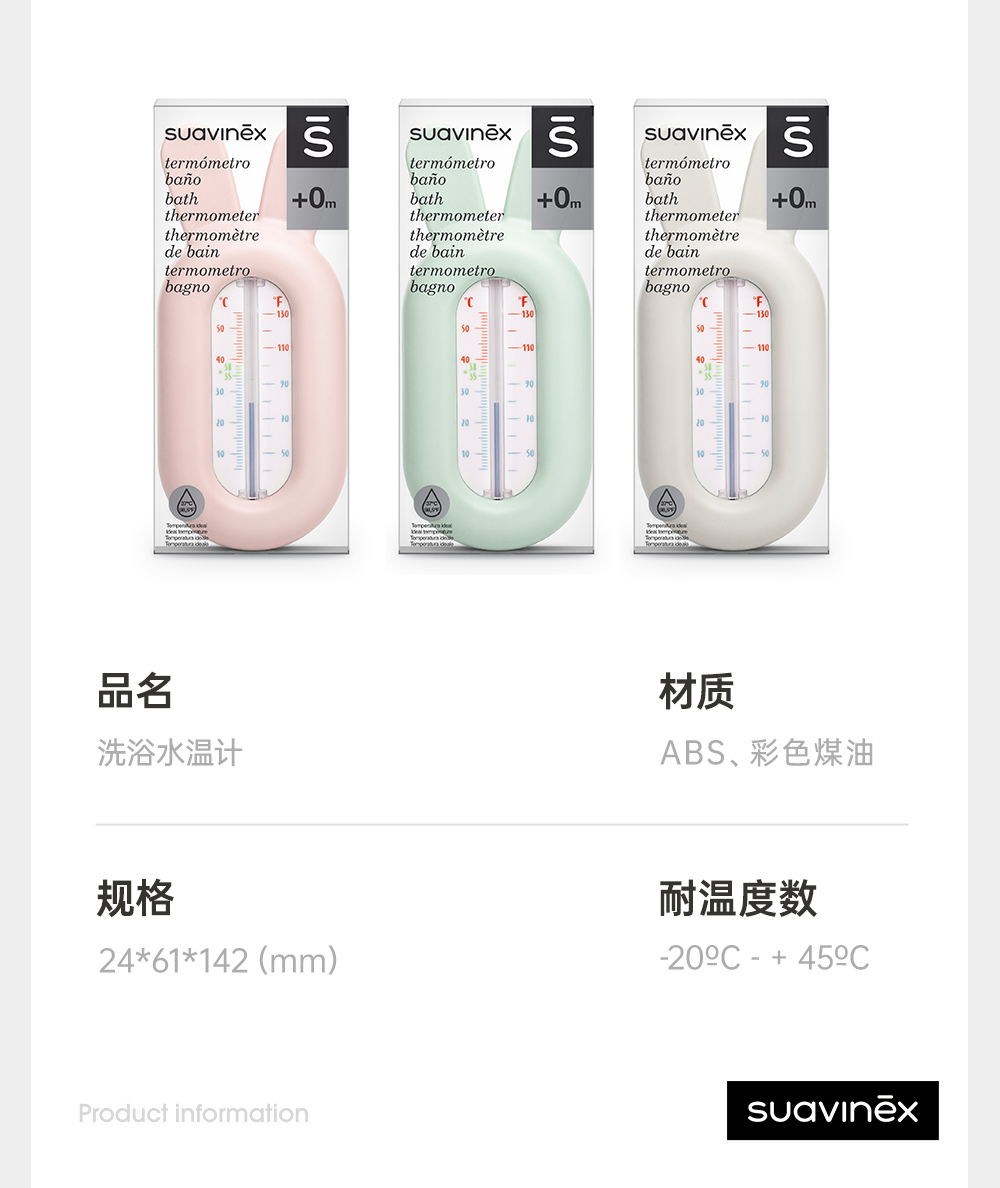 Suavinex苏维妮进口洗浴水温计新生婴儿宝宝沐浴洗澡测水温精准(颜色随机)