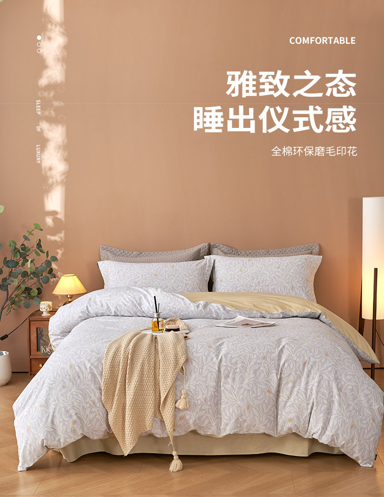 【维科家纺】轻奢全棉磨毛床上四件套高级感纯棉双层纱高档床品被套床单四件套