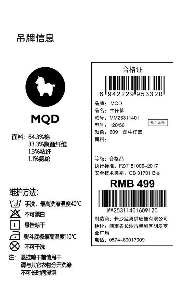 【MQD】【防褪色】童装男大童牛仔裤26春季弯刀裤儿童街潮时尚休闲裤