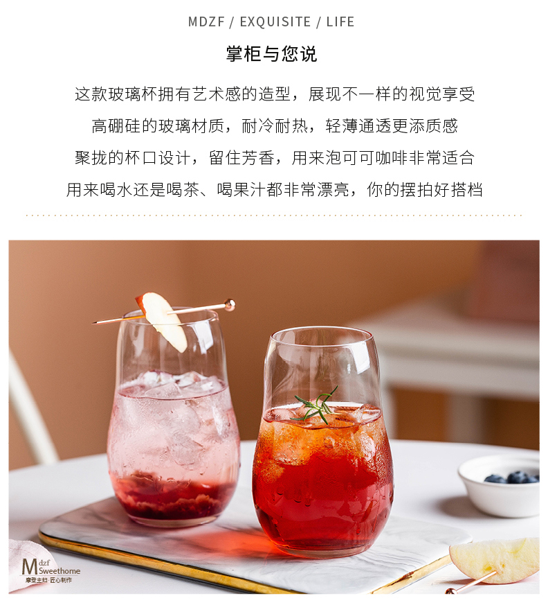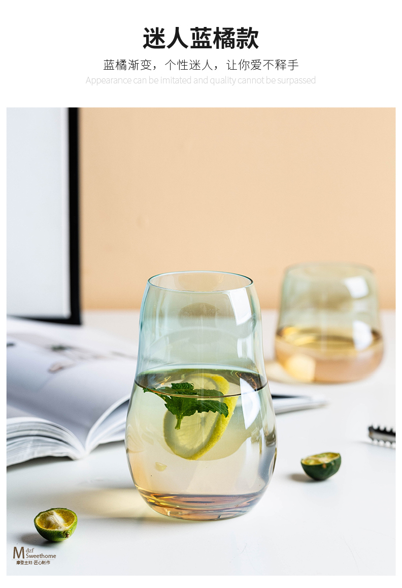 摩登主妇渐变玻璃杯耐高温可爱家用办公室透明花茶杯冷饮牛奶杯子