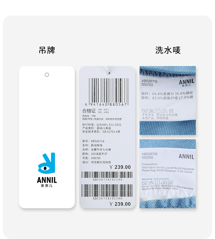 【实体店同款】男童全腰牛仔七分裤夏季新款安奈儿童装XB526718