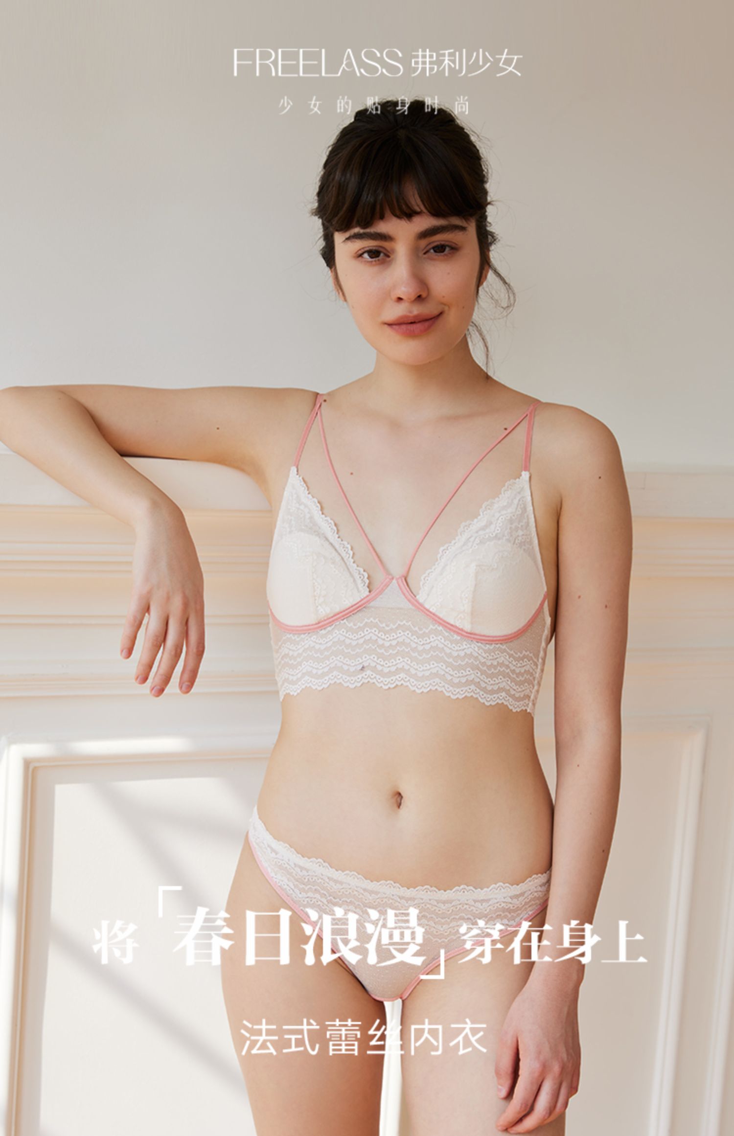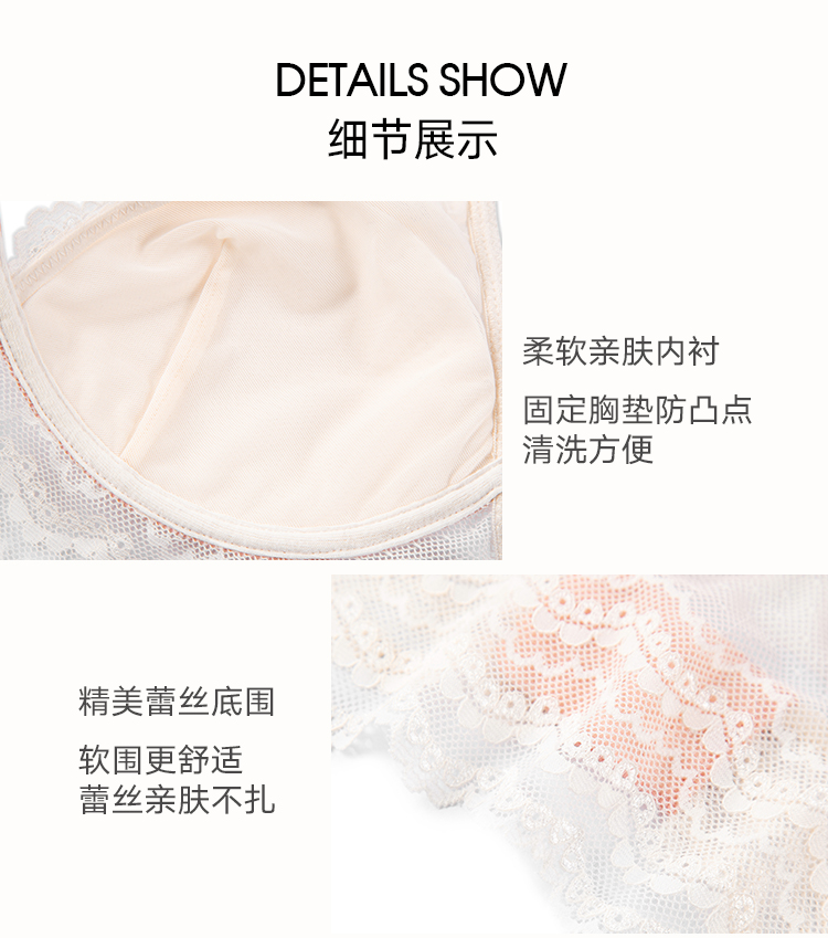 弗利少女法式蕾丝内衣宽底围小胸超薄款文胸无钢圈性感三角杯套装