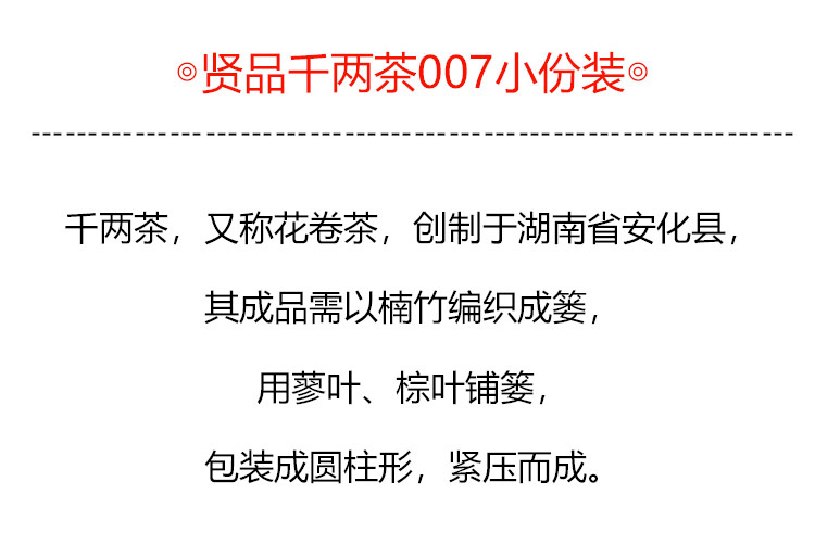 茶香记 贤品千两茶007小份装 湖南安化 核心产区 传统工艺 甜醇绵柔 仓储干净