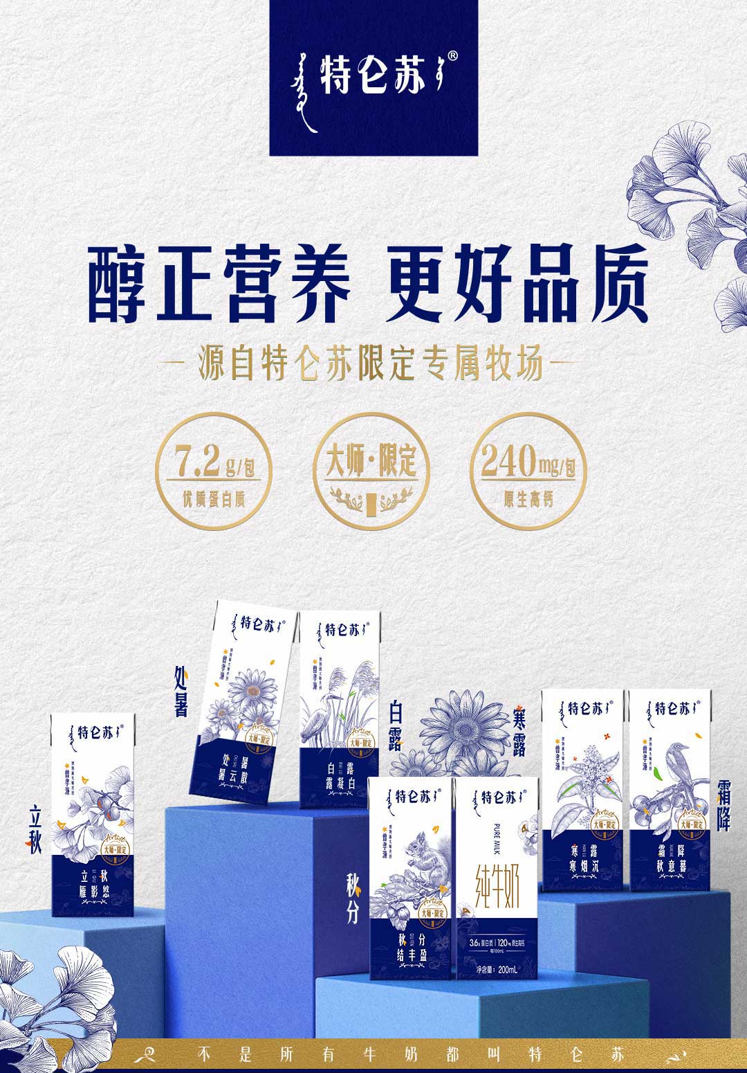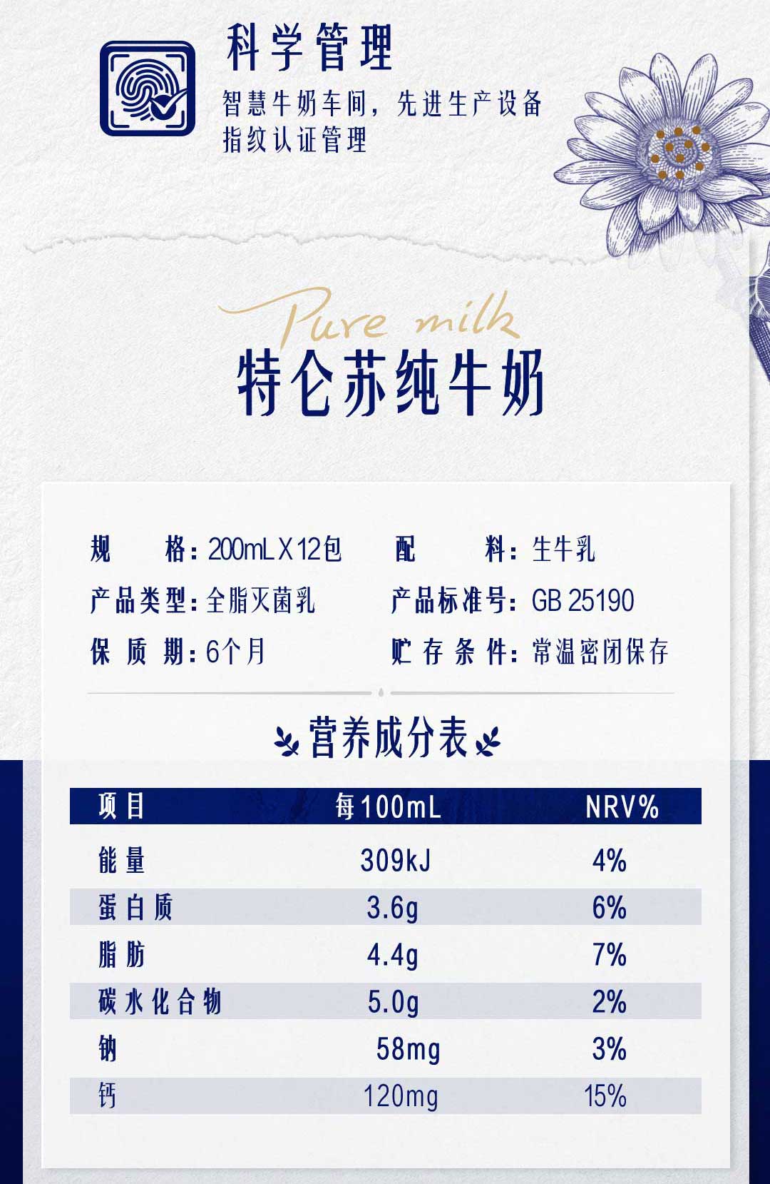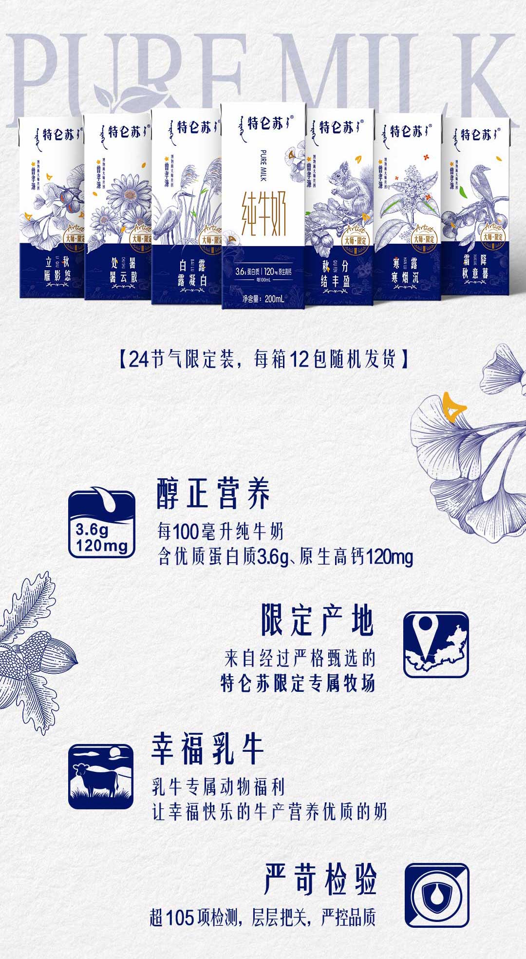 特仑苏纯牛奶全脂灭菌乳利乐苗条装200ml×12包(大师限定)