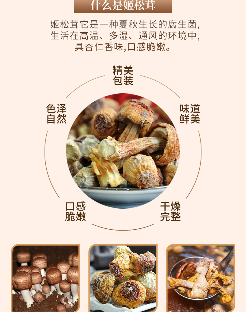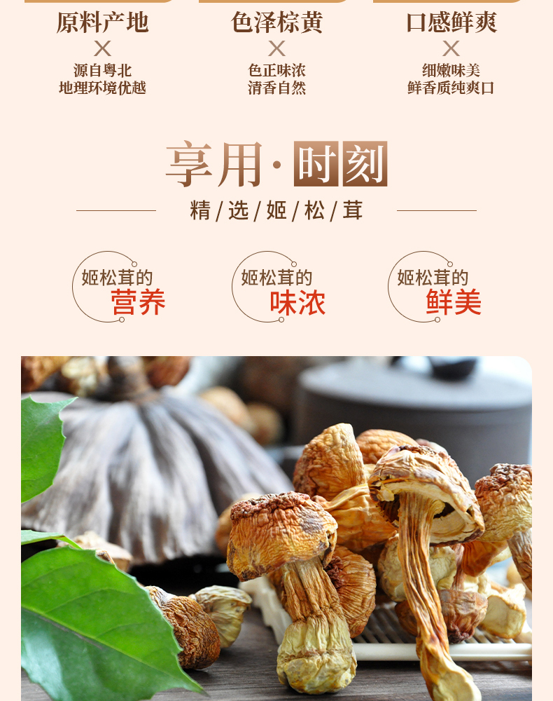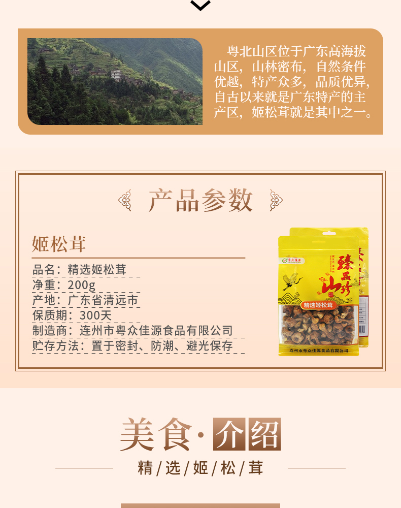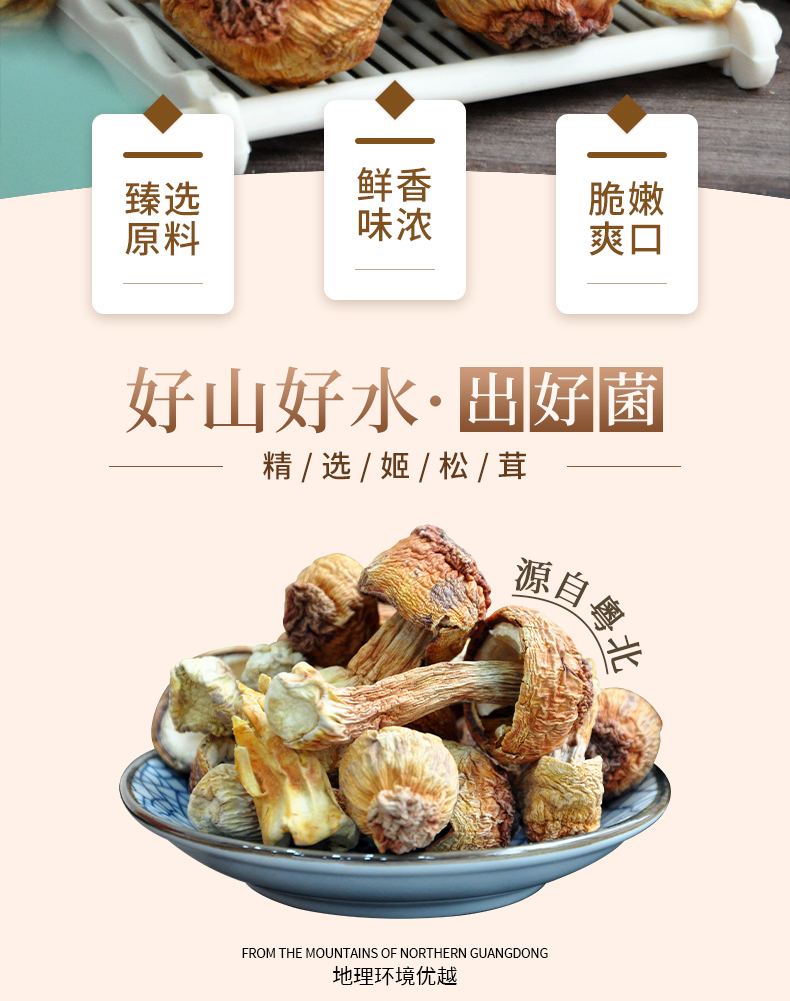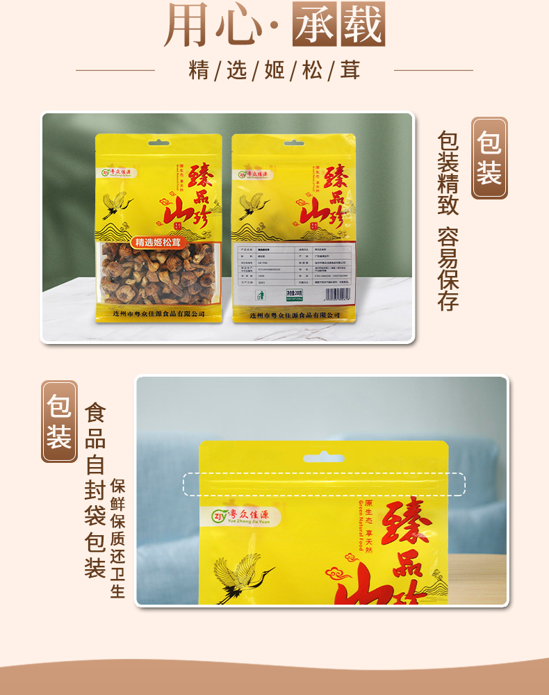连州粤众佳源精选姬松茸八边封自立袋200克食用菌干制品