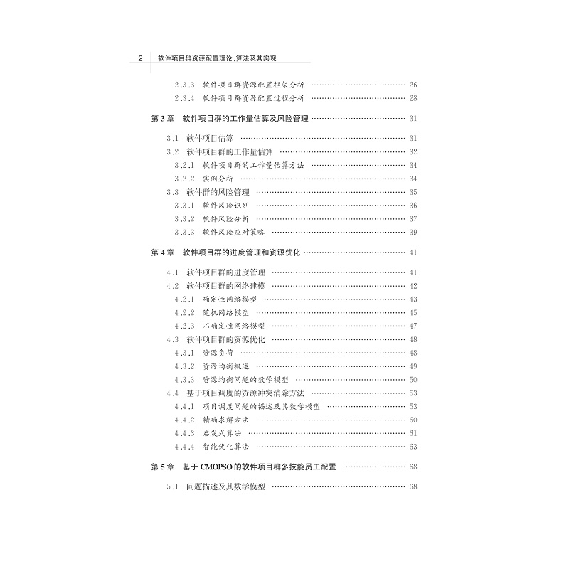 本书围绕着软件项目群管理中的多技能员工配置问题、多模式多资源均衡问题和基于模糊关键链项目群调度问题展开研究,主要内容有: