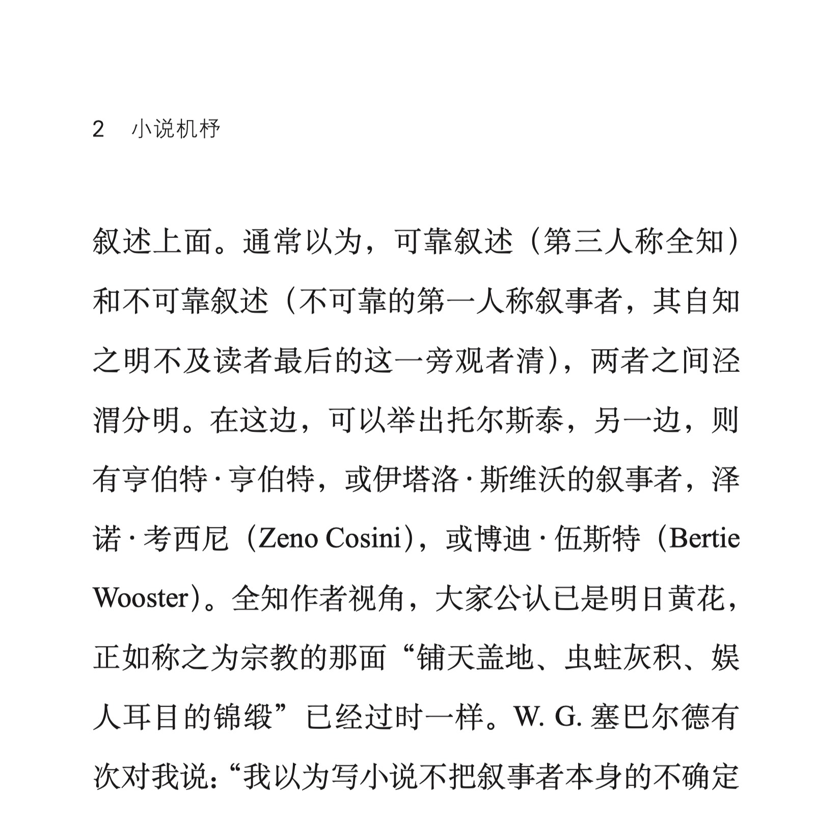 本书凭借生动的例子和精妙的分析,具体深入地剖析了小说运作的奥秘,既能让一般文学读者接受,也能让专业读者有所收获。