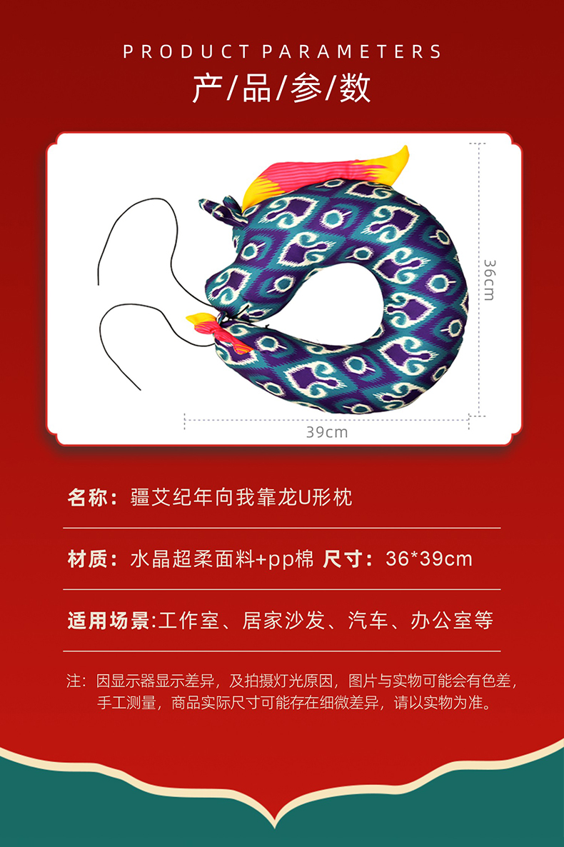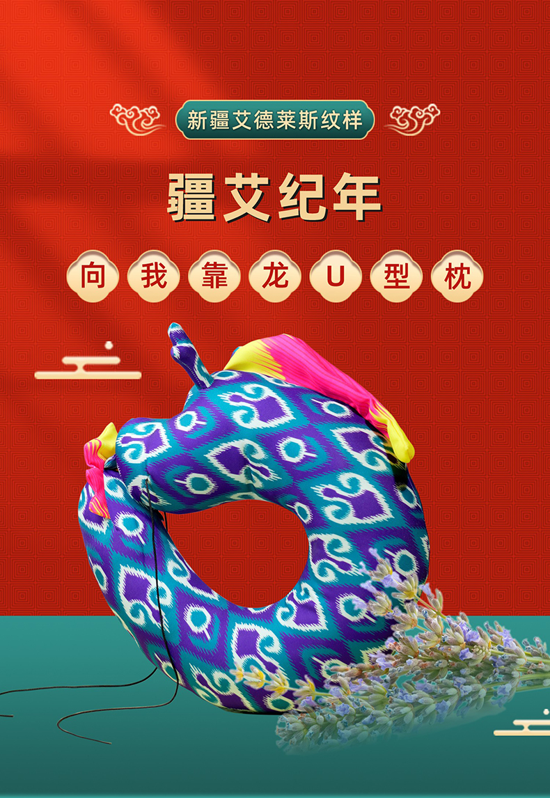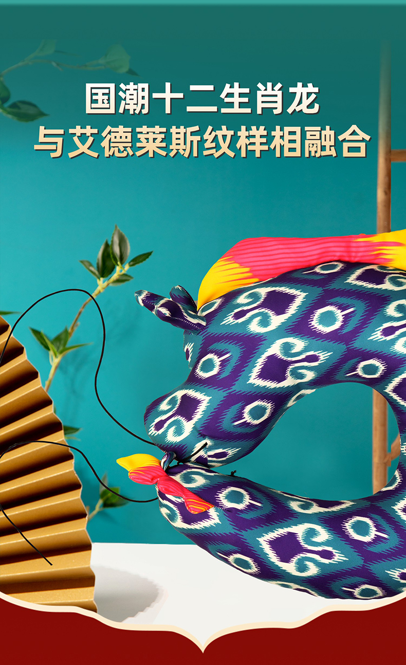 至爱疆物·十二生肖辰龙U型枕 国潮十二生肖龙与艾德莱斯纹样相融合