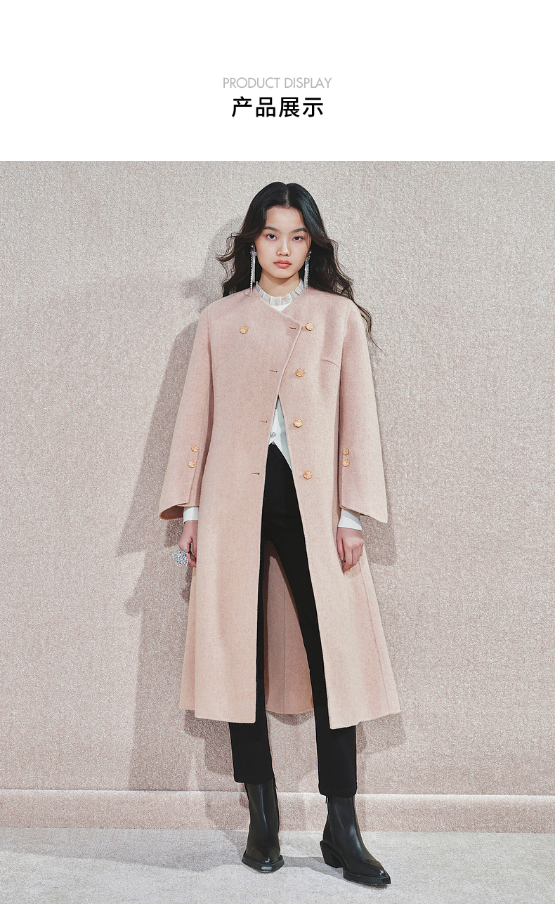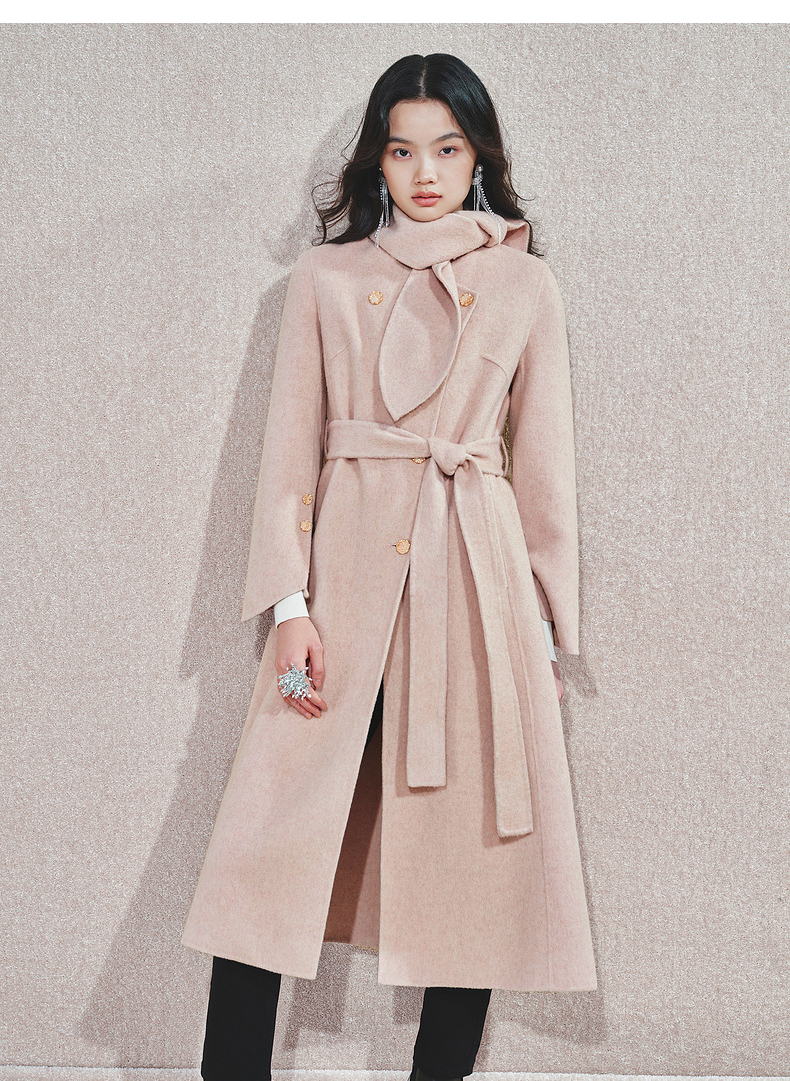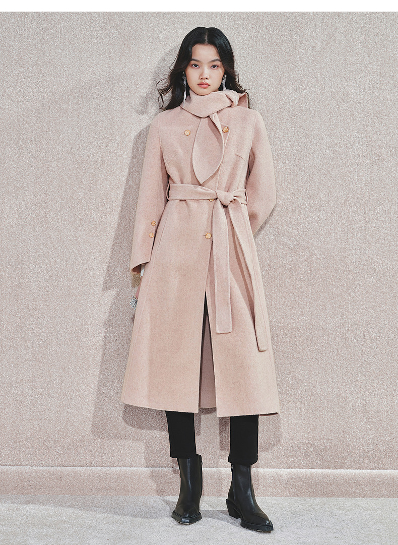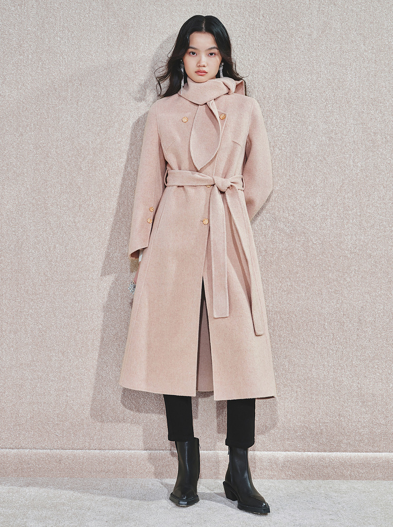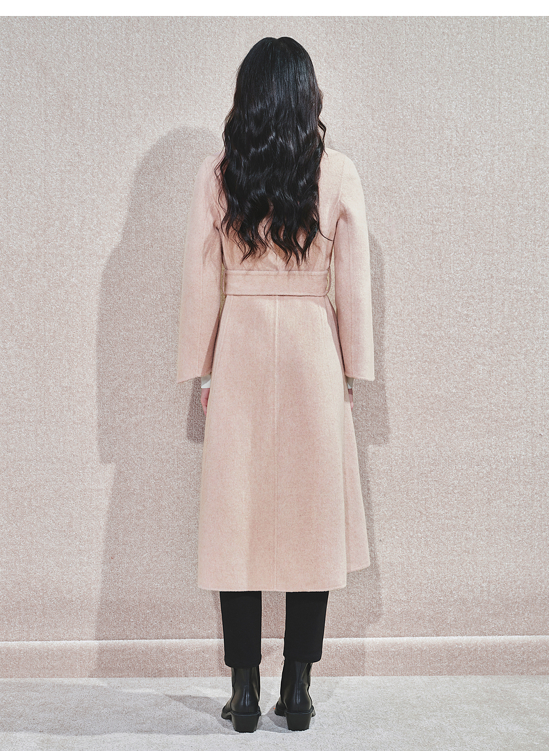 MAXRIENY精致肌理感绵羊毛大衣24冬新款收腰显瘦系带外套中长款(货号:MS85CT768)