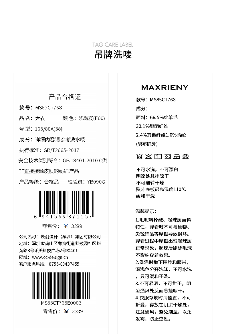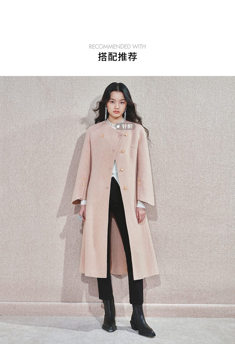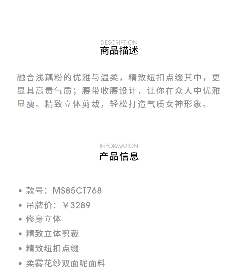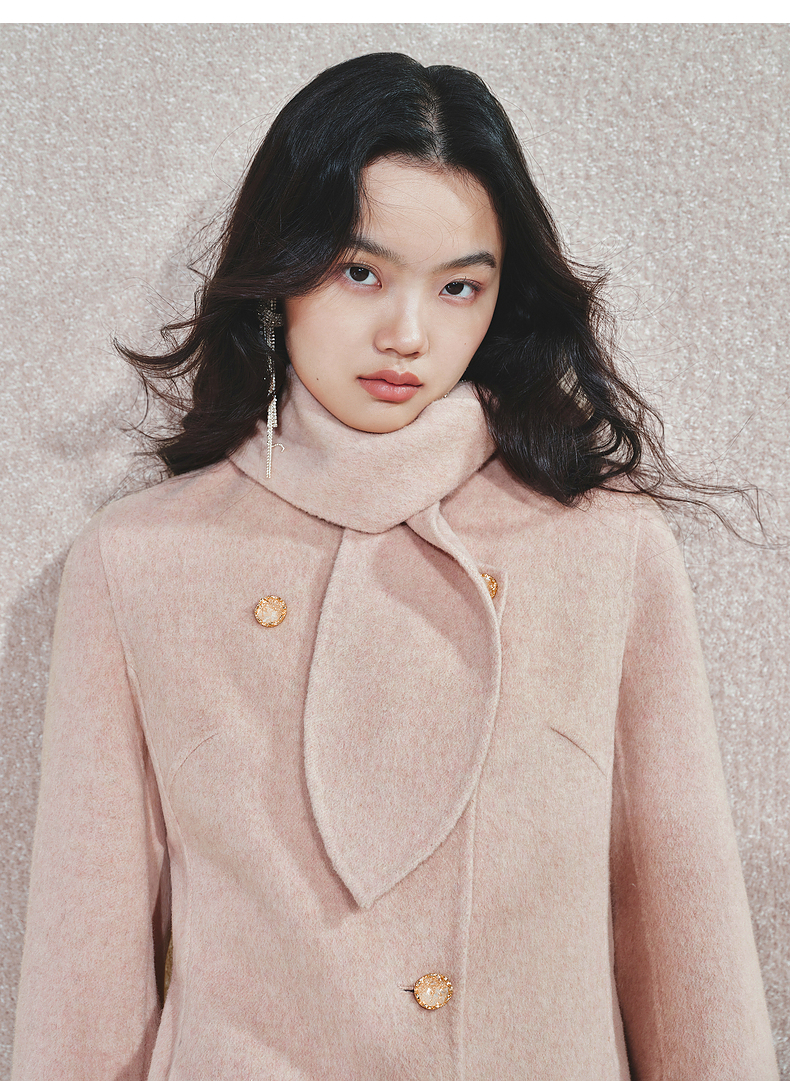 MAXRIENY精致肌理感绵羊毛大衣24冬新款收腰显瘦系带外套中长款(货号:MS85CT768)