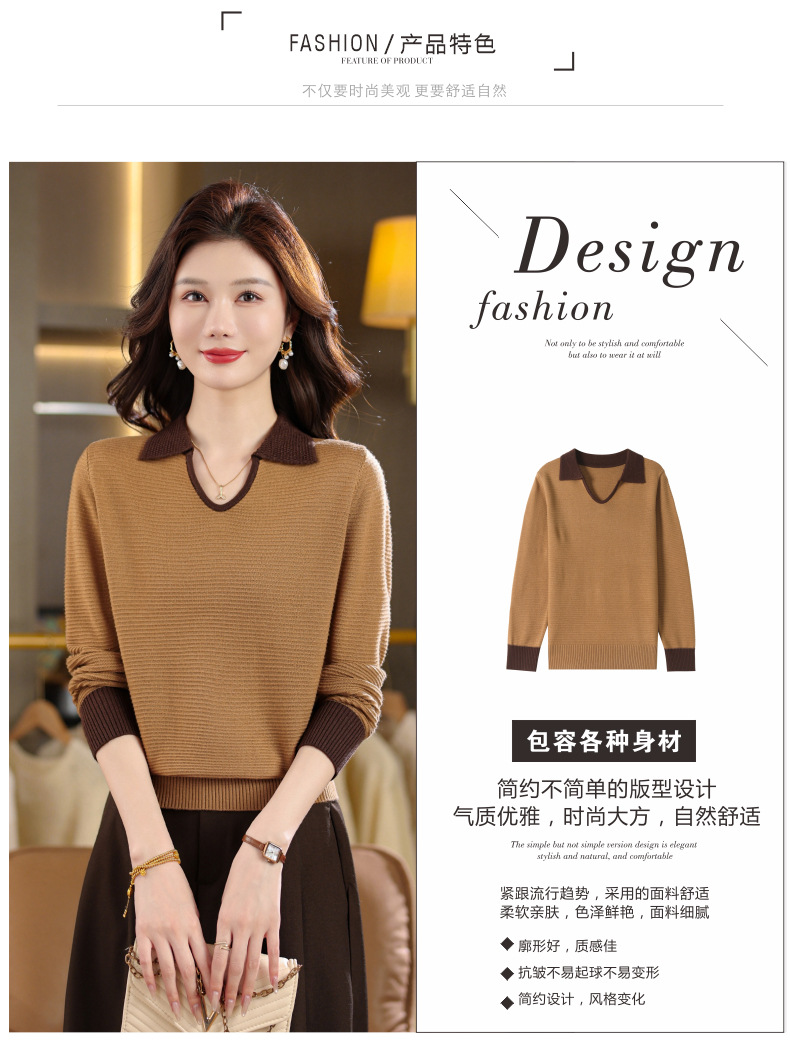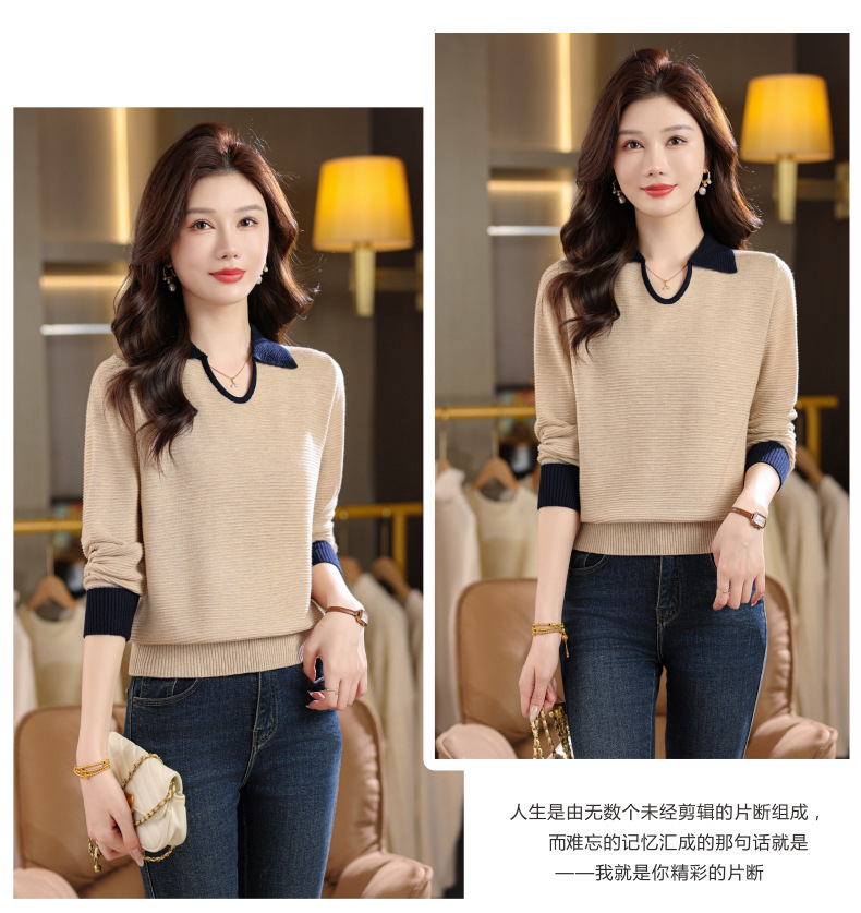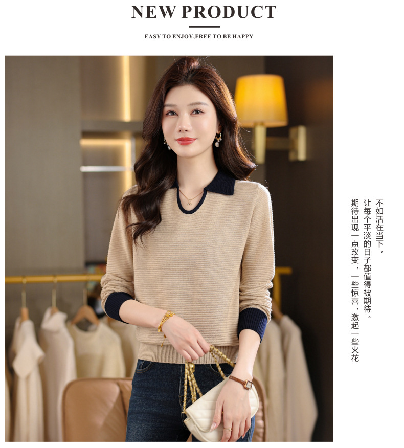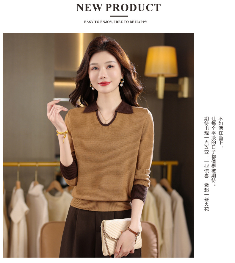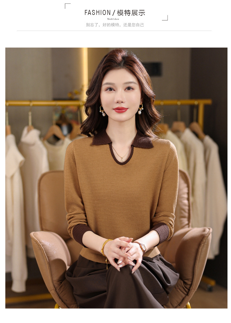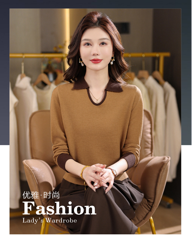 CC翻领长袖上衣针织衫女2025新款秋装洋气polo宽松毛衣打底小衫
