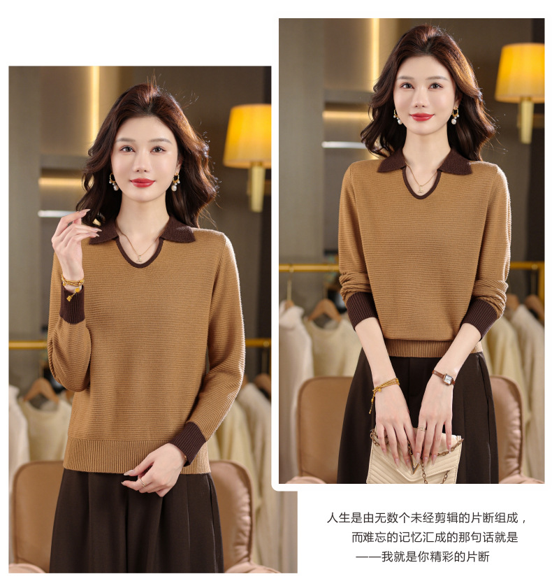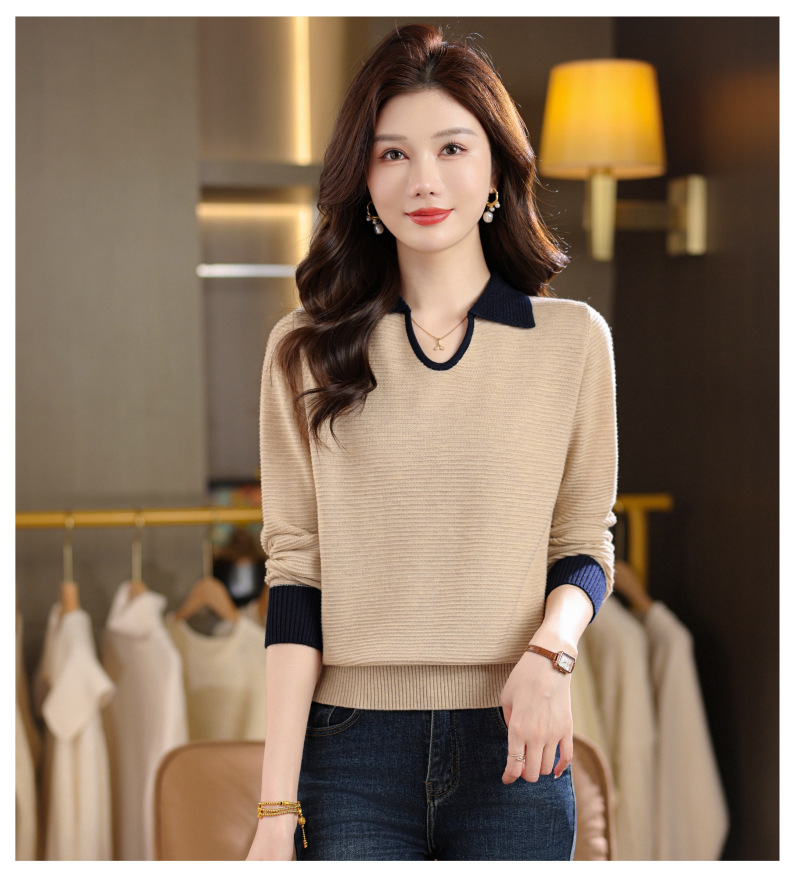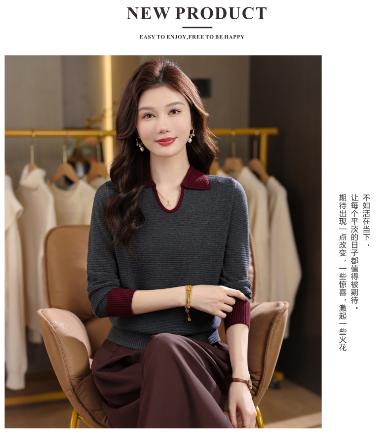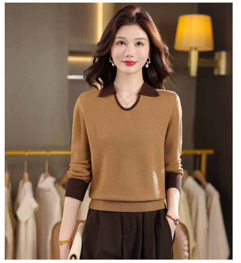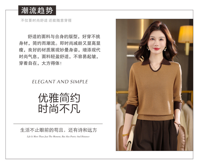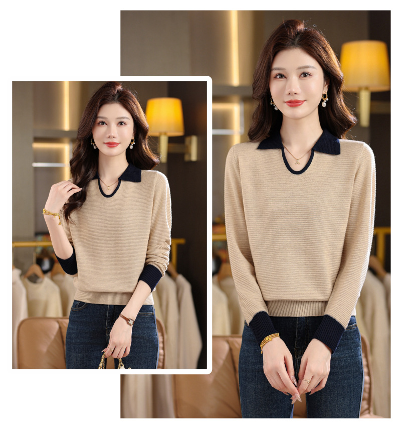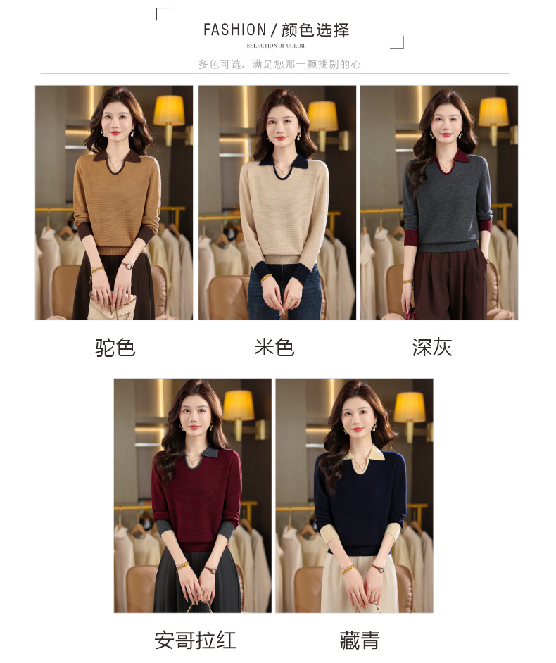 CC翻领长袖上衣针织衫女2025新款秋装洋气polo宽松毛衣打底小衫