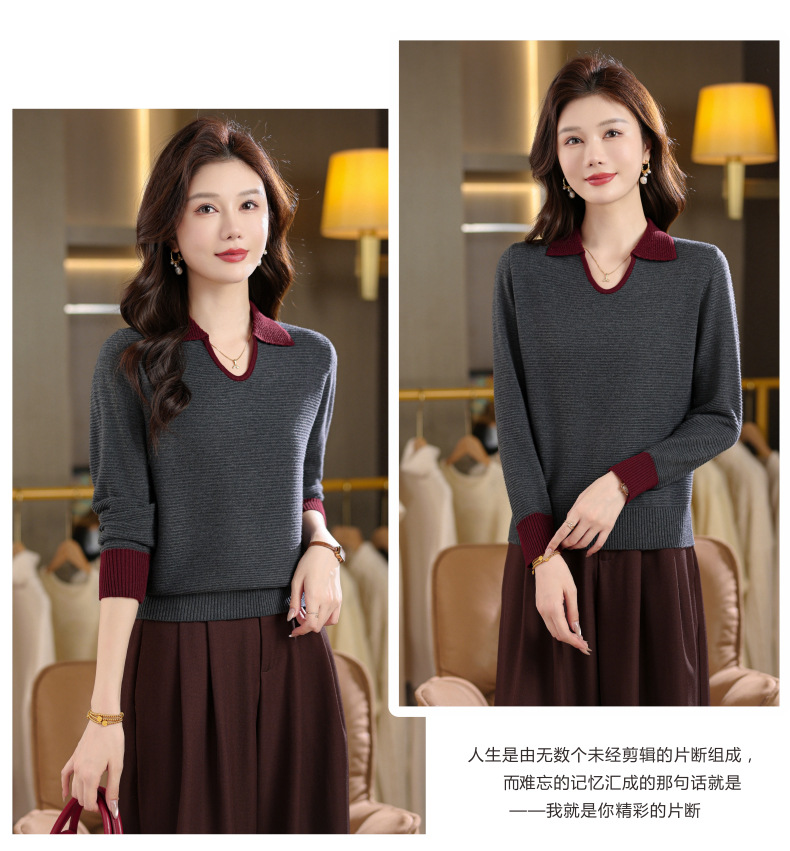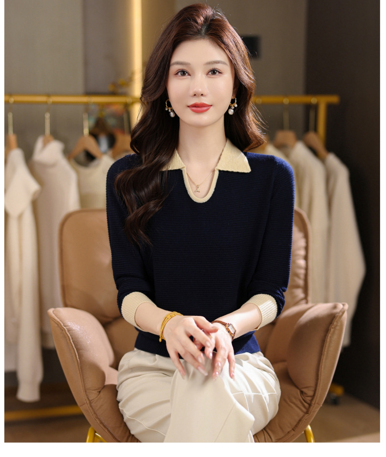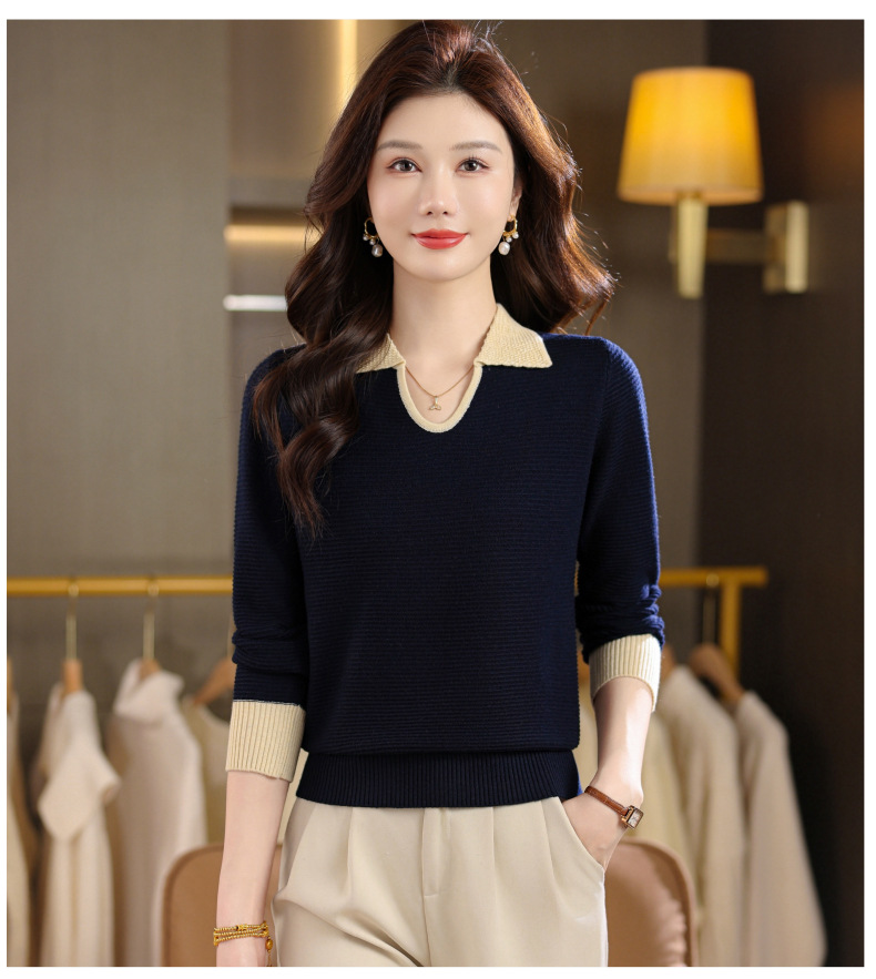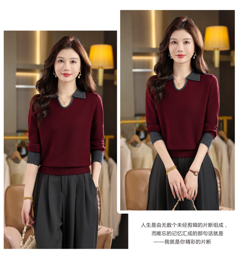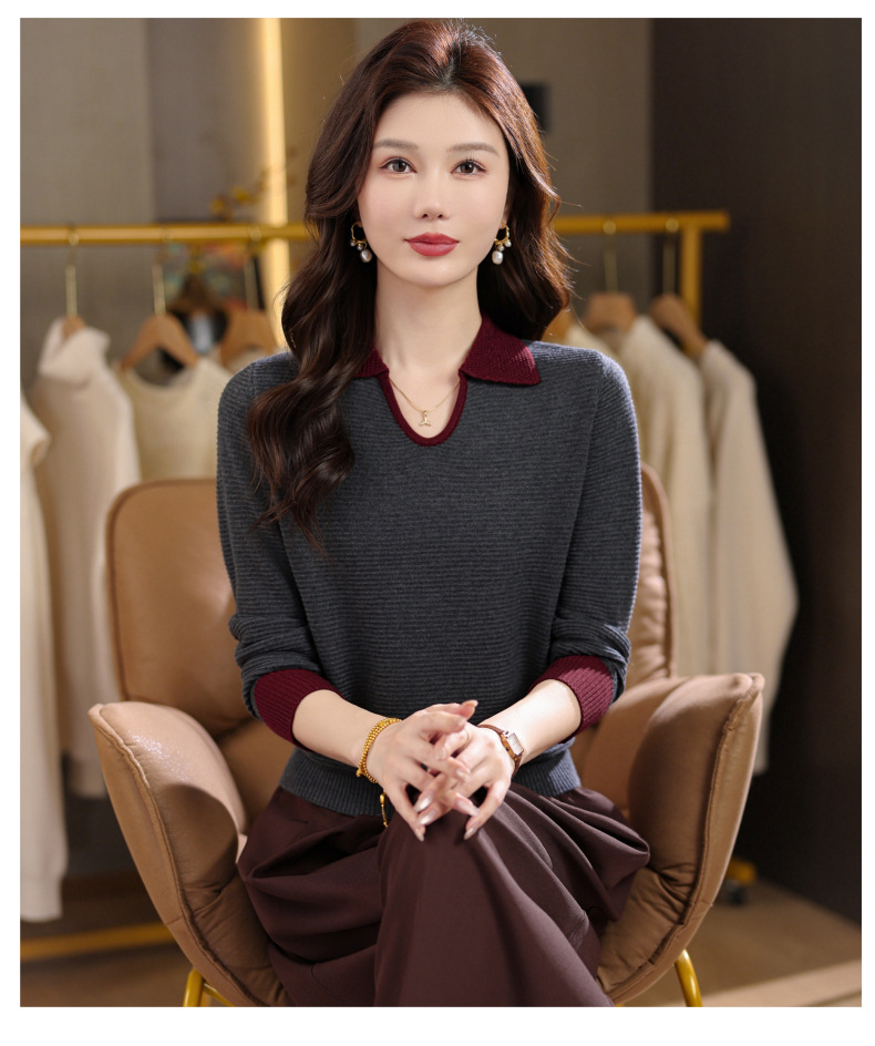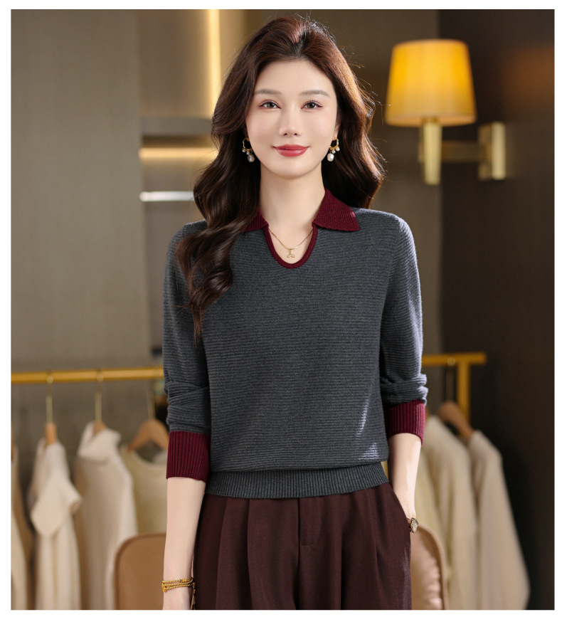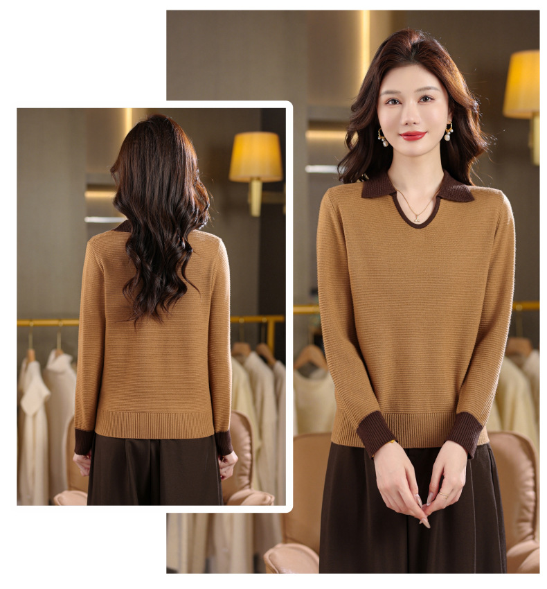 CC翻领长袖上衣针织衫女2025新款秋装洋气polo宽松毛衣打底小衫