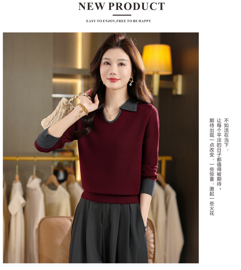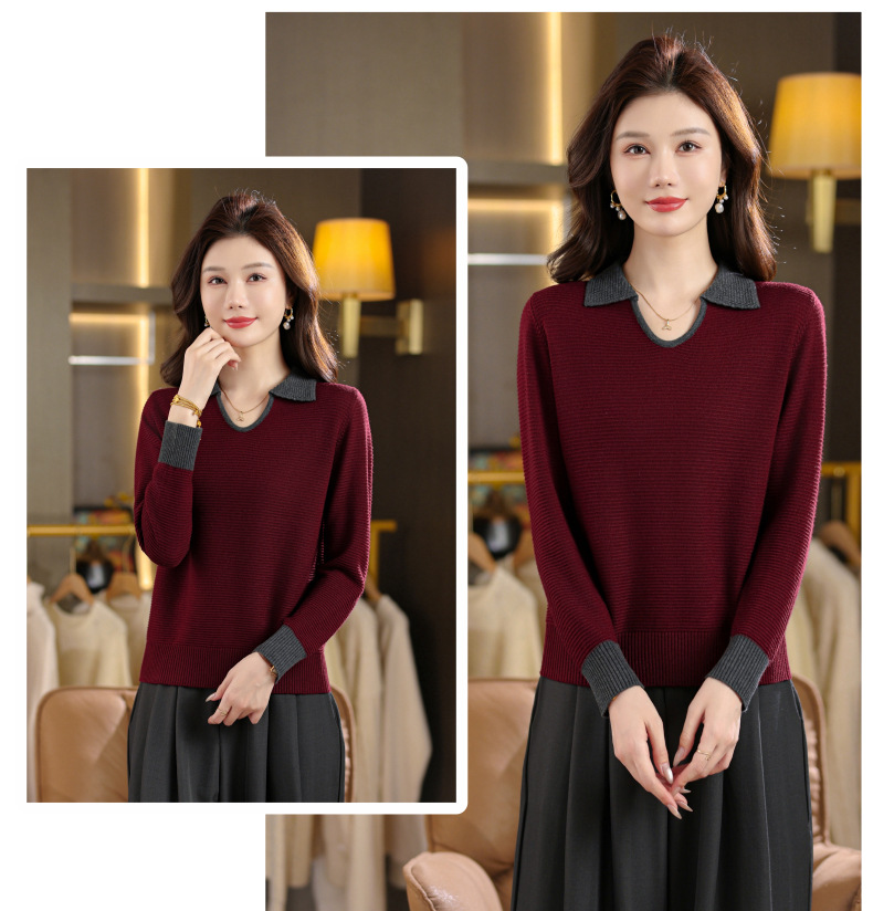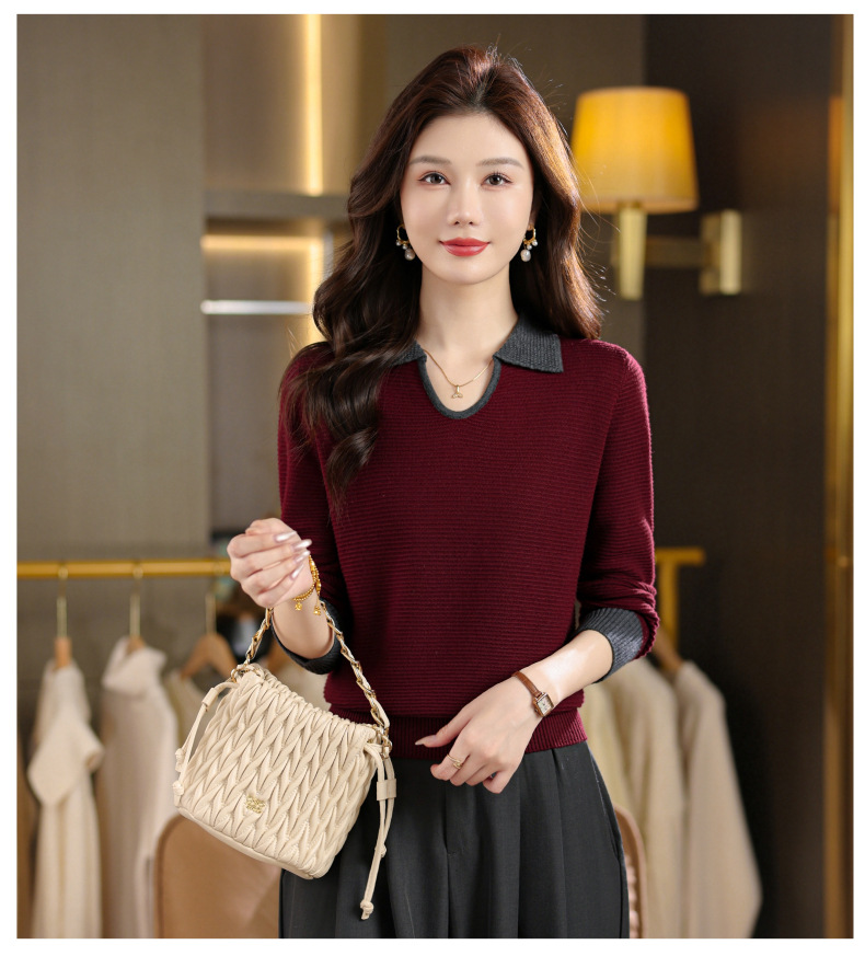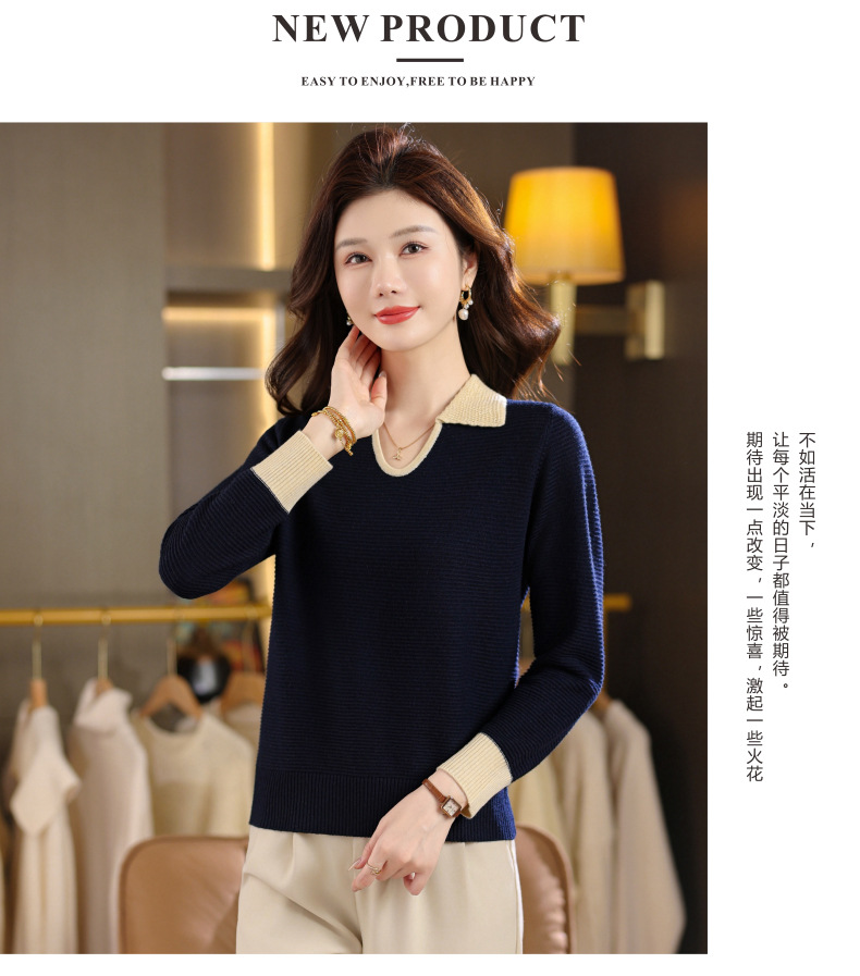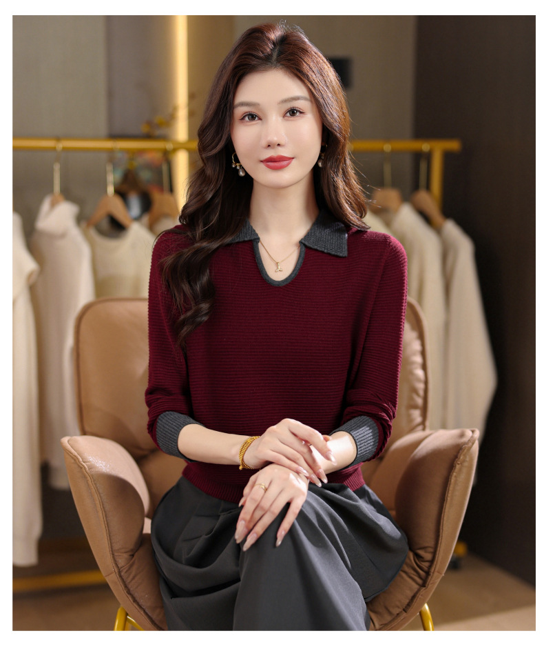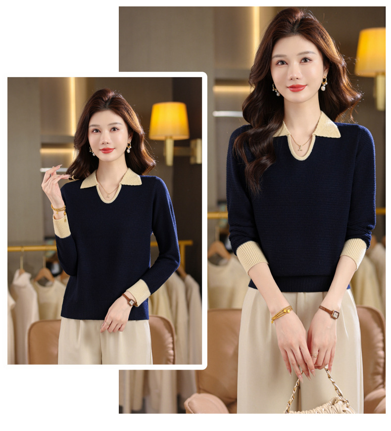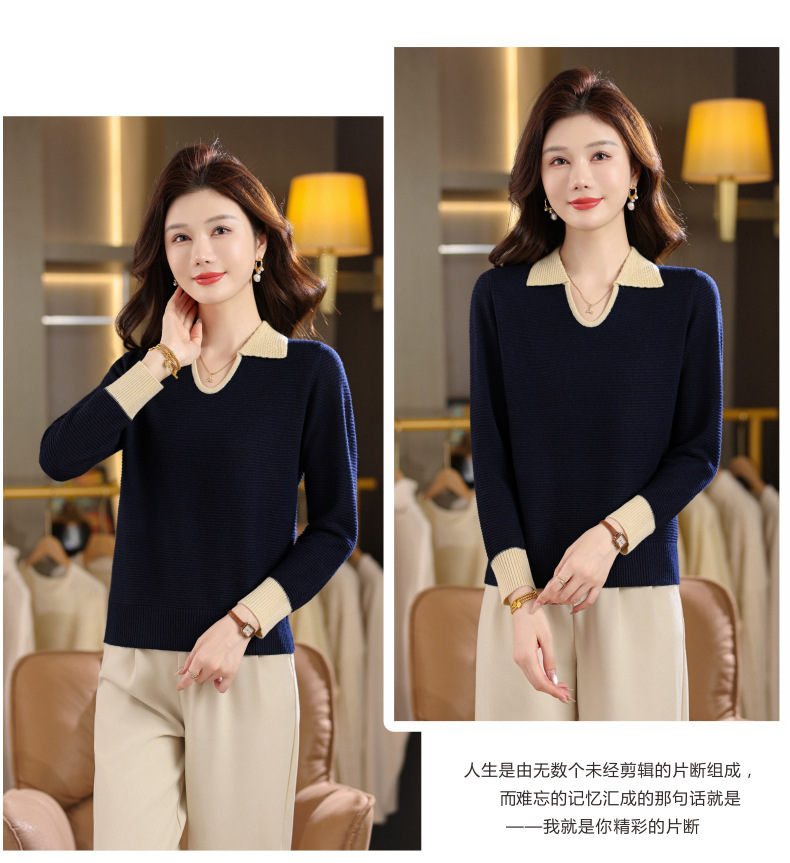 CC翻领长袖上衣针织衫女2025新款秋装洋气polo宽松毛衣打底小衫
