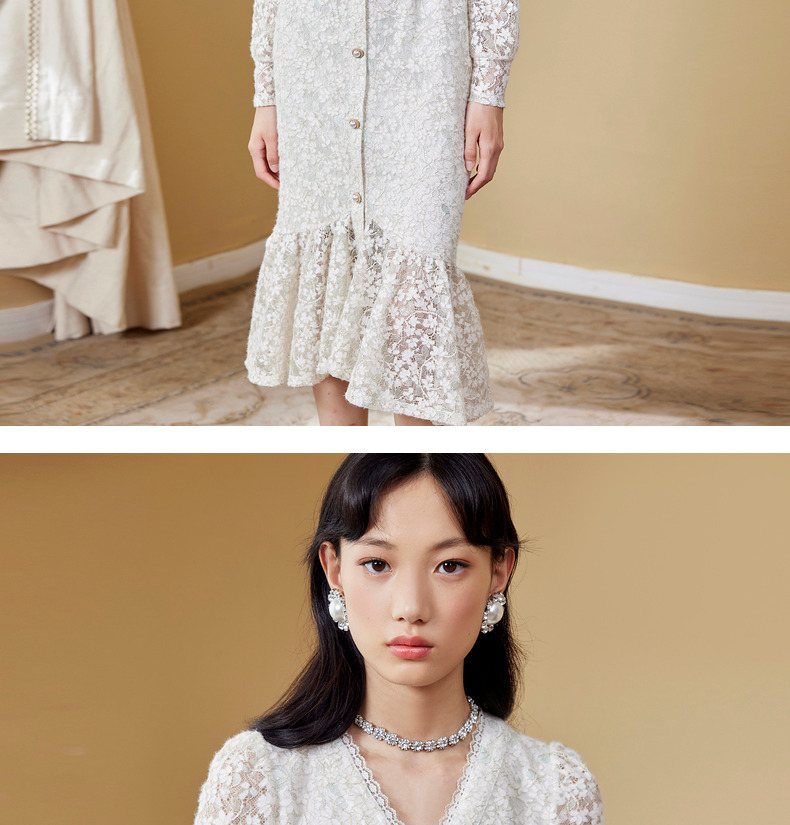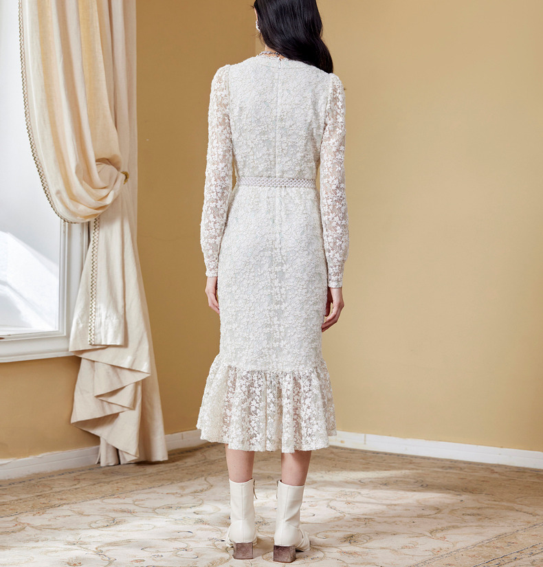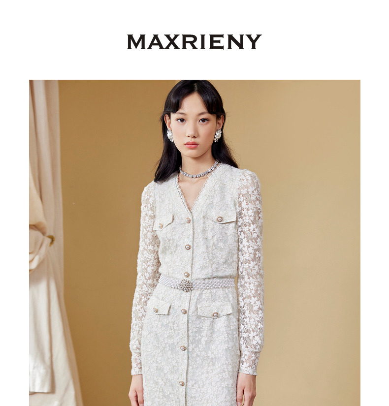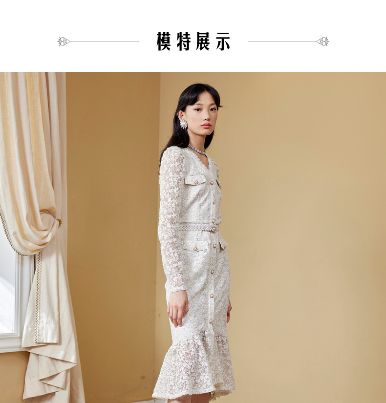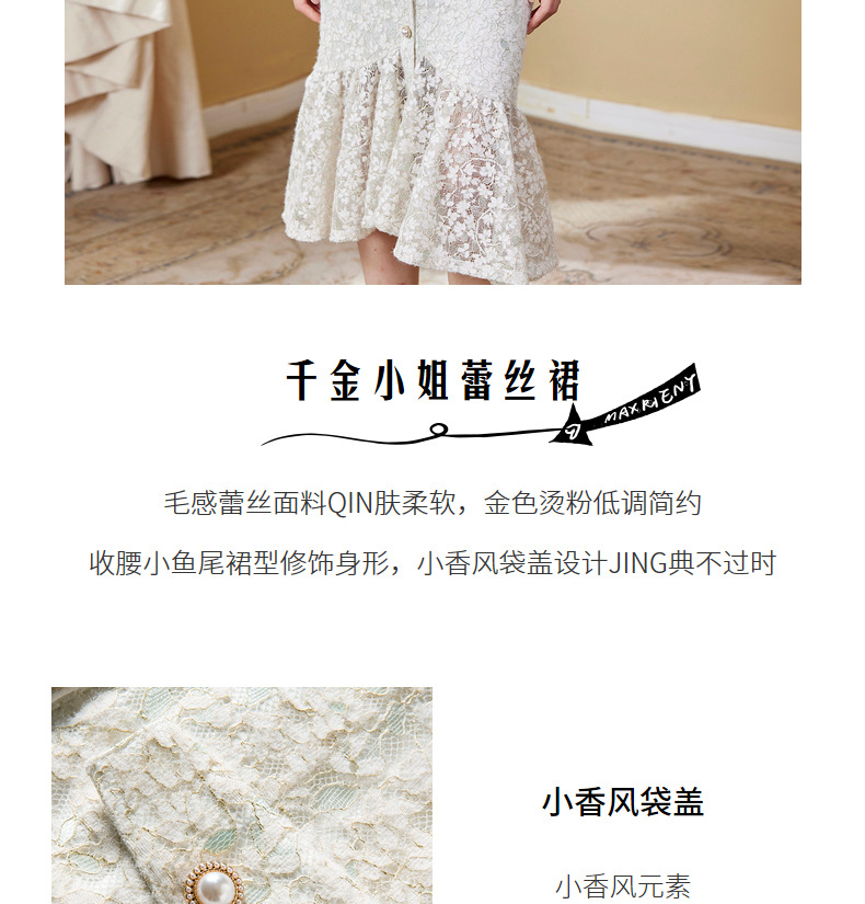 MAXRIENY千金小姐蕾丝裙秋季连衣裙气质鱼尾长裙(货号:MC87DR589)