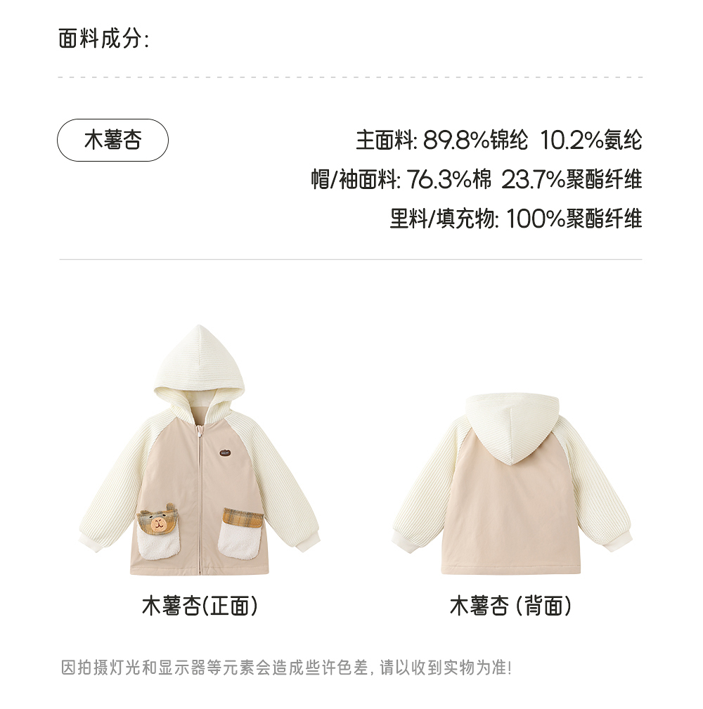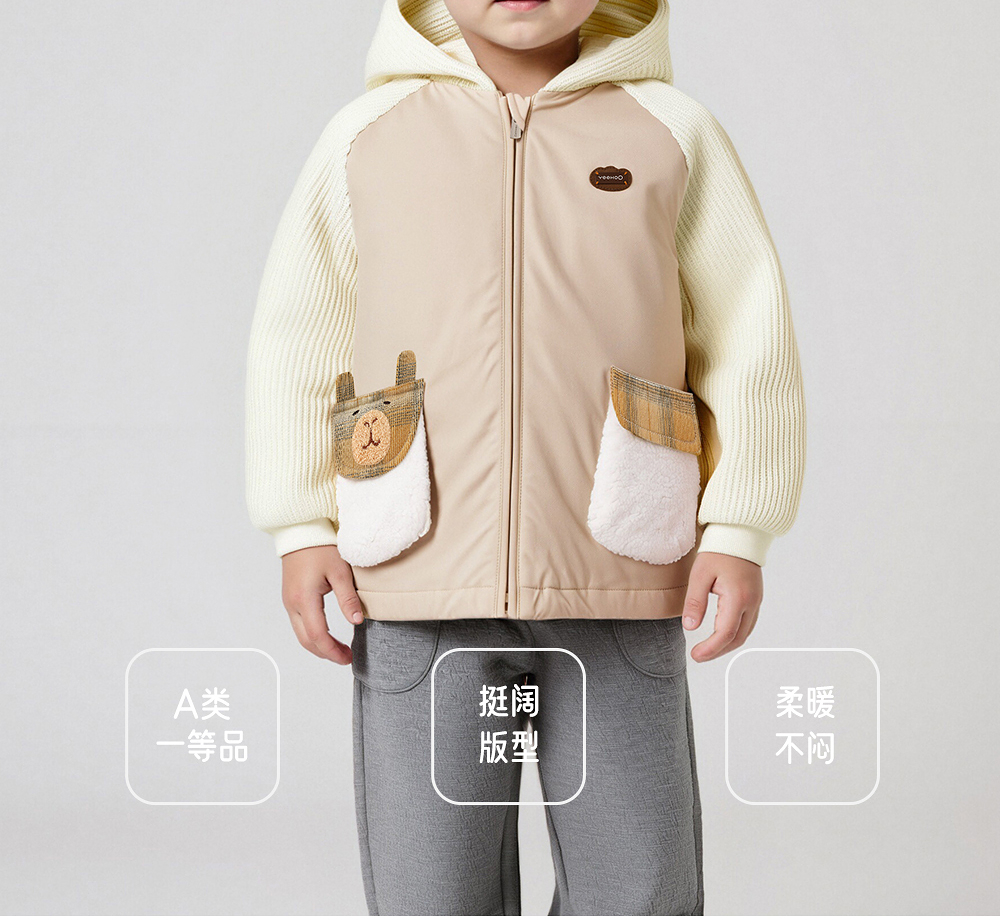 【商场同款】英氏儿童宝宝连帽开衫上衣秋冬新款男童保暖外套